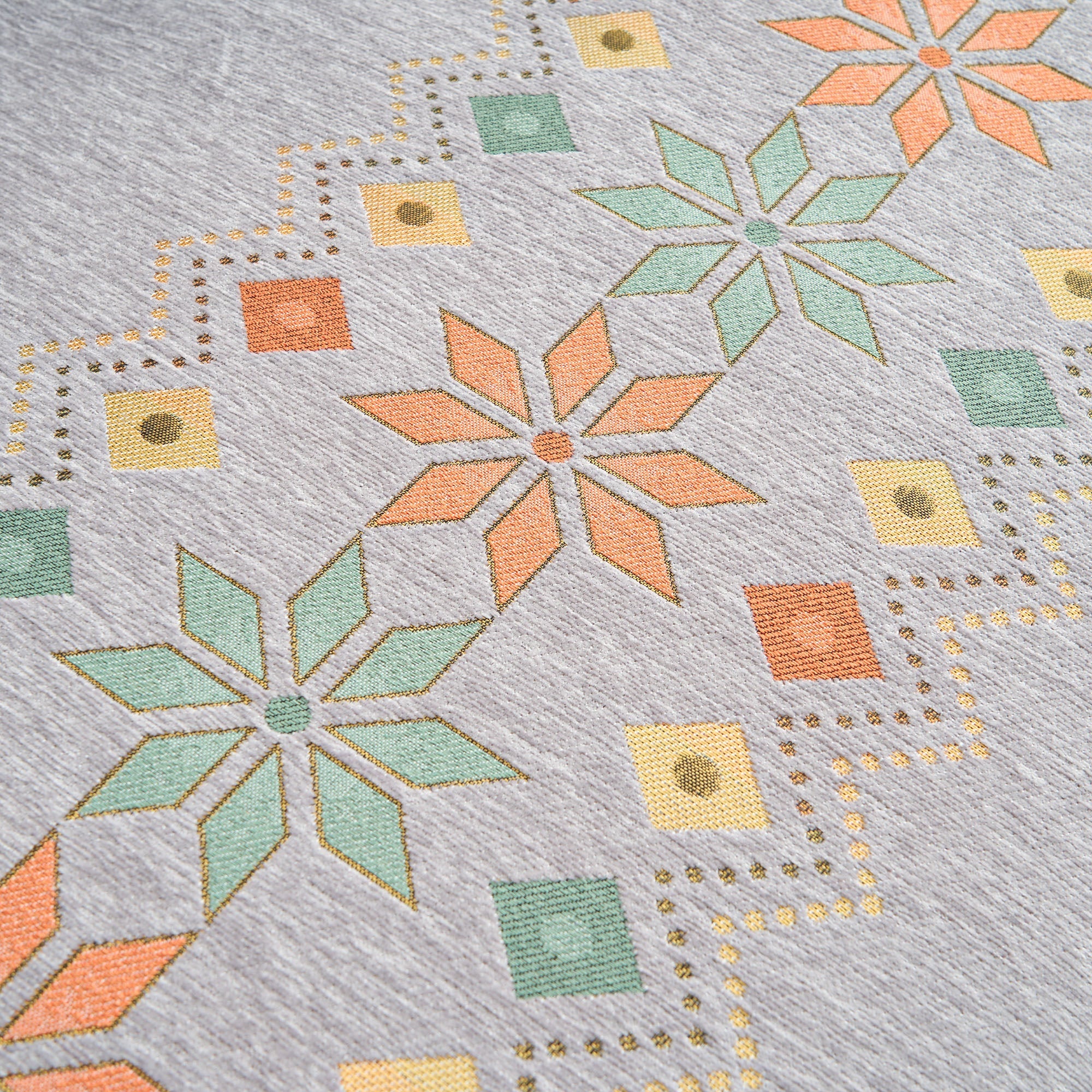 •Jaskrawy geometryczny wzór: Kolorowy, geometryczny wzór inspirowany stylem nordyckim, który doda Twojemu wystrojowi wnętrza modnego, artystycznego akcentu.
