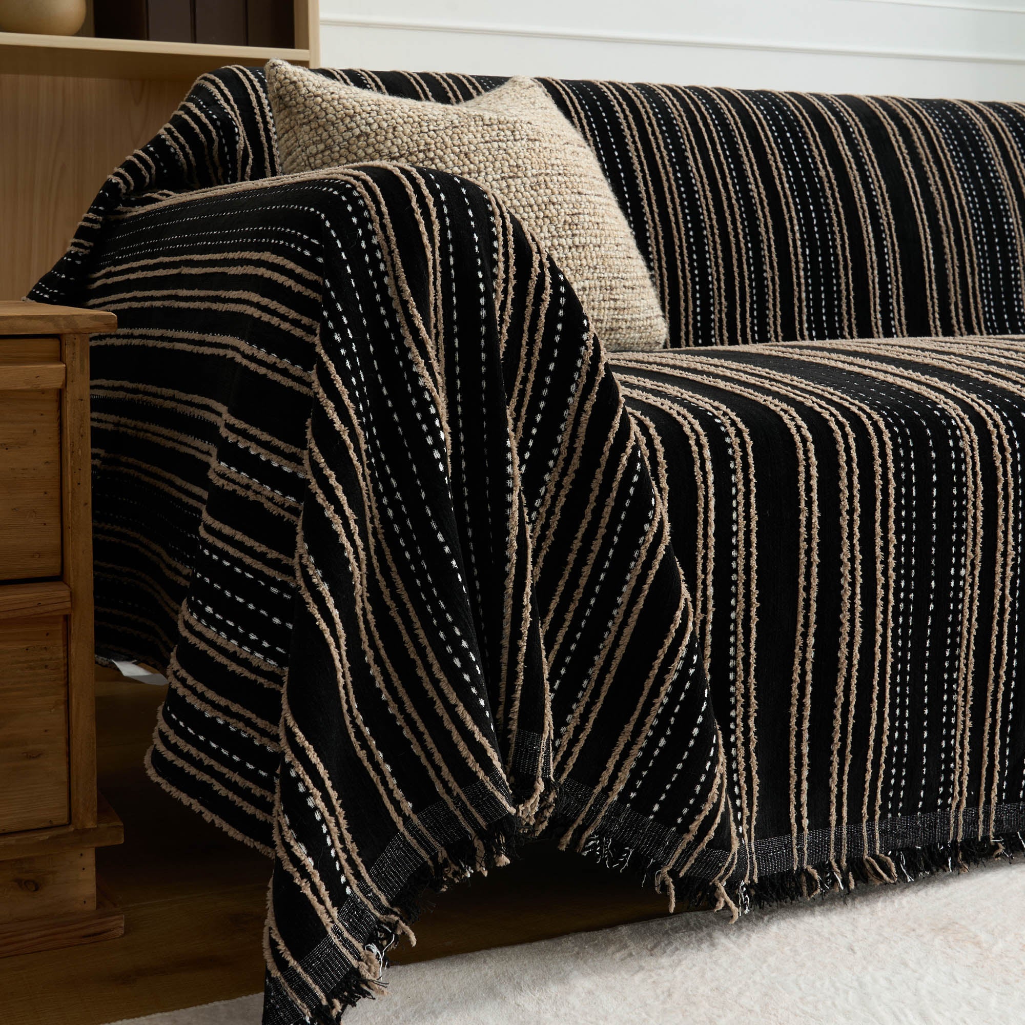 Pokrowiec na sofę w paski teksturowane