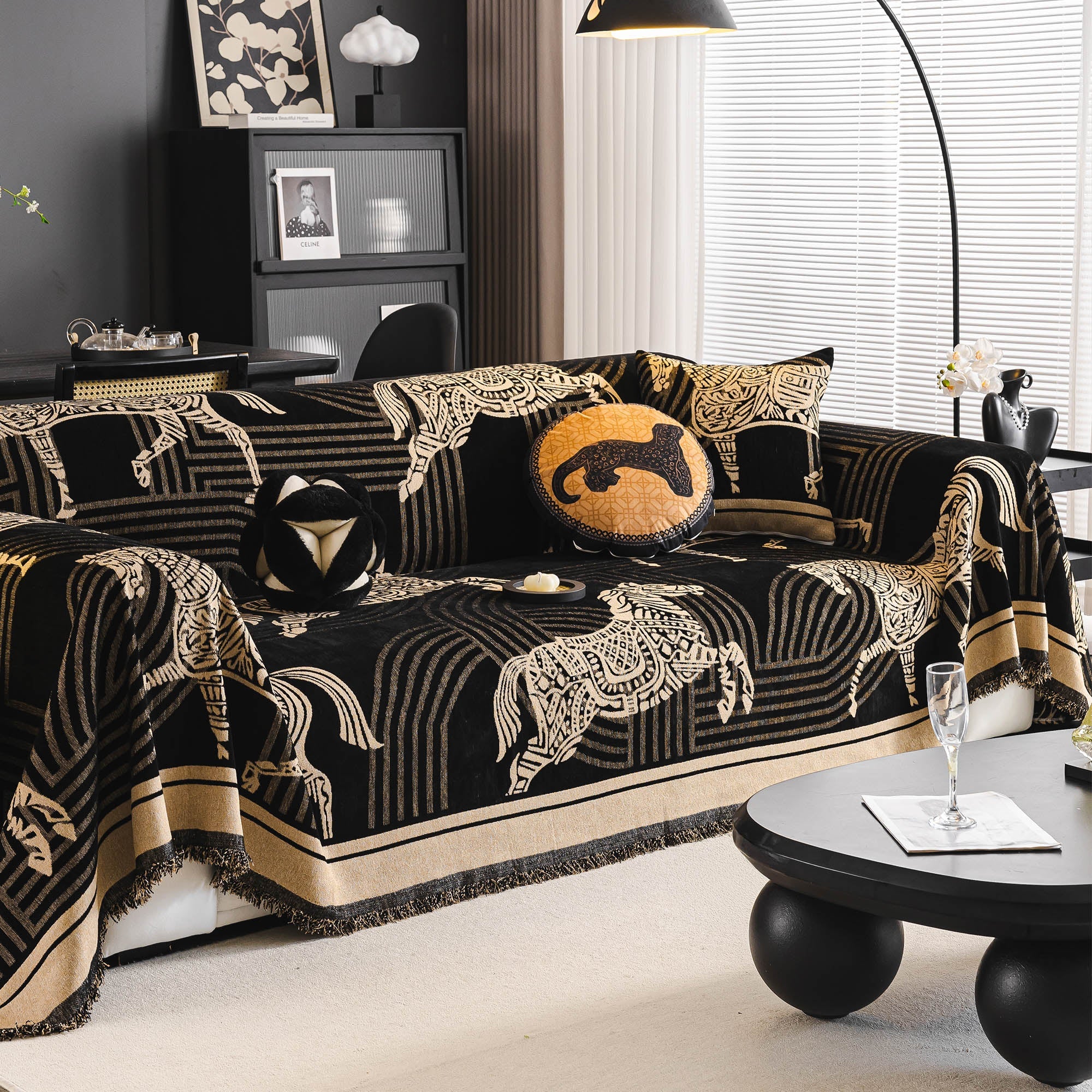 Elegancki, oddychający pokrowiec na sofę z motywem konia, miękka i stylowa ochrona sofy dla przytulnego, nowoczesnego i bezproblemowego domu