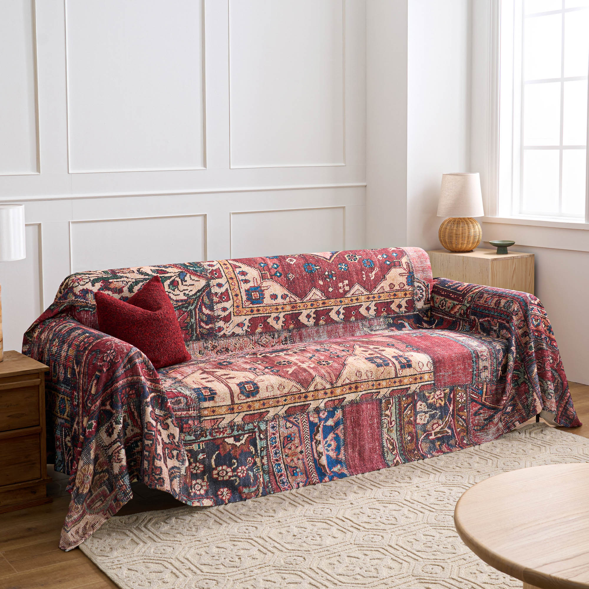 Napełnij swoją przestrzeń urokiem starożytnych wzorów dzięki naszemu pokrowcowi na sofę Vintage Tribal. Zaprojektowany w bogatych, ziemistych barwach i misternych motywach plemiennych, pokrowiec ten przeniesie Cię do świata dziedzictwa i sztuki. Jego solidna, tkana faktura zapewnia trwałość, jednocześnie dodając odrobinę boho elegancji do Twojego kącika wypoczynkowego. Idealny dla osób ceniących klasyczny i rustykalny wystrój, ten pokrowiec łączy styl i ochronę Twoich mebli.