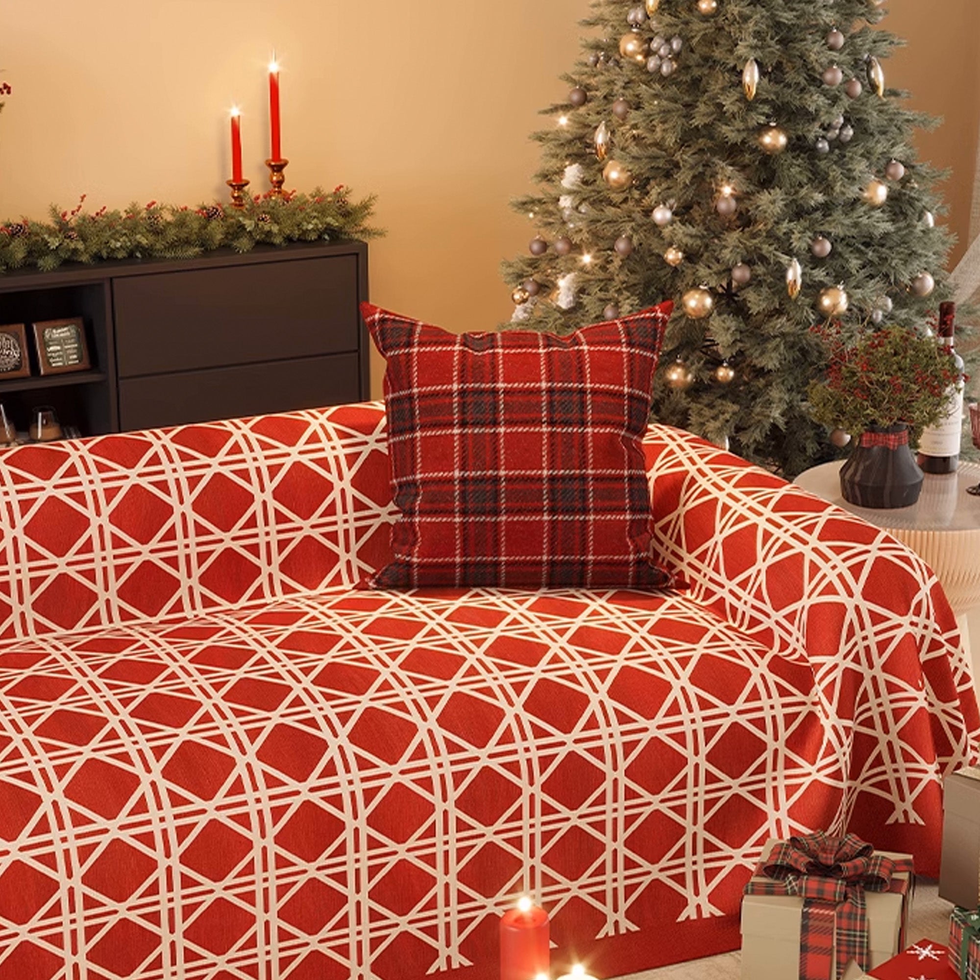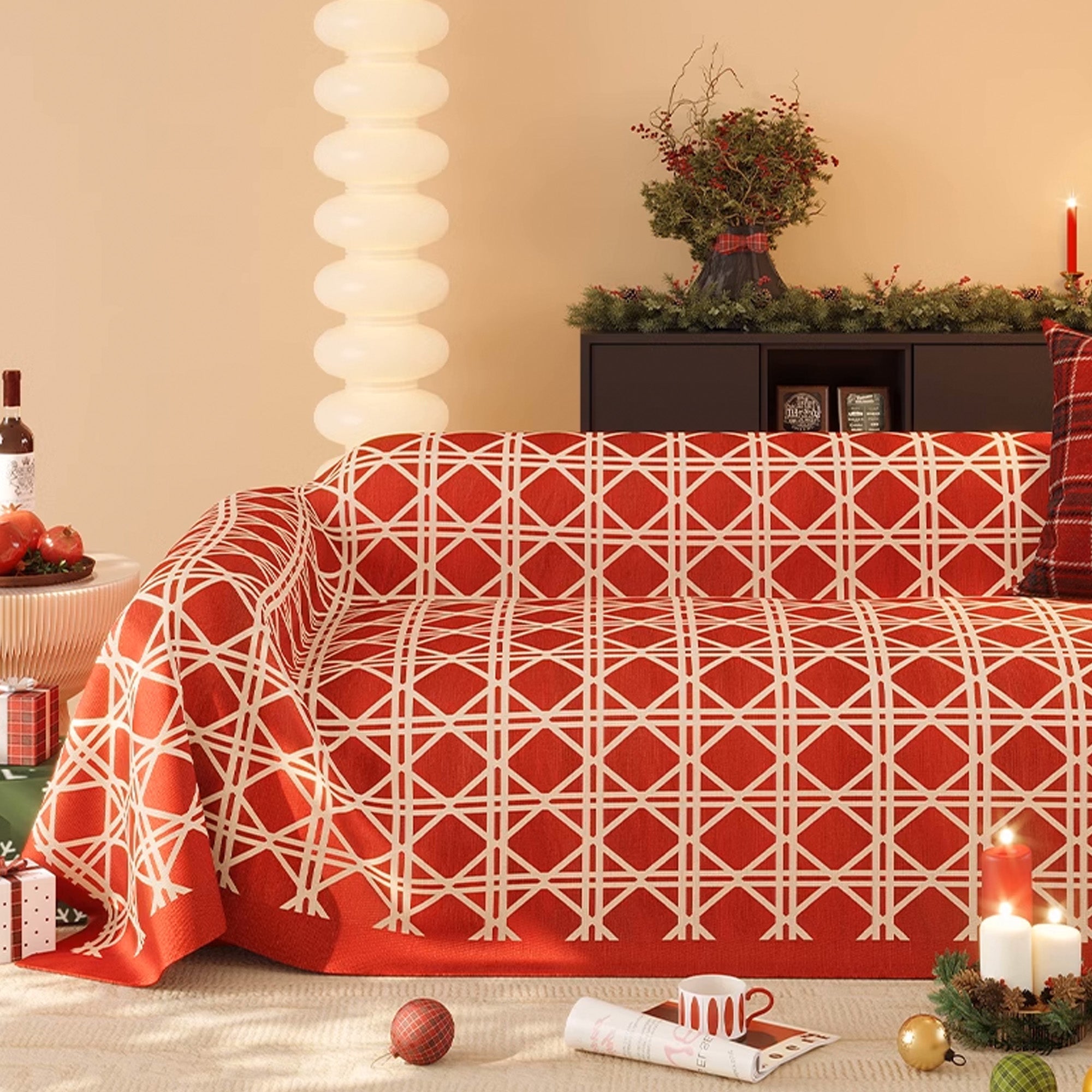 Odważny, czerwony pokrowiec na sofę w kształcie diamentu do nowoczesnej, stylowej metamorfozy salonu