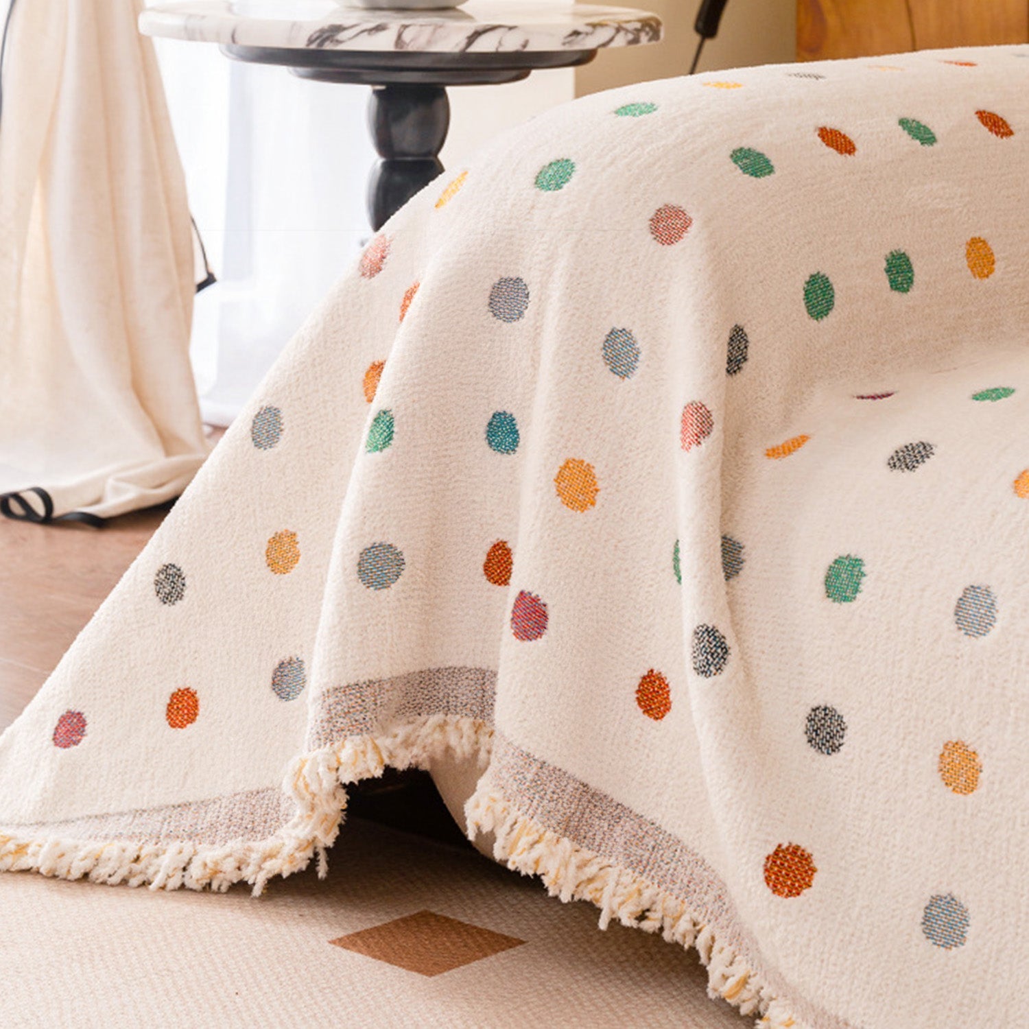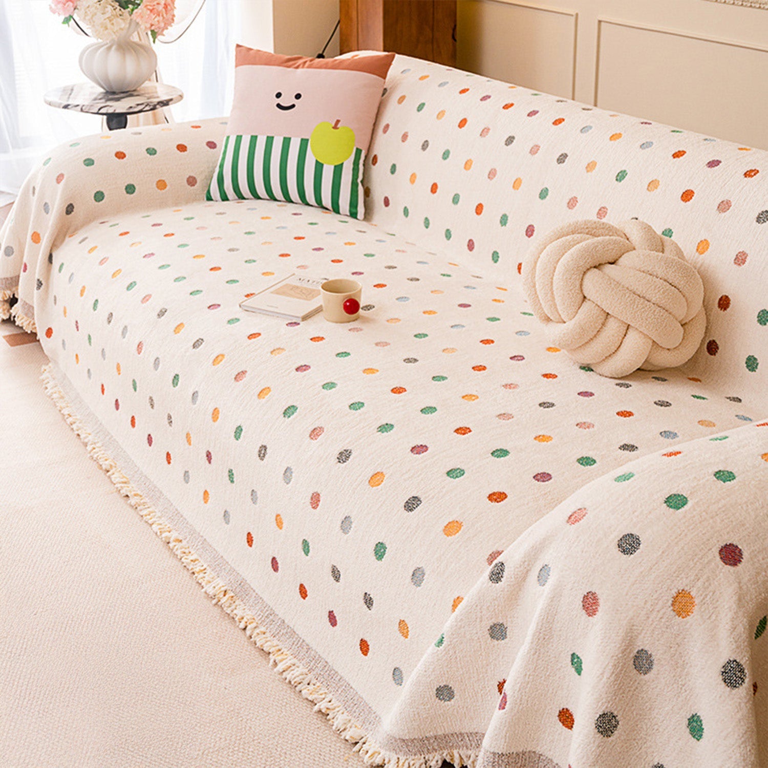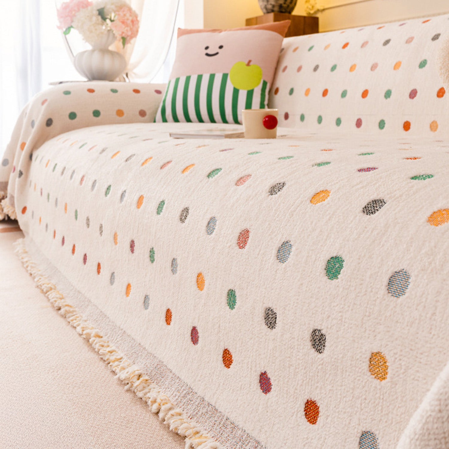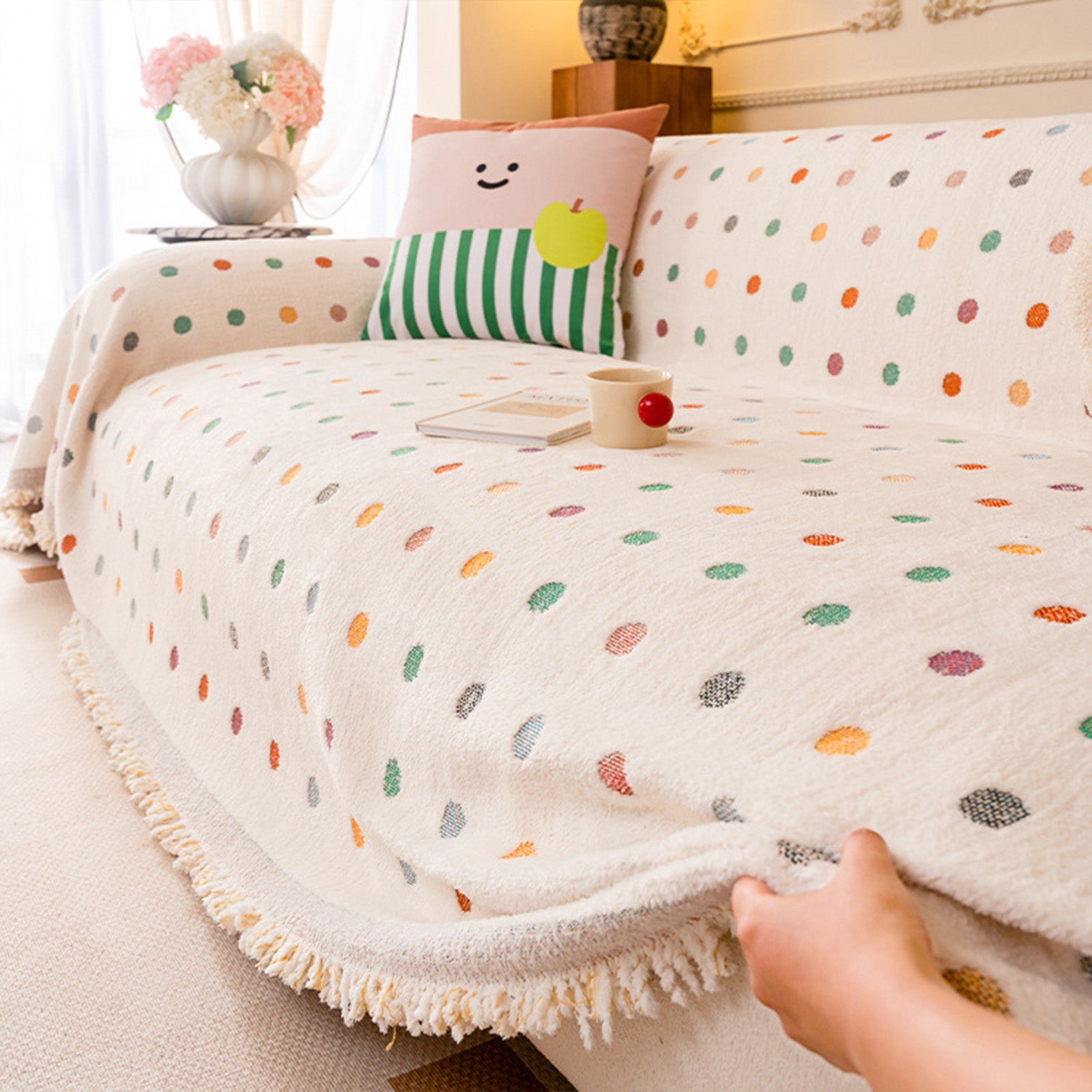 Pokrowiec na sofę z kolorowymi kropkami, odporny na zarysowania, z szenili