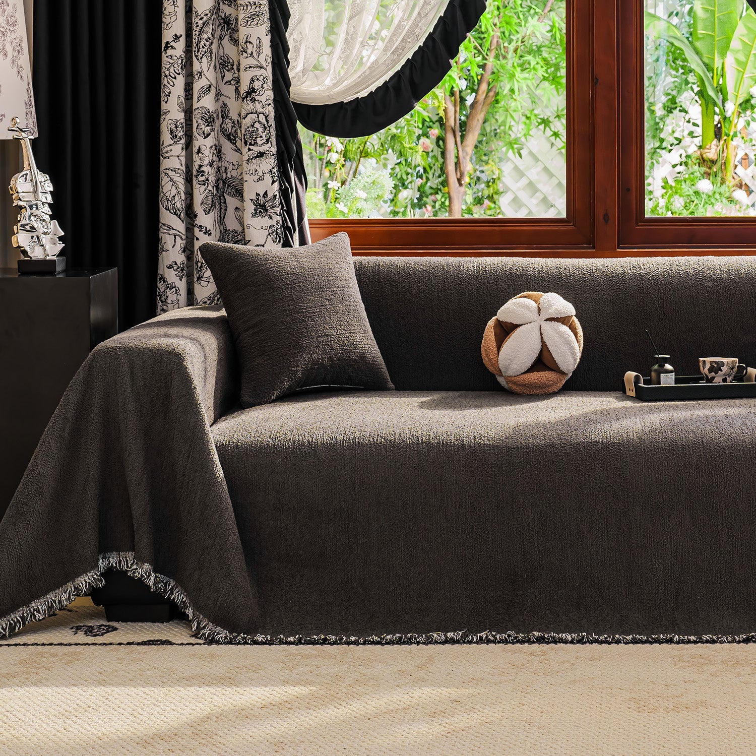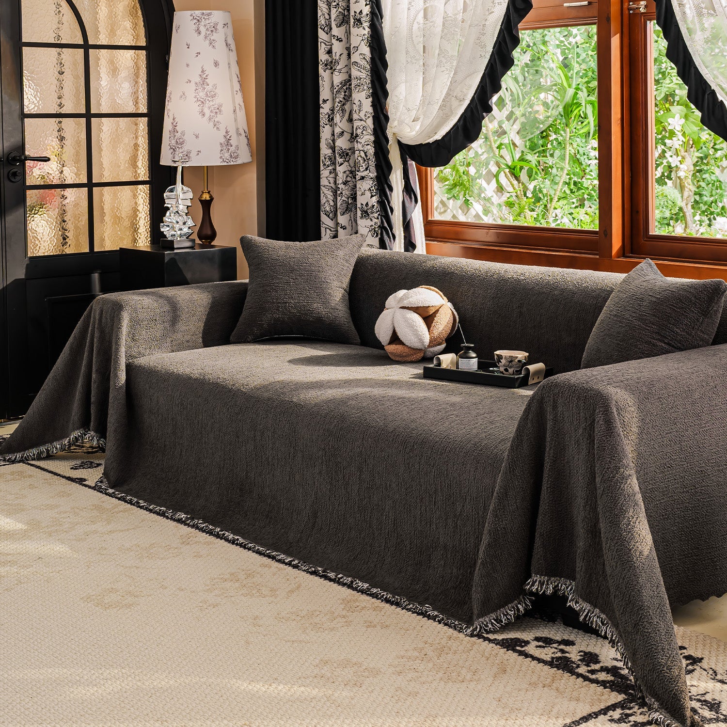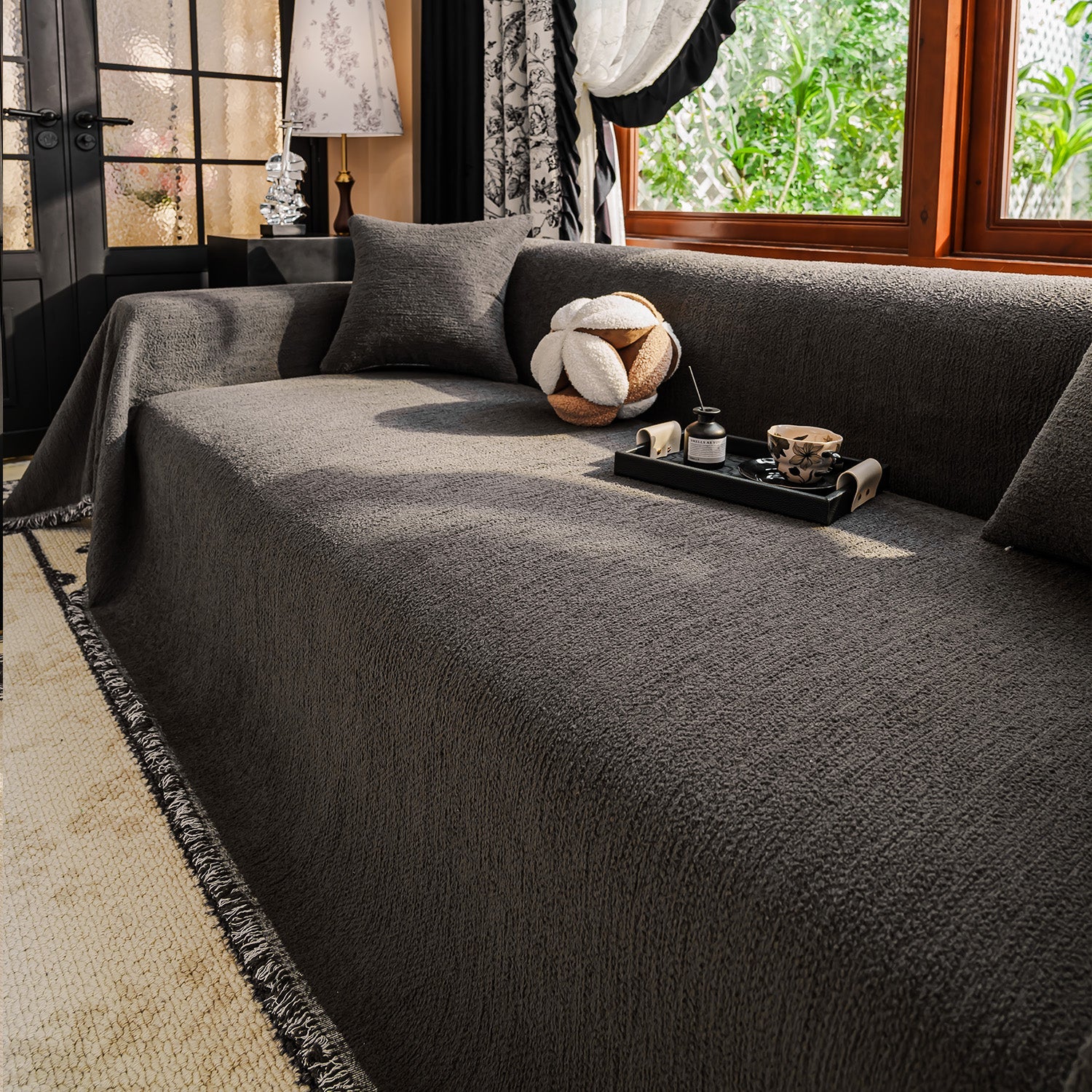 Przytulny, tkany, zmywalny pokrowiec na sofę z szenili