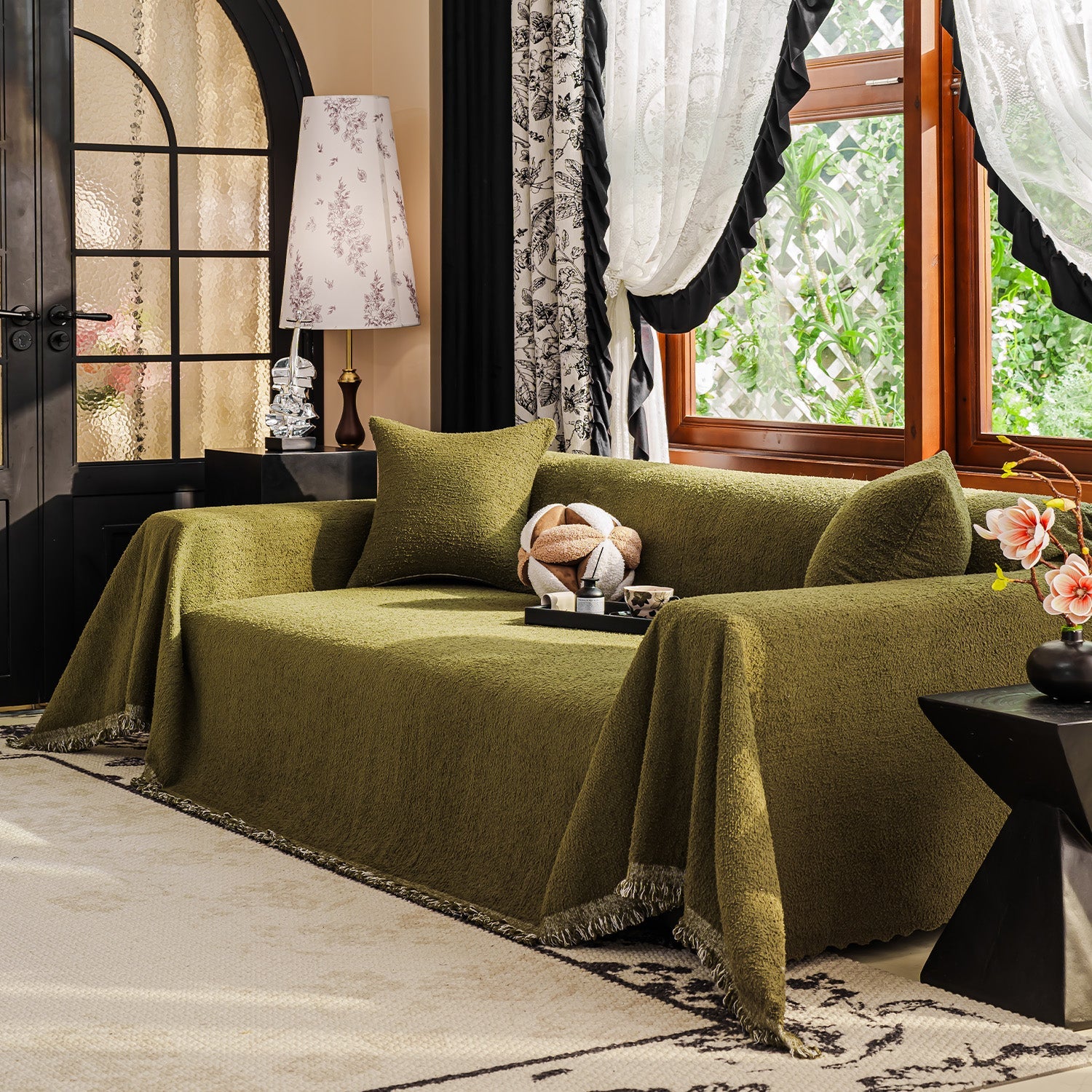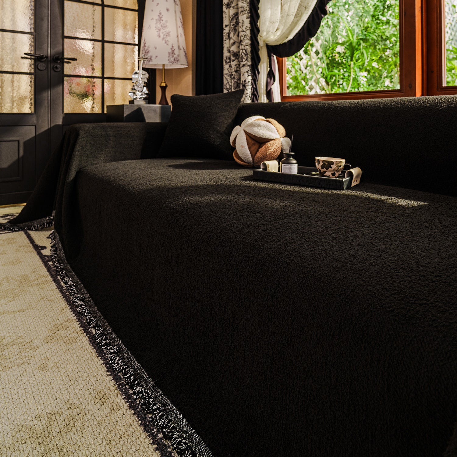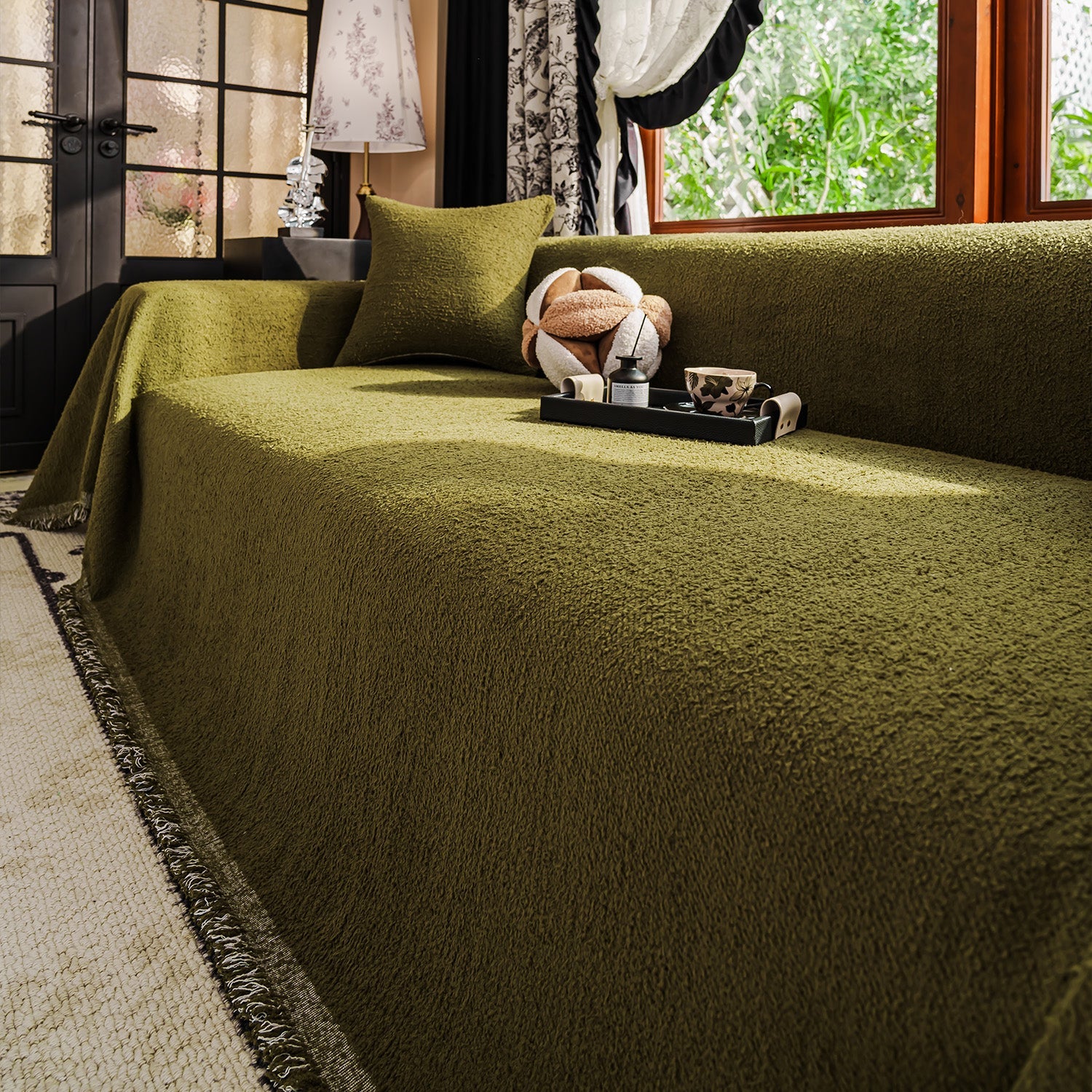 Przytulny, tkany, zmywalny pokrowiec na sofę z szenili