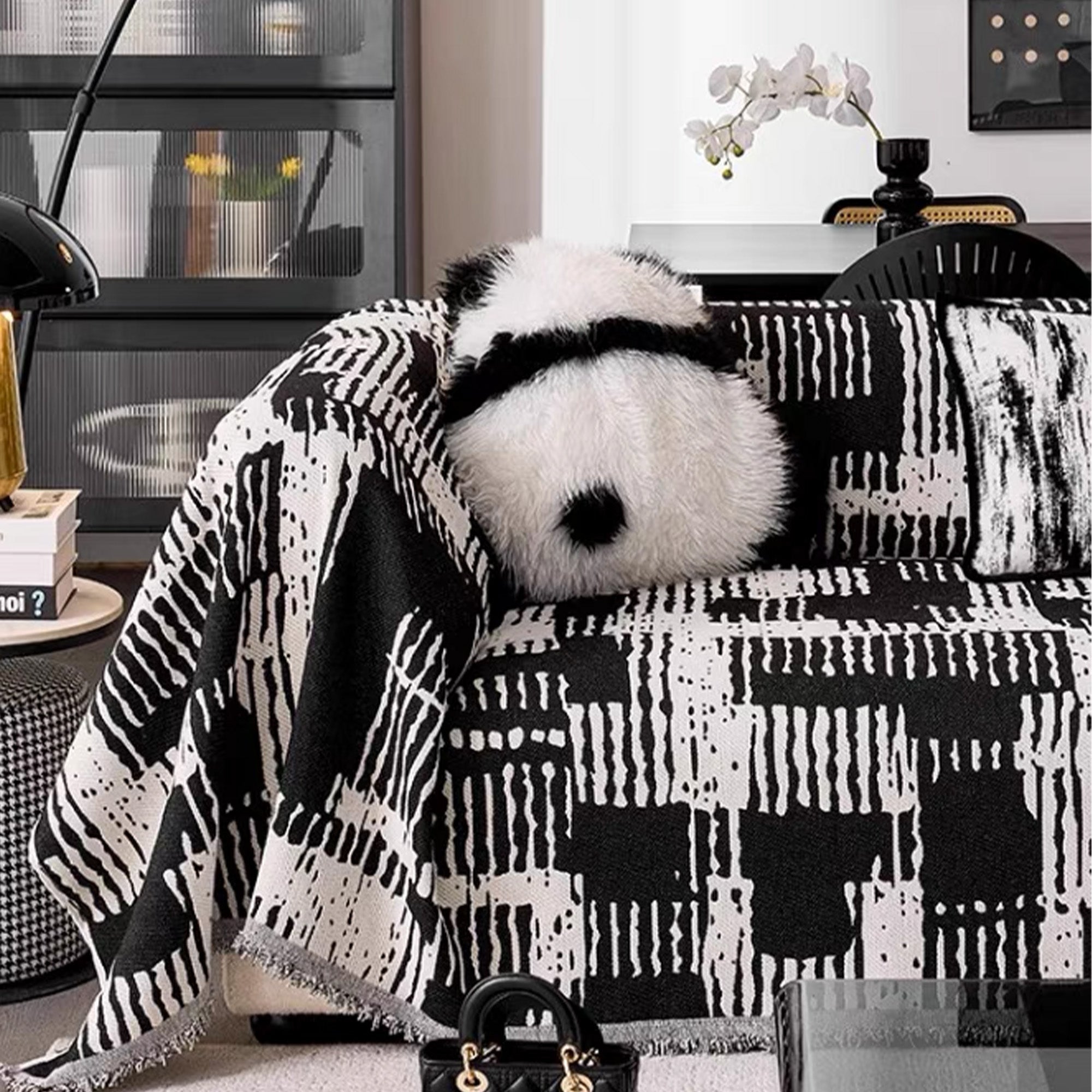 Dodaj wyrazistego charakteru swojemu salonowi dzięki pokrowcowi na sofę Modern Abstract. Z efektownymi czarno-białymi wzorami przypominającymi pociągnięcia pędzla, ten pokrowiec natychmiast doda Twojej sofie wyjątkowego, współczesnego charakteru. Wykonany z miękkiej, trwałej tkaniny, oferuje zarówno komfort, jak i styl, dzięki czemu idealnie pasuje do nowoczesnych i minimalistycznych wnętrz.