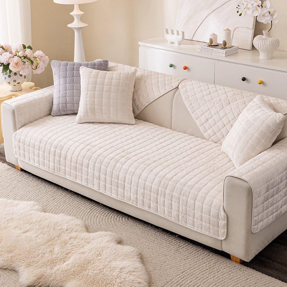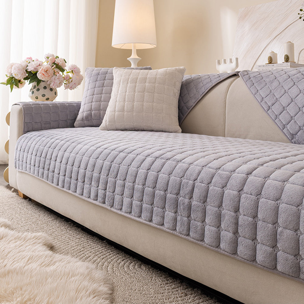 Luksusowy pikowany flanelowy pokrowiec na sofę antypoślizgowy