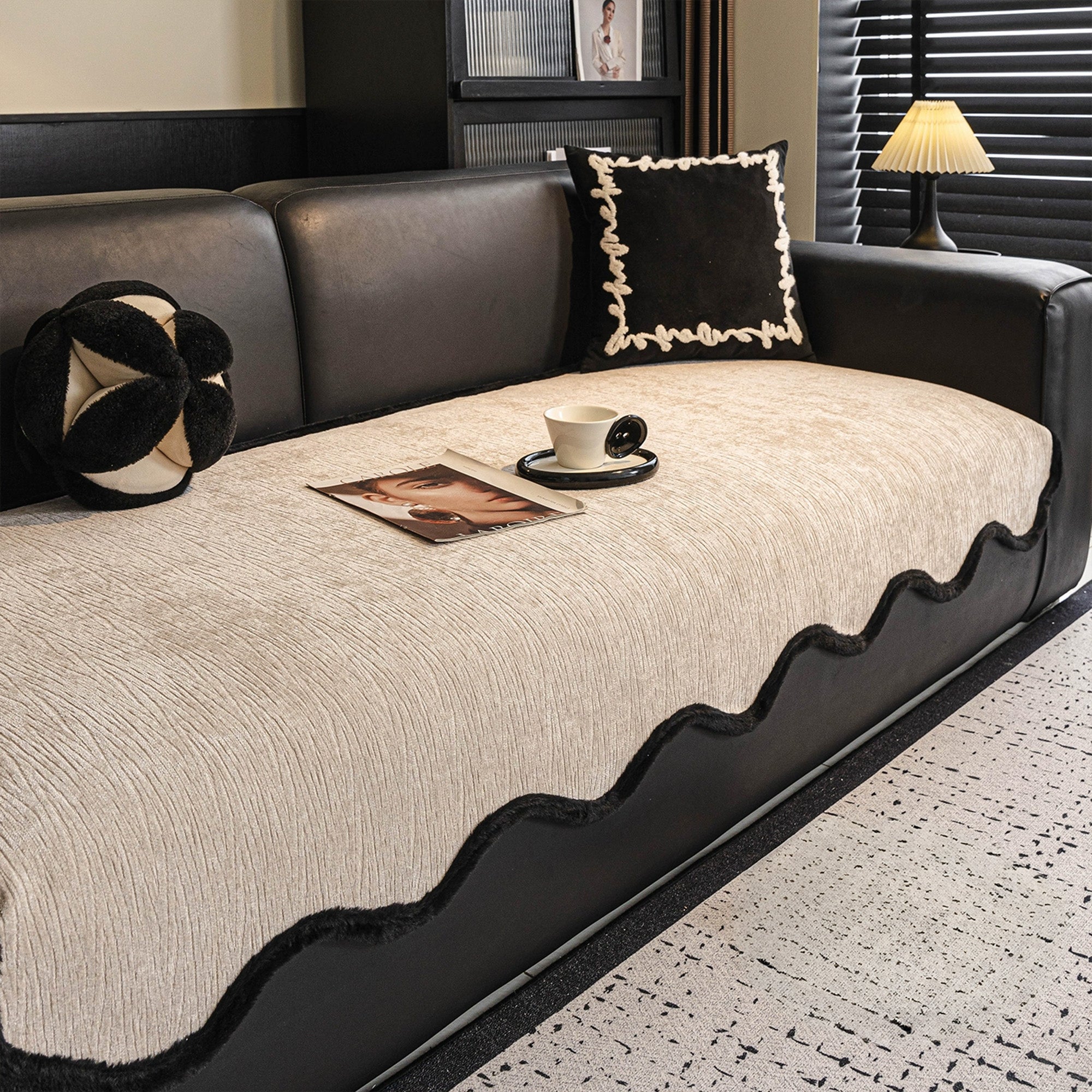 Nowoczesny pokrowiec na sofę z falowanej tkaniny Chenille antypoślizgowej