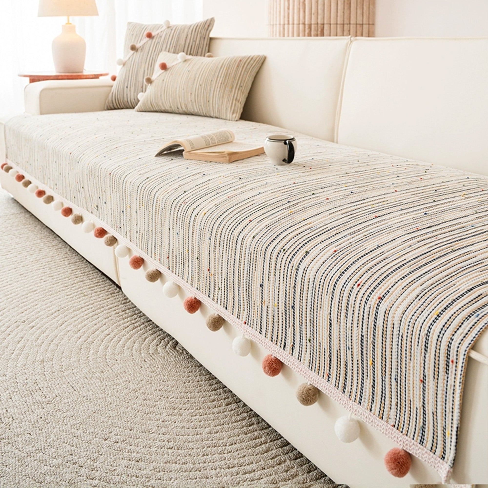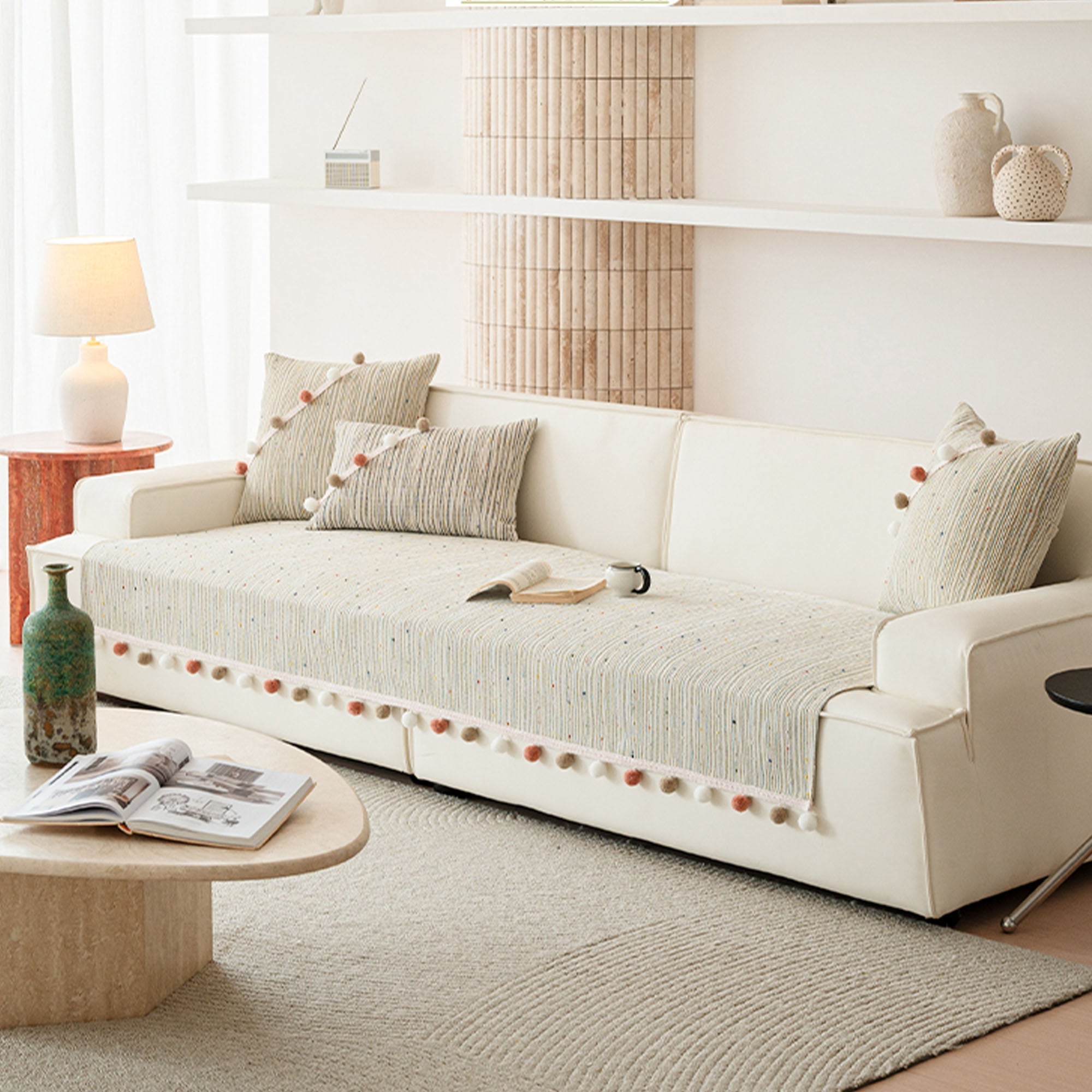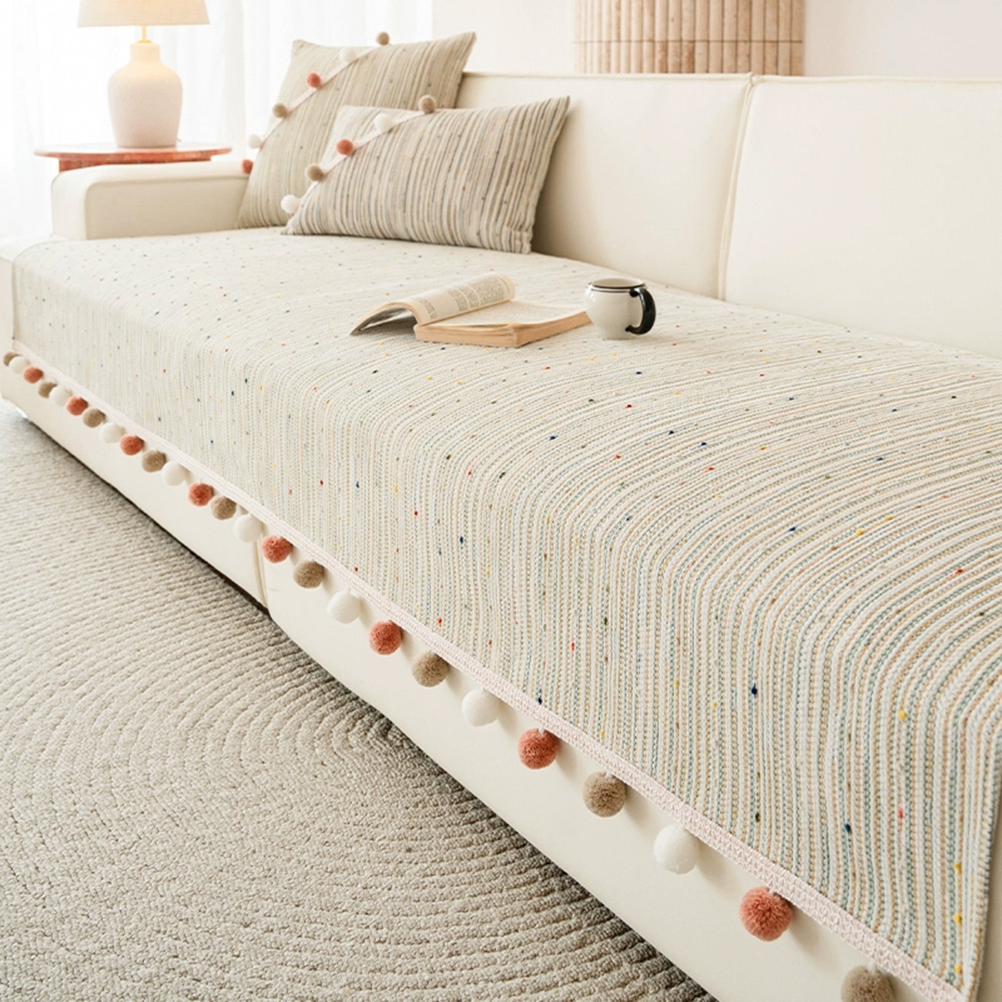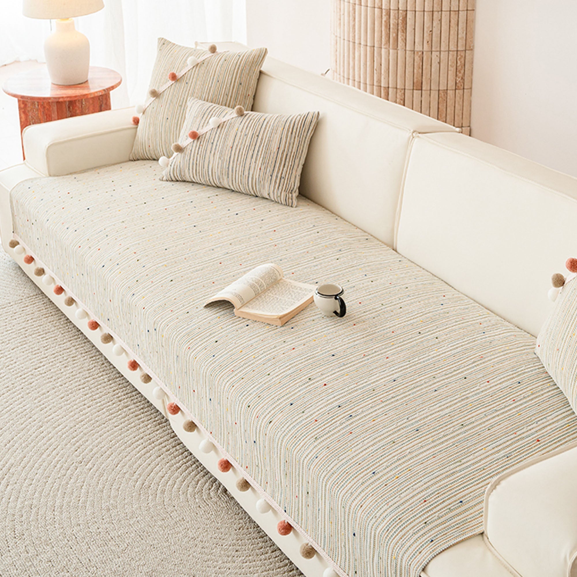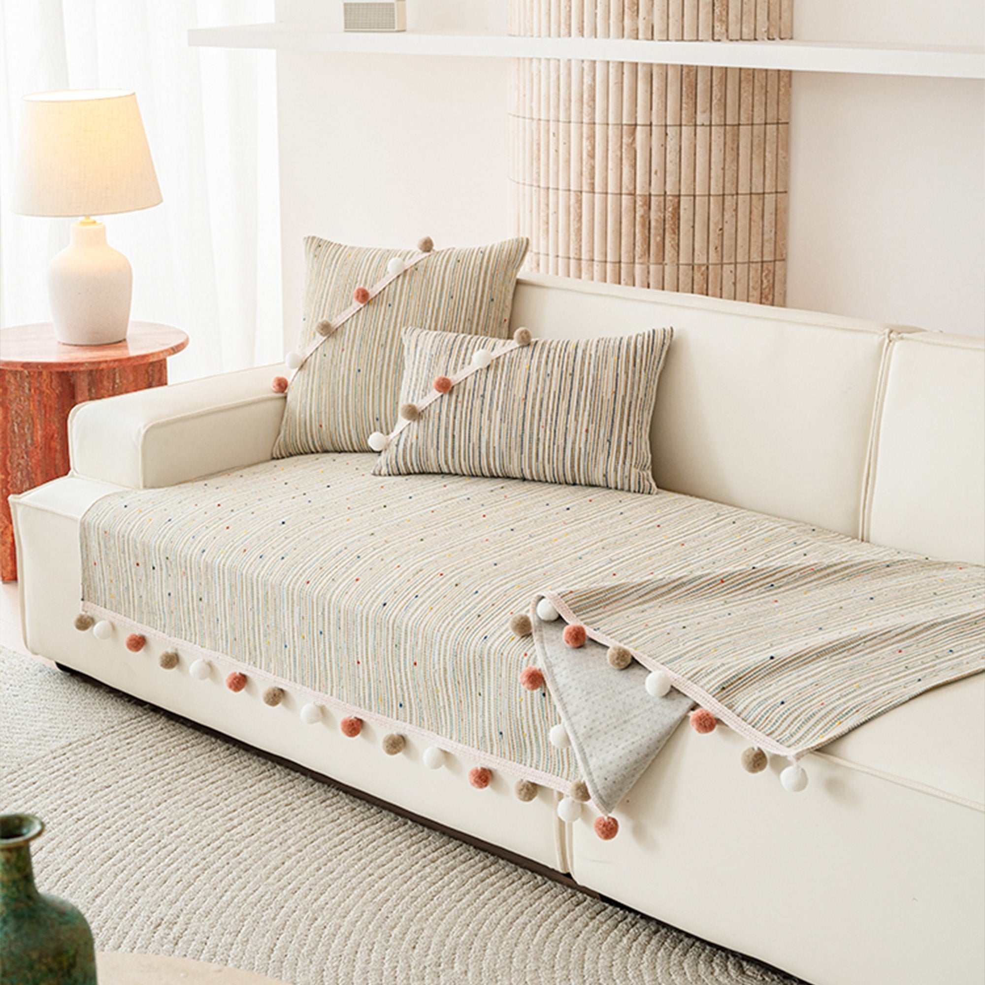 Dodaj odrobinę radosnej elegancji i przytulnego komfortu do swojego domu dzięki naszemu antypoślizgowemu pokrowcowi na sofę Playful Dots Chenille. Zaprojektowany z subtelnymi kropkowanymi fakturami i ozdobiony kolorowymi pomponami, pokrowiec ten doda radości i uroku każdemu wnętrzu, zachowując jednocześnie wyrafinowanie. Wykonany z wytrzymałej, przyjaznej zwierzętom tkaniny szenilowej, nie tylko upiększy wystrój, ale także zapewni niezawodną ochronę przed codziennym zużyciem, zadrapaniami i sierścią.