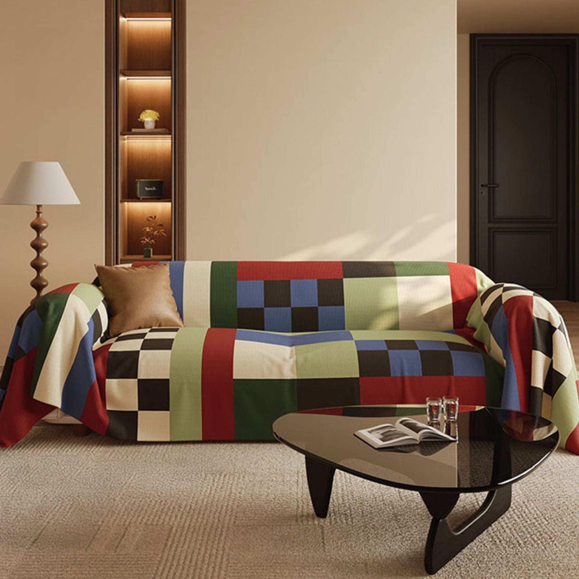 Postaw na odważny krok z pokrowcem na sofę Retro Block Charm. Ten pełen charakteru pokrowiec z żywym wzorem szachownicy i kolorowymi blokami nawiązuje do nowoczesnej sztuki, a jednocześnie jest przytulny. To idealny sposób na dodanie wnętrzu radosnego charakteru, a jednocześnie zapewnienie komfortu i przytulności – bo sofa powinna być równie funkcjonalna, co przyjemna.