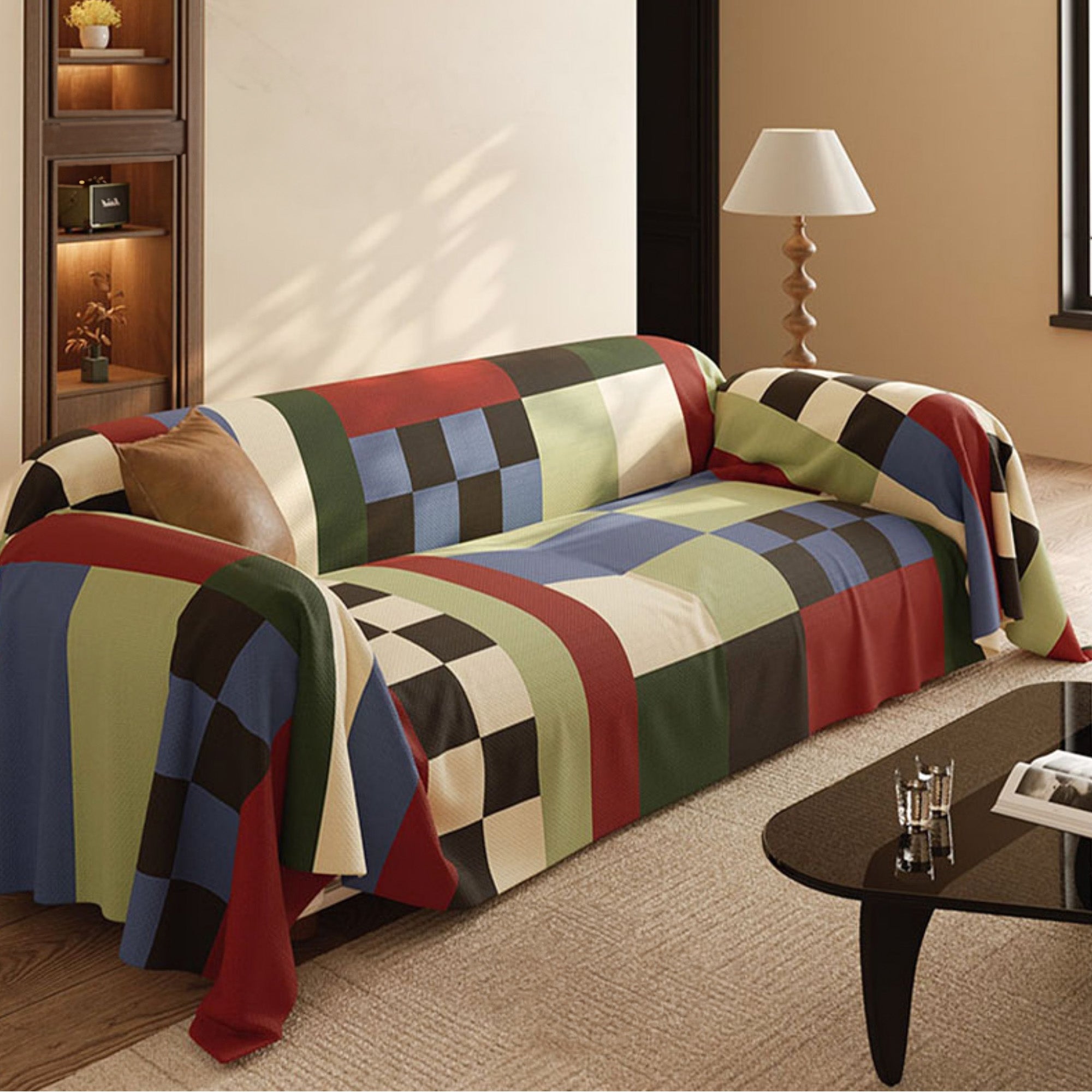 Pokrowiec na sofę w stylu retro z wyrazistym wzorem blokowym, oddychający, miękki, łatwy w czyszczeniu, trwały, nadający się do prania w pralce, chroniący kanapę przed modernizacją domu