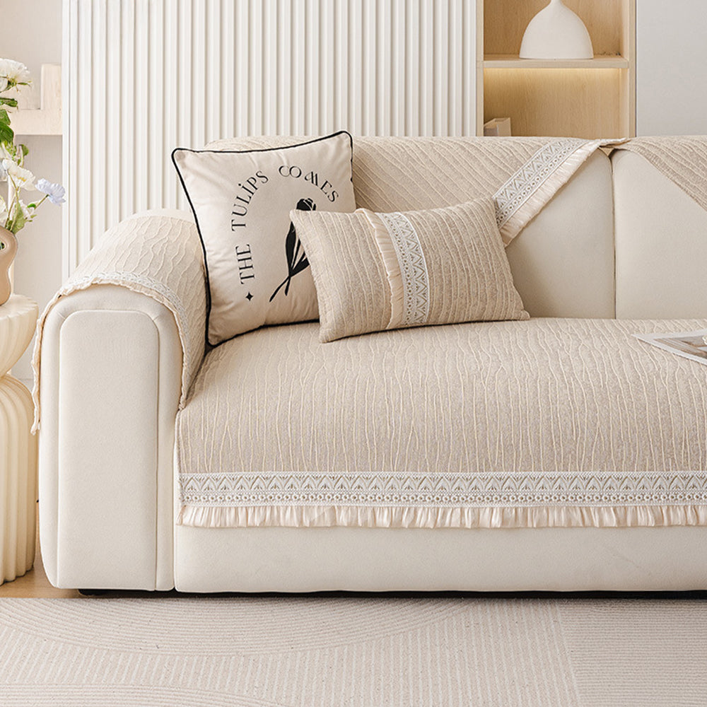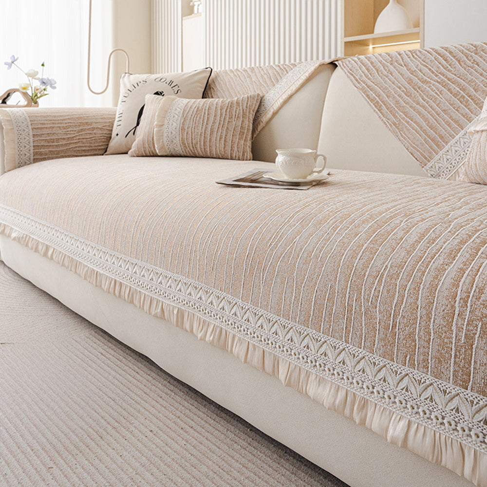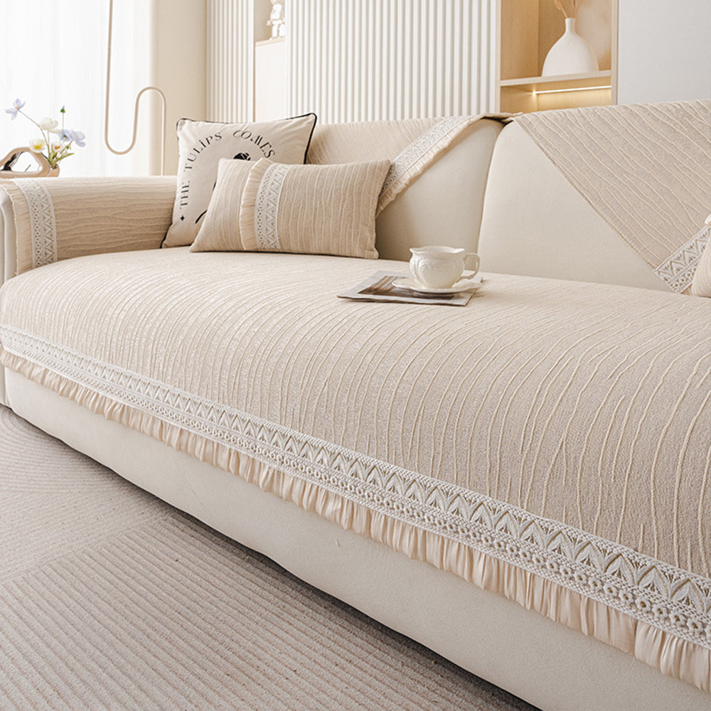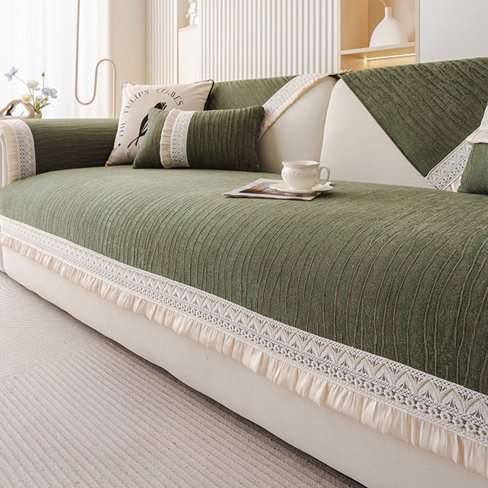 Elegancki koronkowy pokrowiec na sofę z tkaniny szenilowej antypoślizgowej