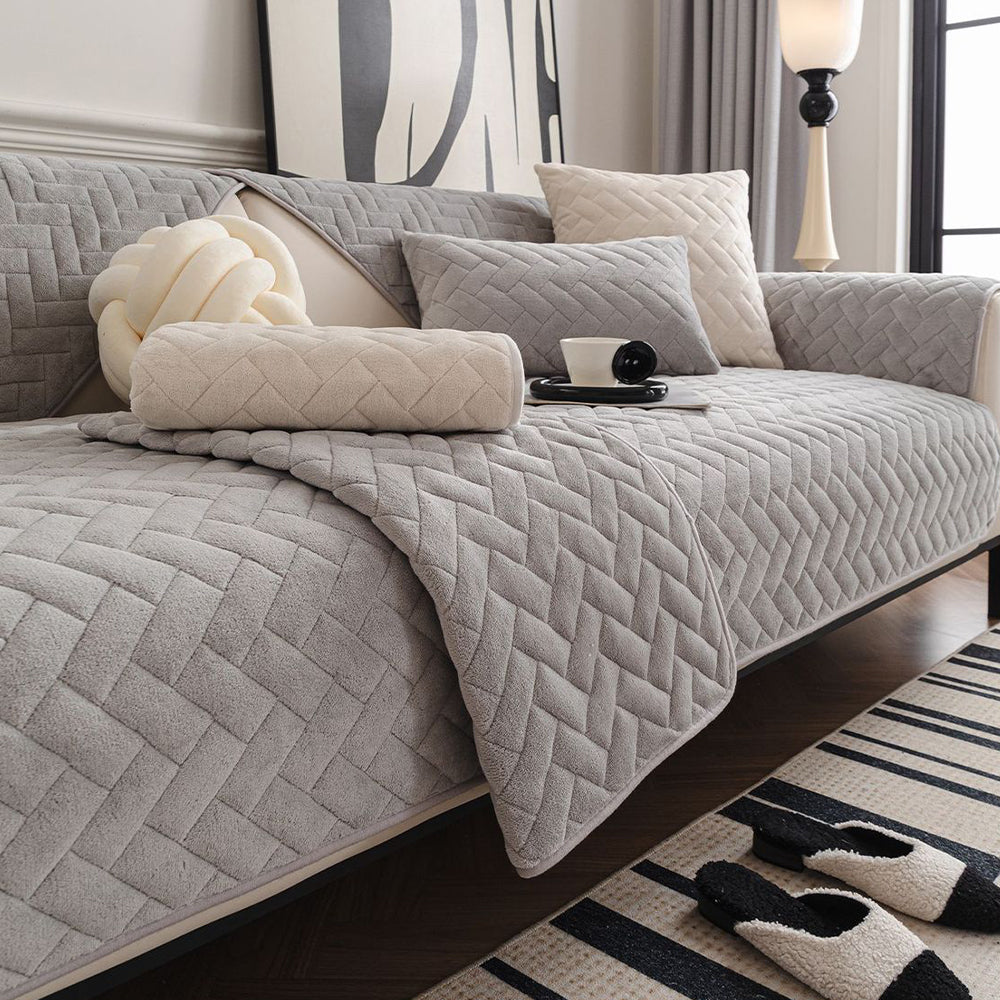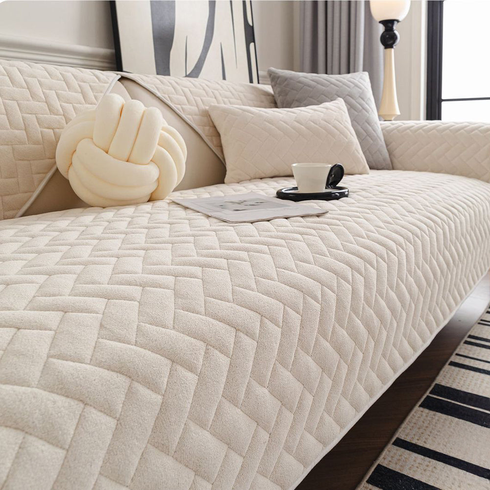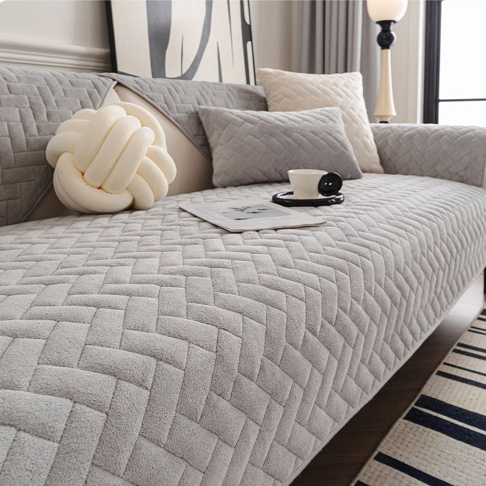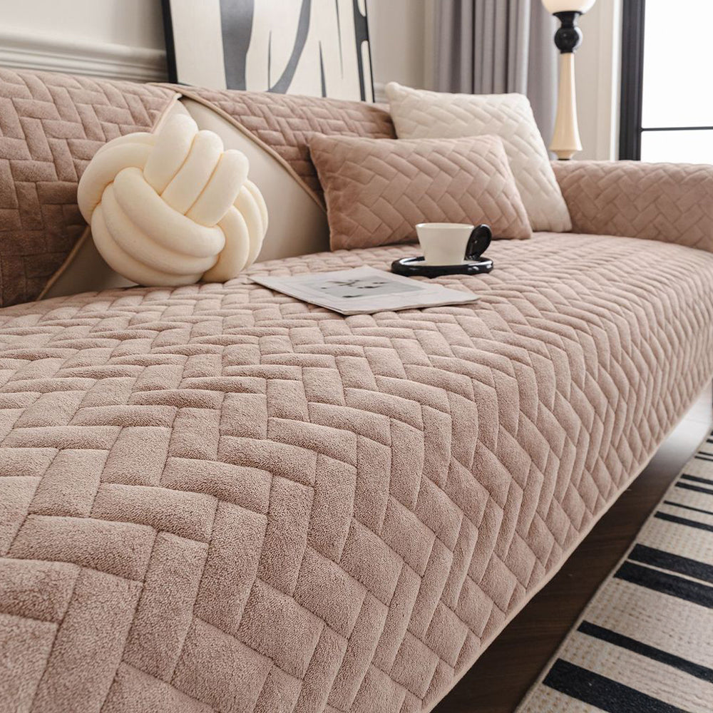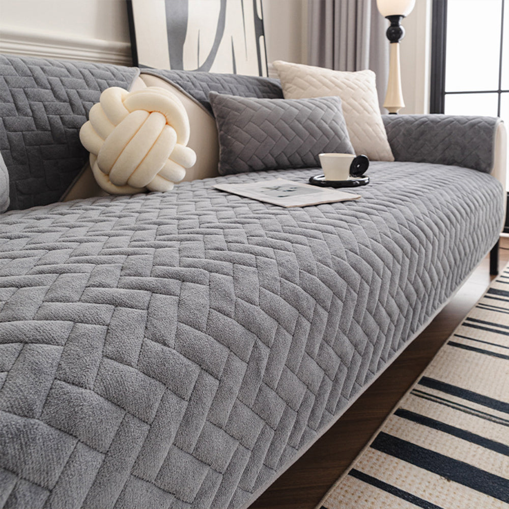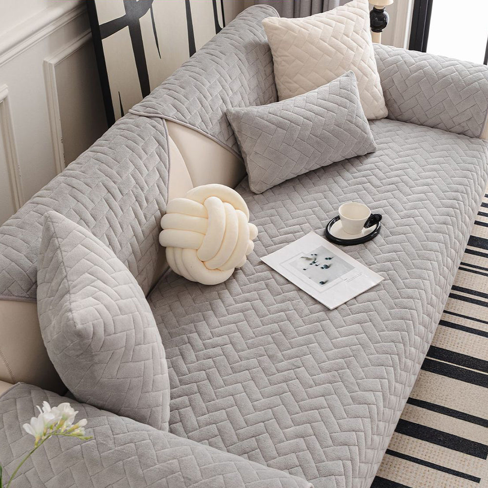 Pokrowiec na sofę z pluszu i weluru w jodełkę, antypoślizgowy