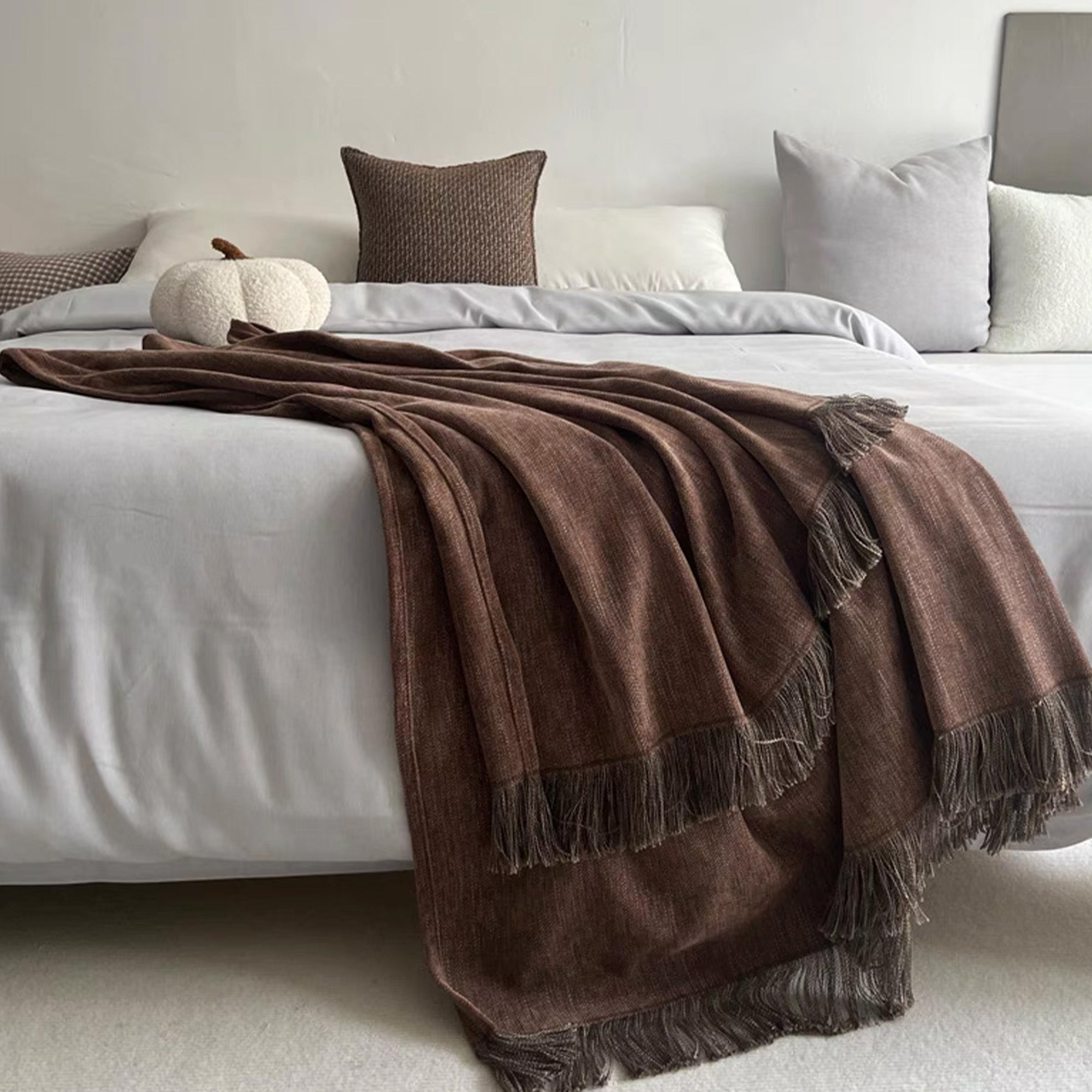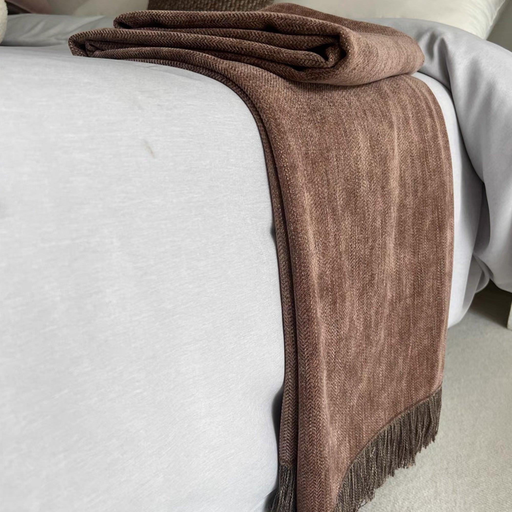 Dodaj odrobinę elegancji do swojej przestrzeni z naszym narzutą z frędzlami, która łączy w sobie styl i wygodę. Jej soczysty kolor i miękka faktura sprawiają, że idealnie nadaje się na przytulne wieczory lub jako stylowy dodatek do łóżka lub sofy. Dzięki frędzlom na brzegach, które nadają jej szykowne wykończenie, ten narzut jest równie dekoracyjny, co funkcjonalny.