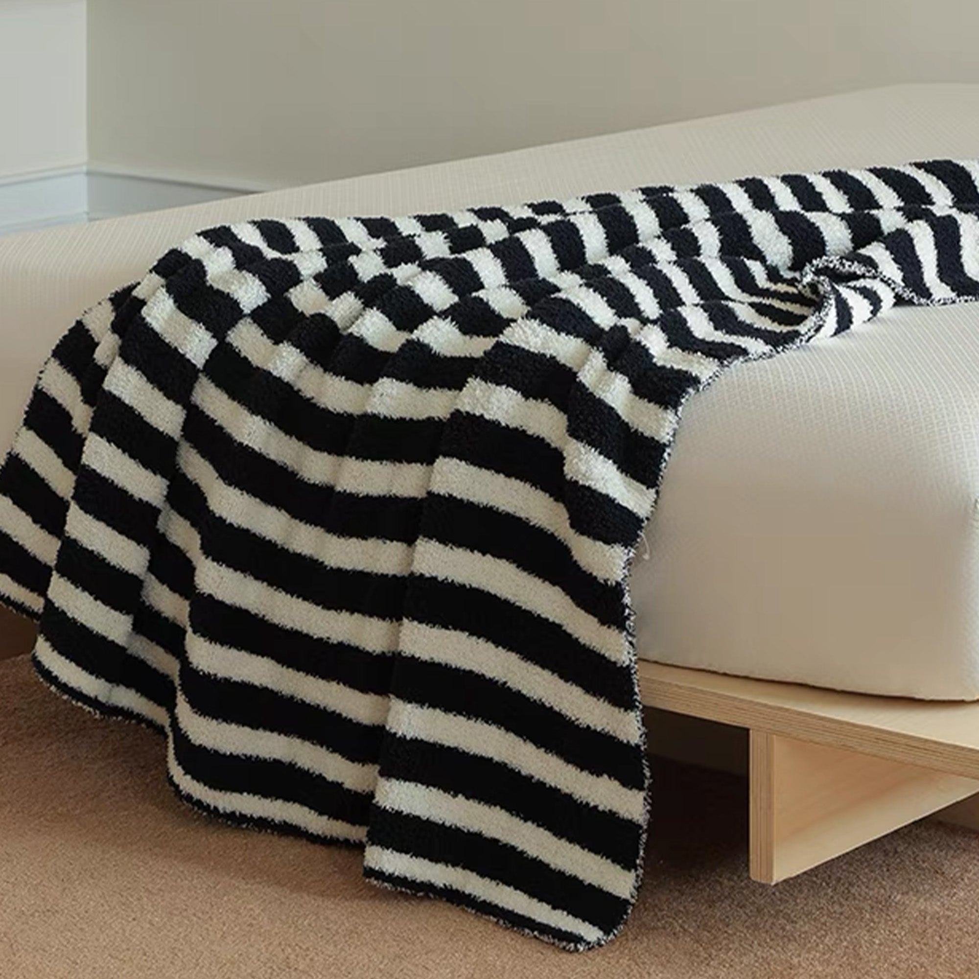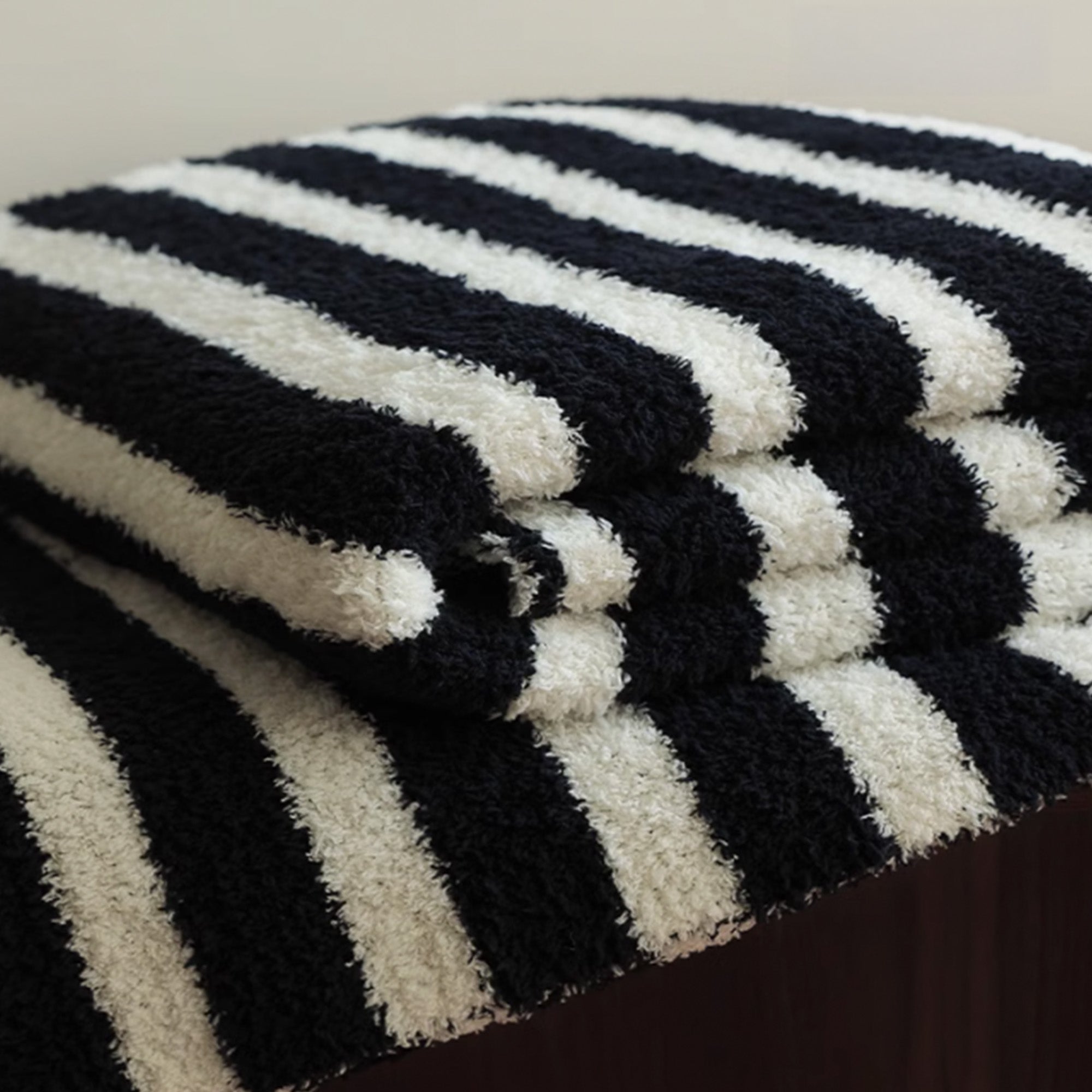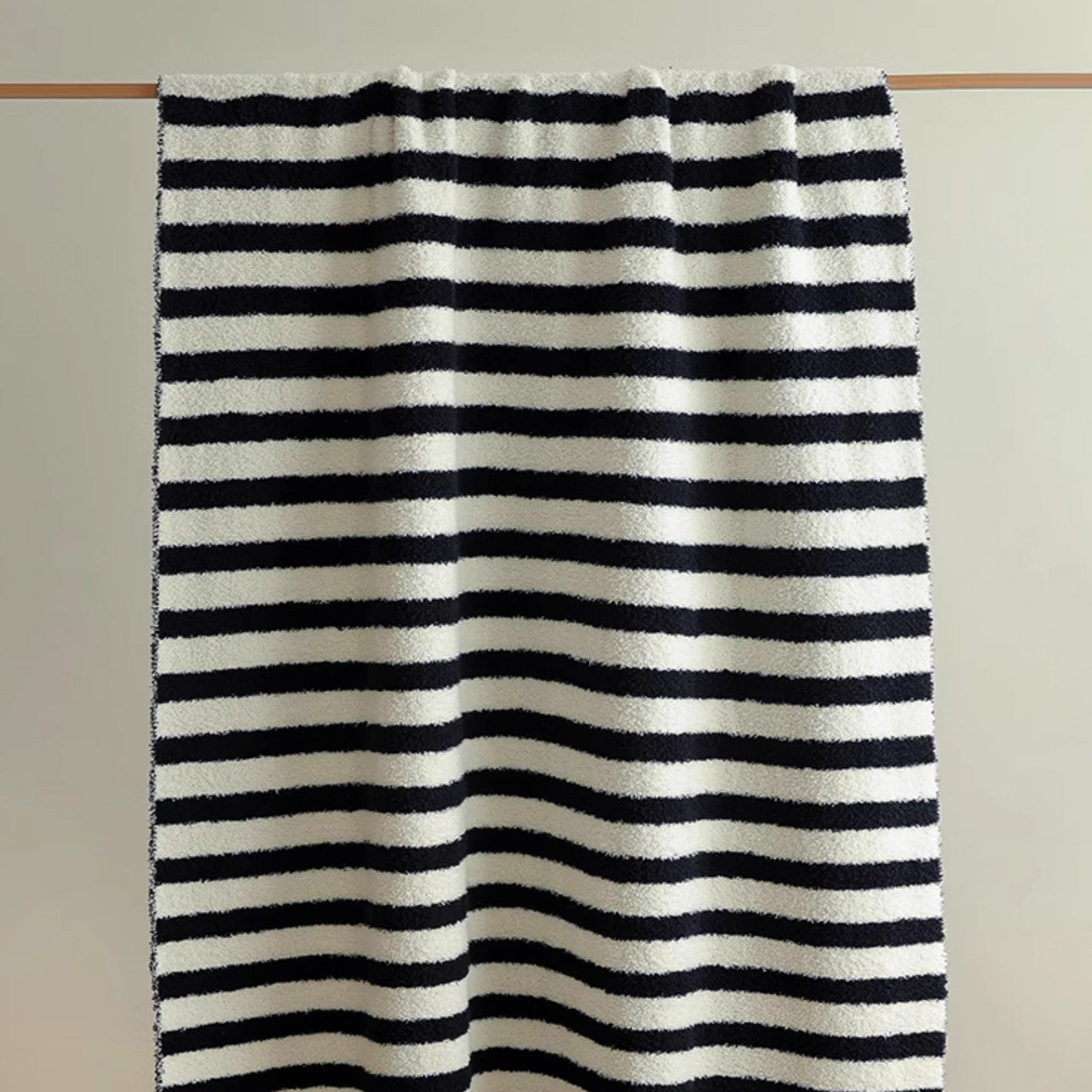 Dla tych, którzy kochają odważny styl bez kompromisów w kwestii wygody, ten czarno-biały, pluszowy koc w paski to strzał w dziesiątkę. Jest miękki, efektowny i idealnie nadaje się do dodania odrobiny charakteru każdemu pomieszczeniu. Niezależnie od tego, czy rozłożysz go na sofie, fotelu, czy łóżku, ten narzuta sprawdzi się w każdej przytulnej chwili.