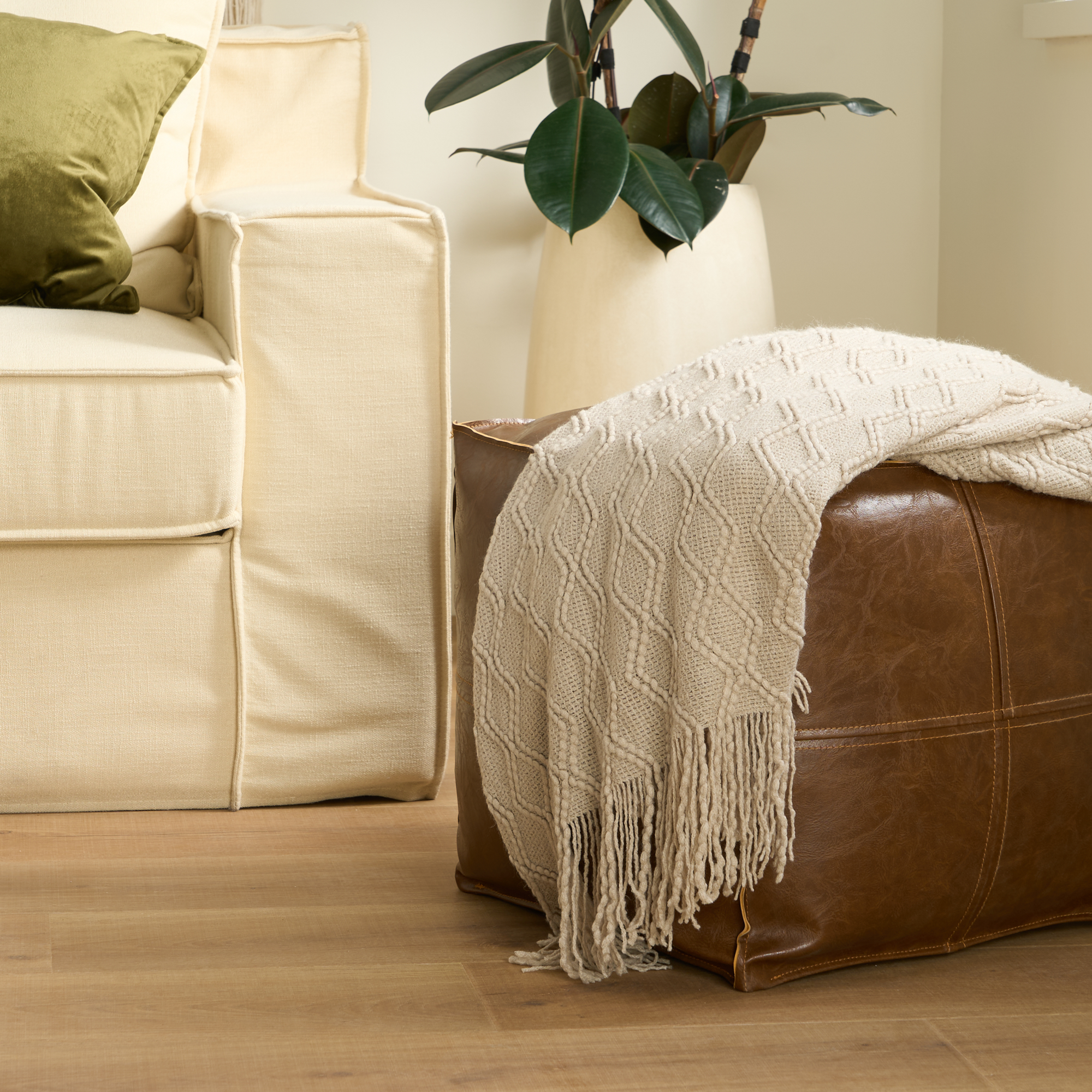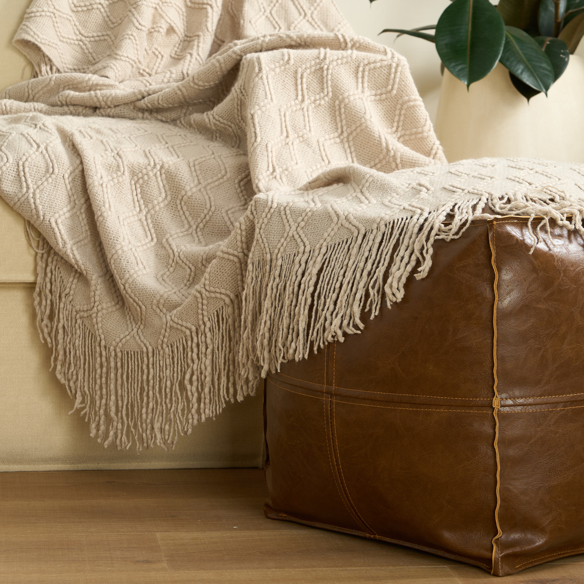 Przedstawiamy nasz koc Diamond Delight – idealnego towarzysza Twojego domu! Wykonany w 100% z akrylu, z wykorzystaniem najnowocześniejszej technologii tkania o gramaturze 300 g/m², ten koc oferuje odrobinę luksusu dzięki swojej wyjątkowo miękkiej fakturze. Dzięki uroczemu splotowi w kształcie wypukłych rombów i idealnie umieszczonym frędzlom, będzie idealnym akcentem w każdym wnętrzu. Niezależnie od tego, czy otulasz się w ciepłym wnętrzu, czy też odkrywasz piękno natury, ten koc to Twój bilet do ciepła i stylu.