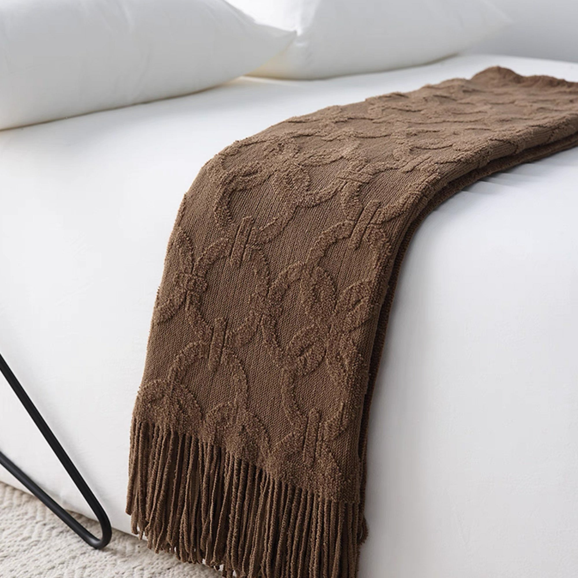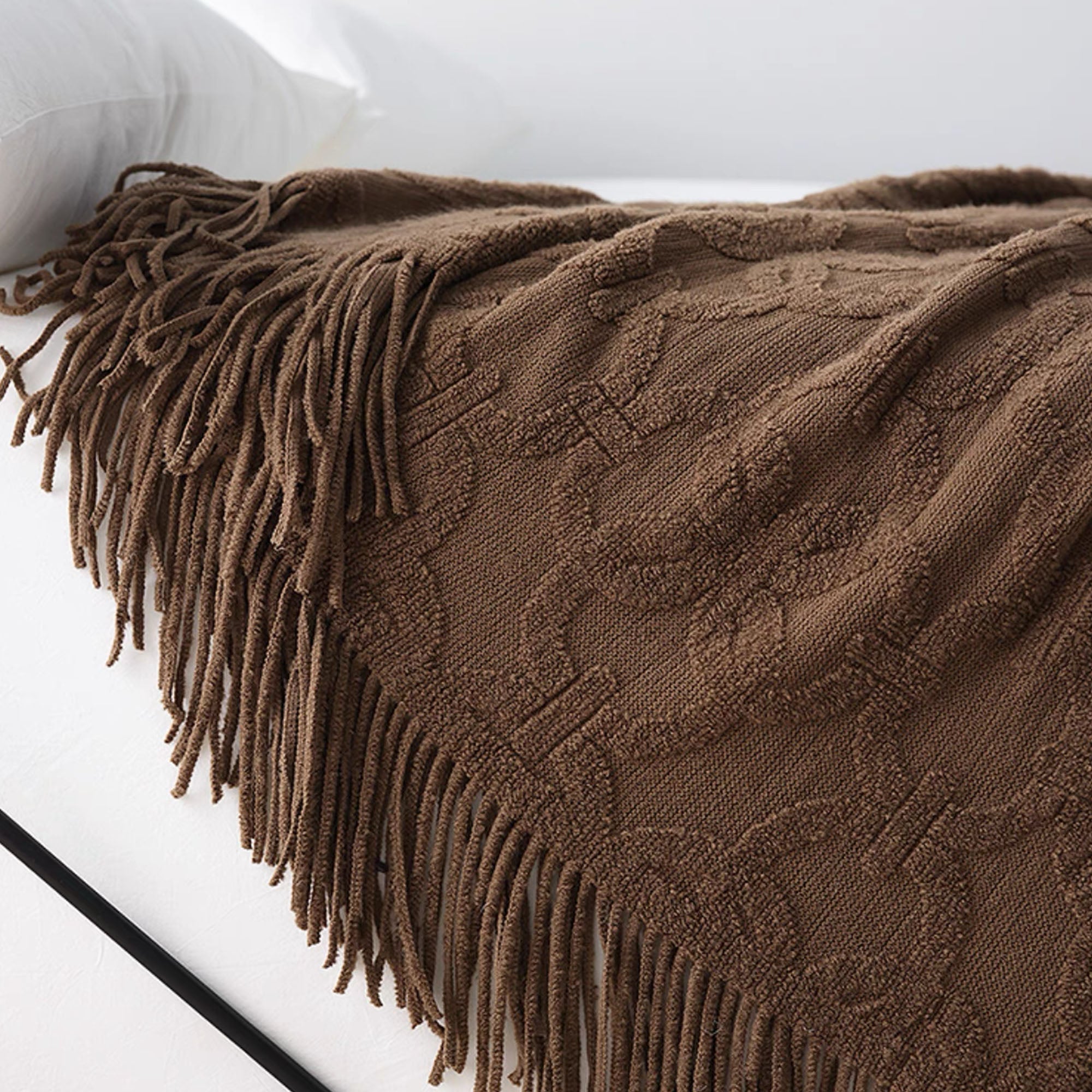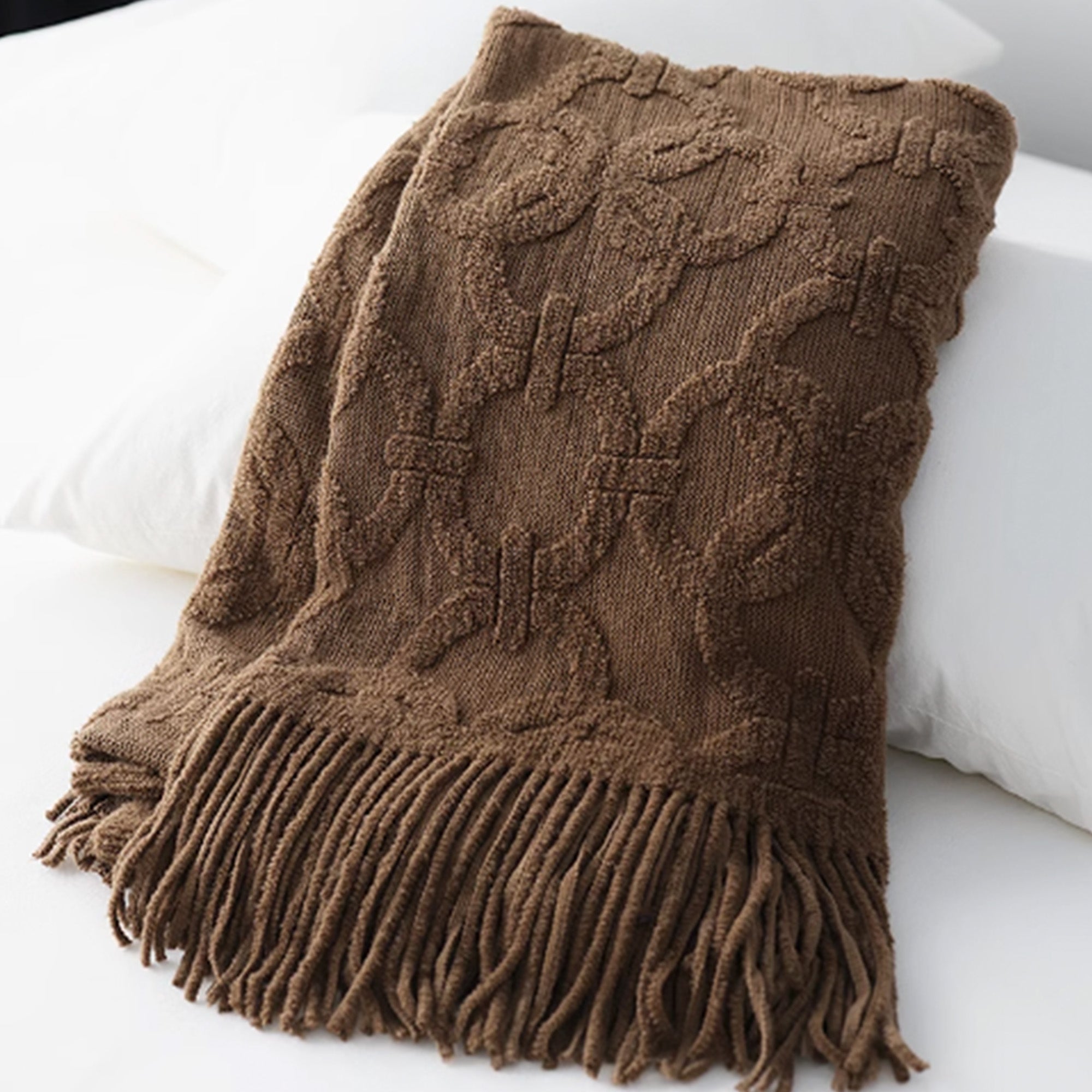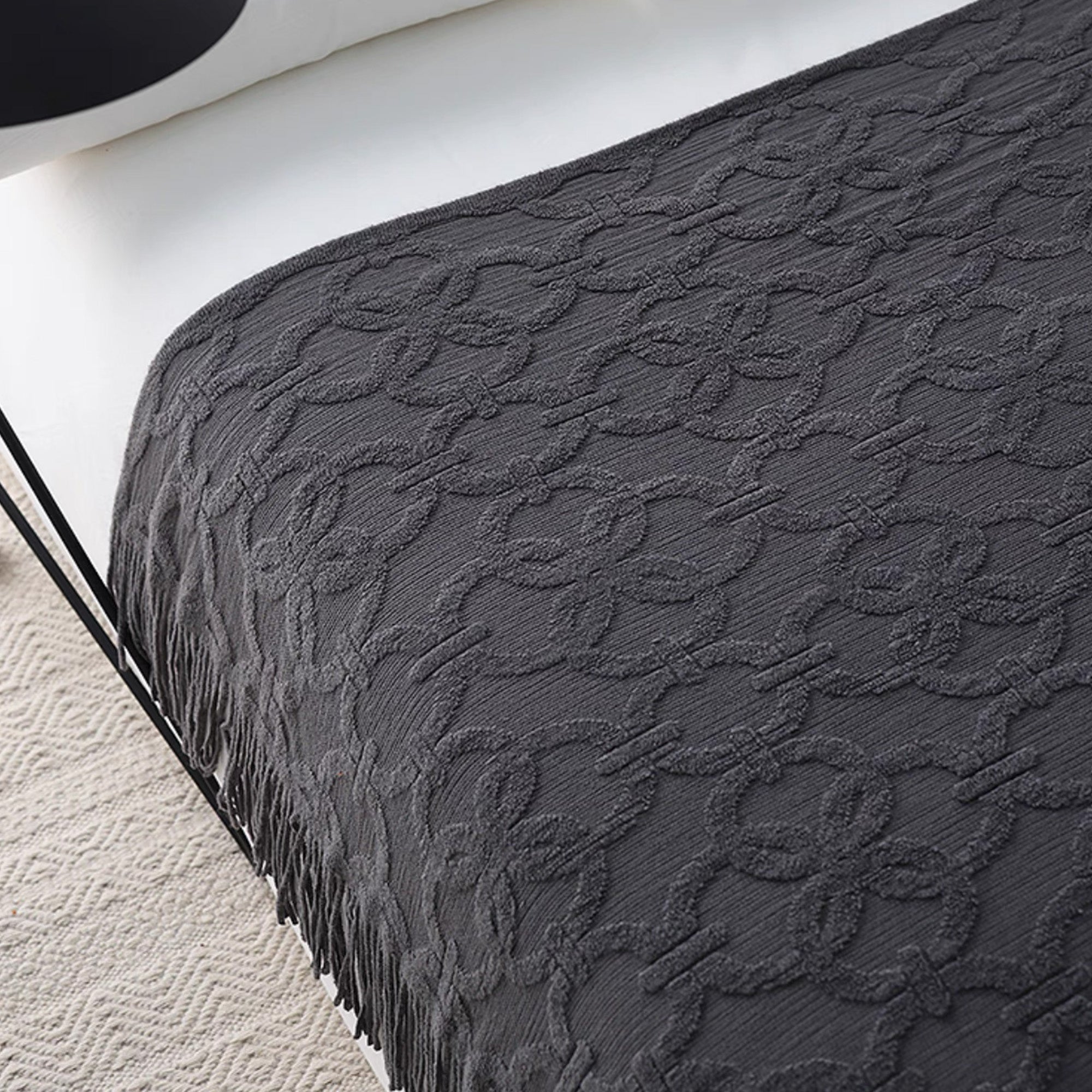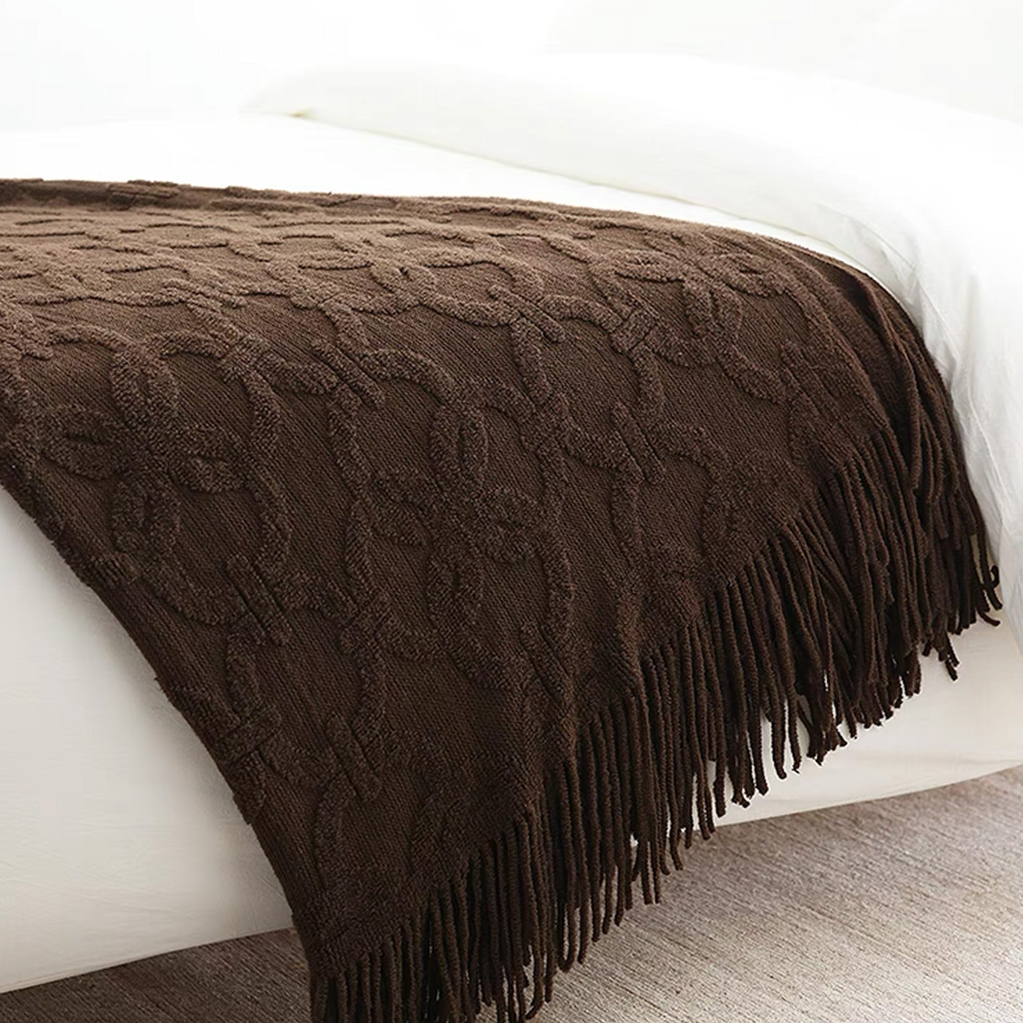 Otul się wyrafinowanym luksusem z naszym Eleganckim Narzutą z Teksturowanymi Frędzlami. Ten pięknie wykonany narzut charakteryzuje się subtelnym, wyrafinowanym wzorem zazębiających się okręgów, dodając głębi i elegancji każdej przestrzeni. Wykonany z wysokiej jakości, miękkich materiałów, zapewnia ciepło i wygodę, a jednocześnie stanowi gustowny element dekoracyjny. Delikatne frędzle dodają mu szykownego charakteru, idealnie nadając się do okrycia sofy, łóżka lub ulubionego fotela.