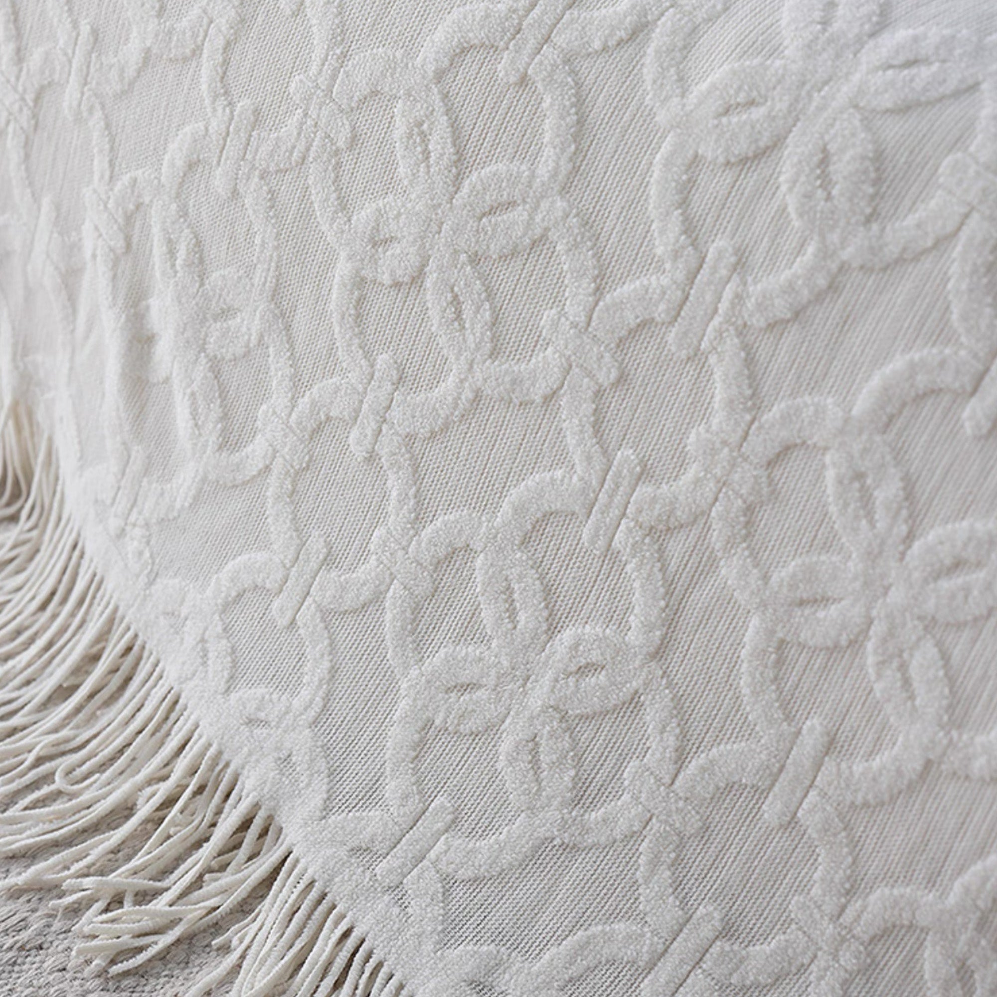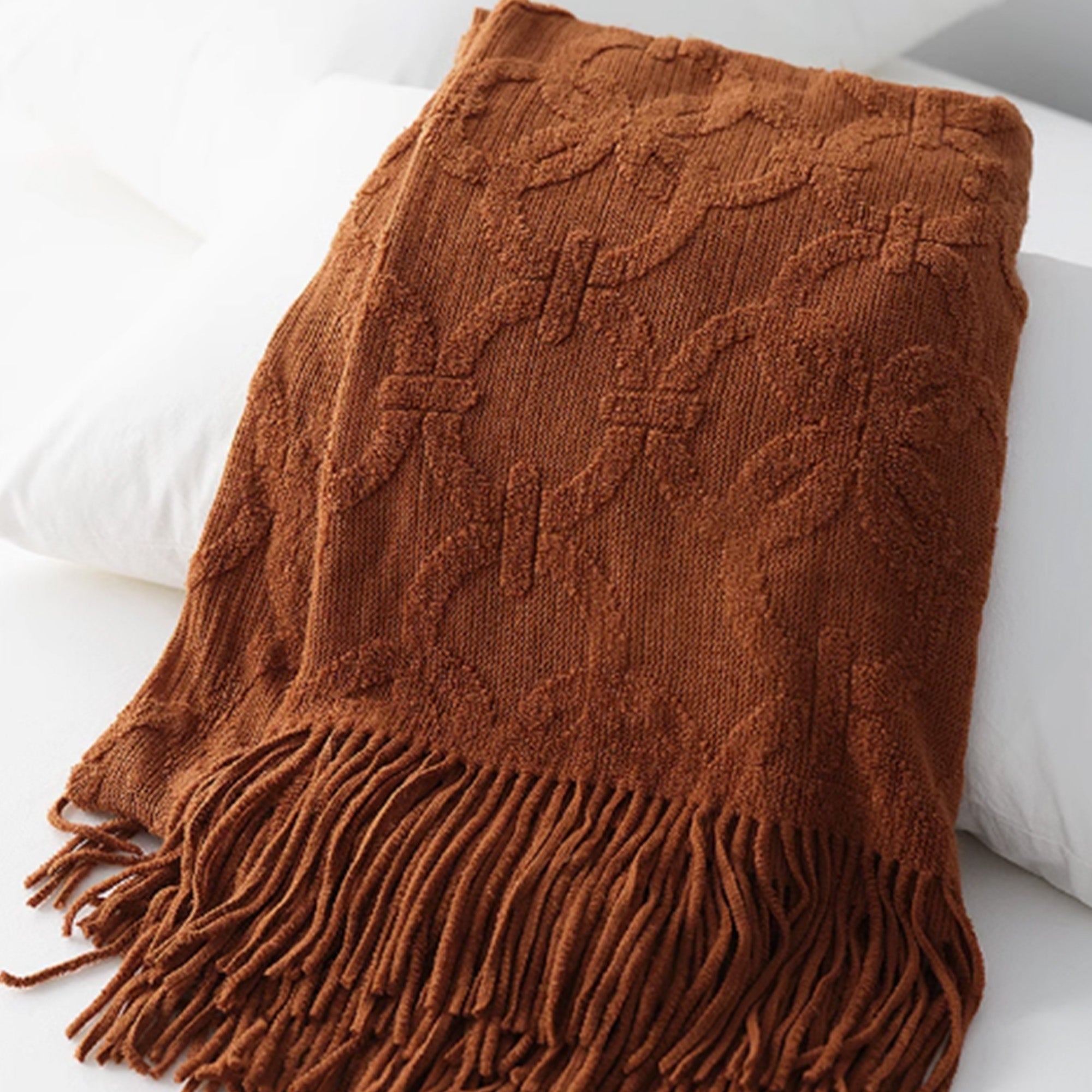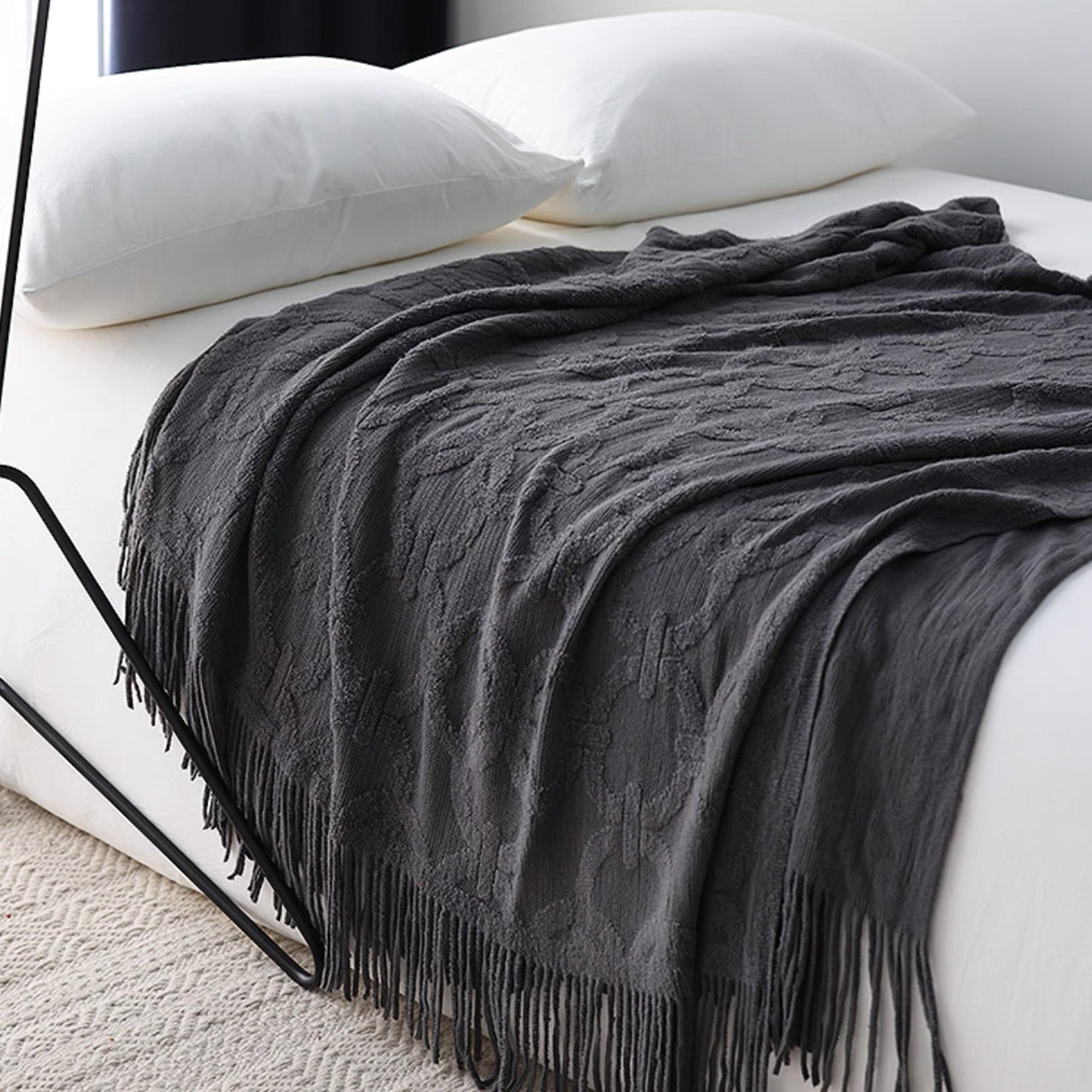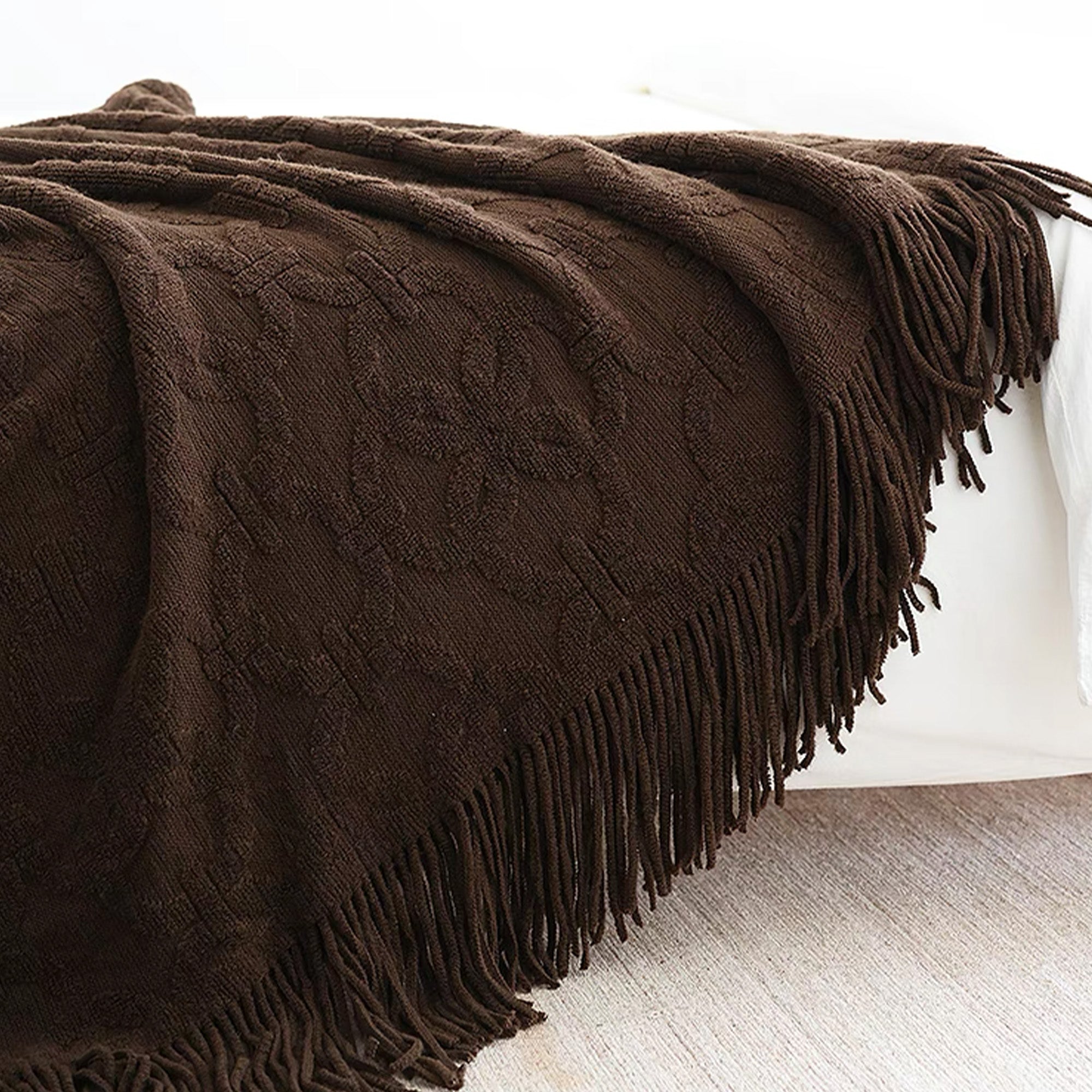 Otul się wyrafinowanym luksusem z naszym Eleganckim Narzutą z Teksturowanymi Frędzlami. Ten pięknie wykonany narzut charakteryzuje się subtelnym, wyrafinowanym wzorem zazębiających się okręgów, dodając głębi i elegancji każdej przestrzeni. Wykonany z wysokiej jakości, miękkich materiałów, zapewnia ciepło i wygodę, a jednocześnie stanowi gustowny element dekoracyjny. Delikatne frędzle dodają mu szykownego charakteru, idealnie nadając się do okrycia sofy, łóżka lub ulubionego fotela.