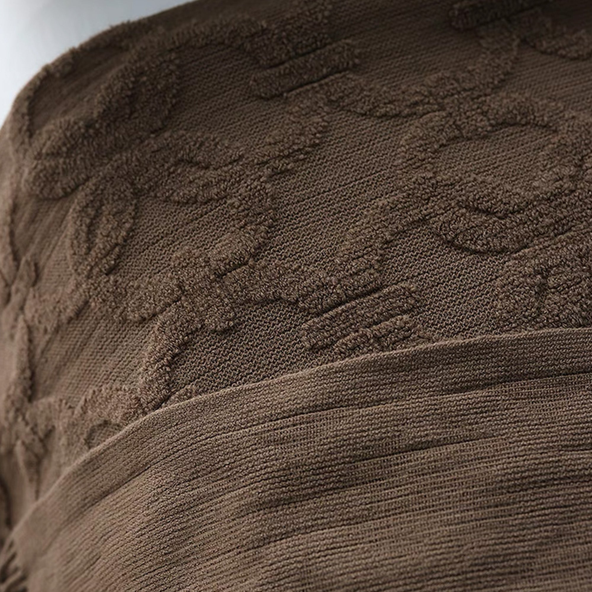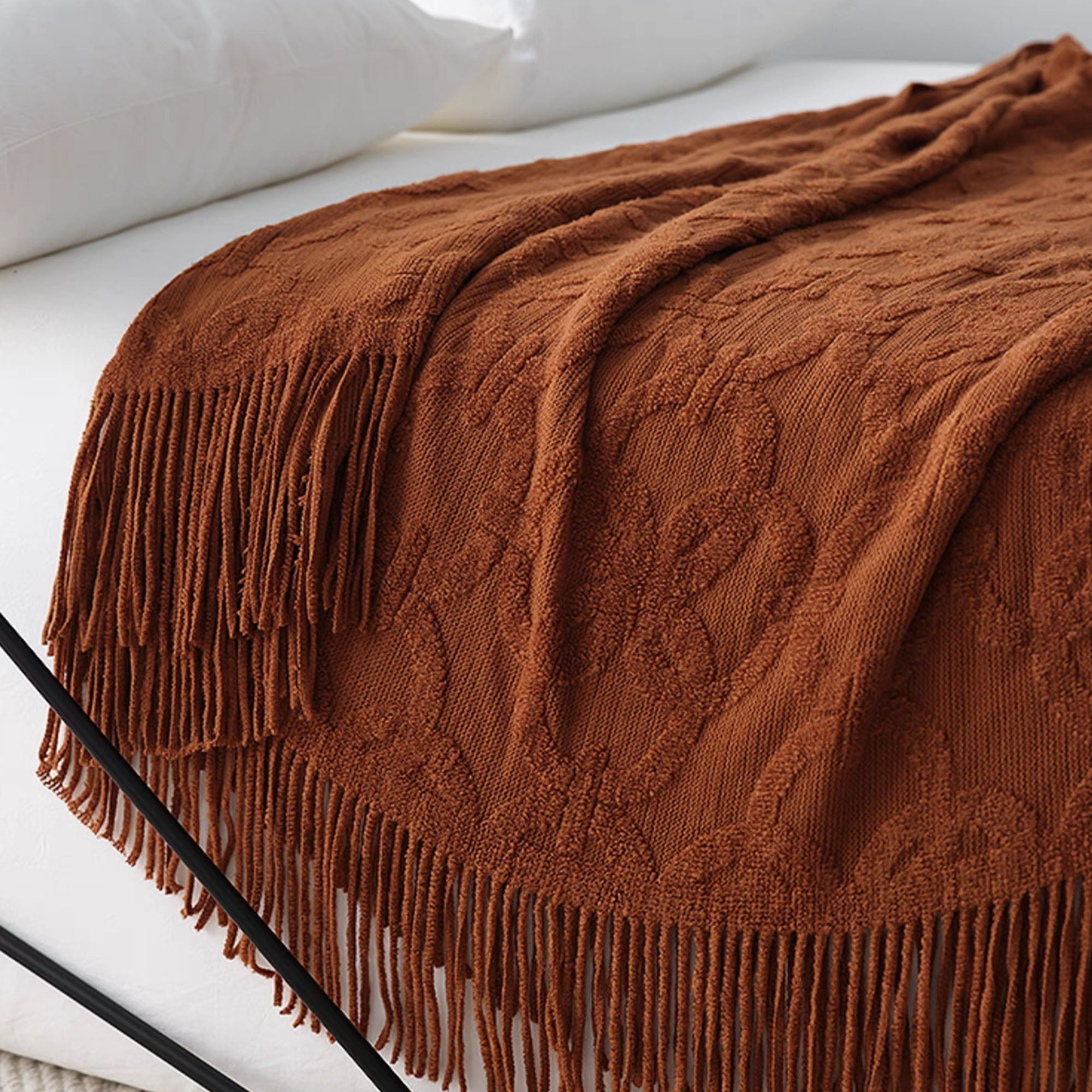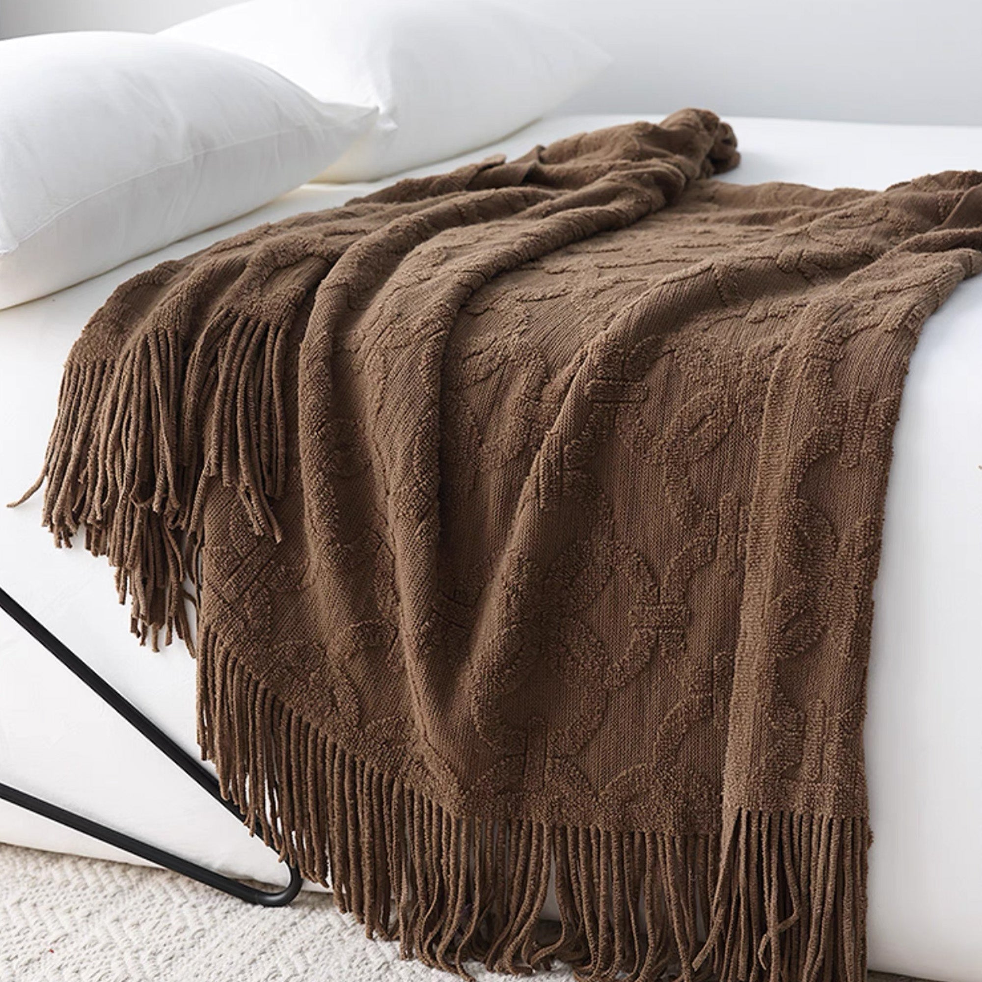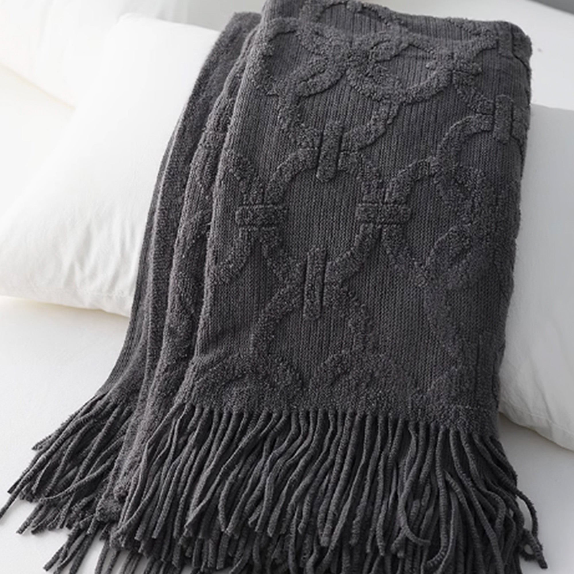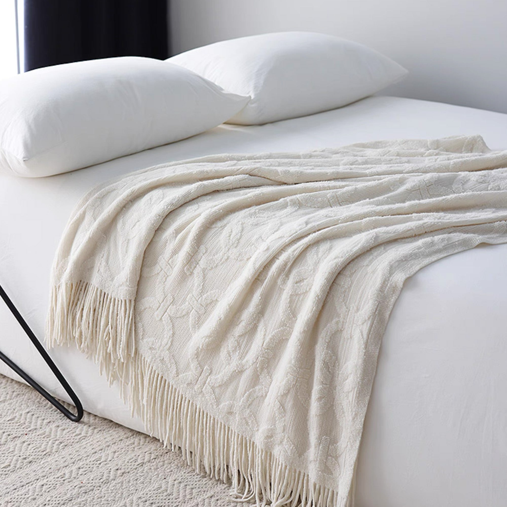 Otul się wyrafinowanym luksusem z naszym Eleganckim Narzutą z Teksturowanymi Frędzlami. Ten pięknie wykonany narzut charakteryzuje się subtelnym, wyrafinowanym wzorem zazębiających się okręgów, dodając głębi i elegancji każdej przestrzeni. Wykonany z wysokiej jakości, miękkich materiałów, zapewnia ciepło i wygodę, a jednocześnie stanowi gustowny element dekoracyjny. Delikatne frędzle dodają mu szykownego charakteru, idealnie nadając się do okrycia sofy, łóżka lub ulubionego fotela.