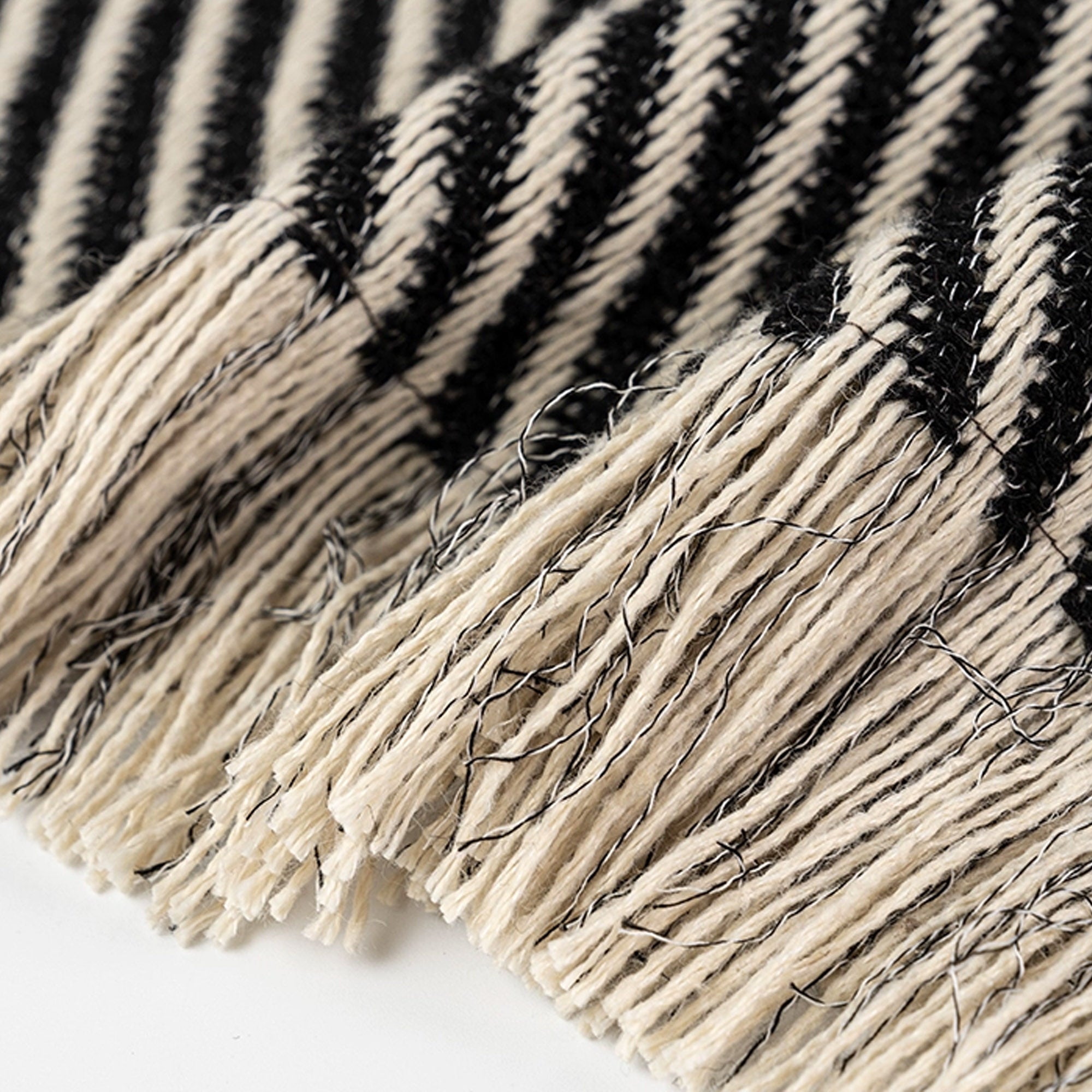 Odmień swoją przestrzeń dzięki naszemu miękkiemu kocowi z frędzlami, który dzięki swojej wyrazistej czarno-białej fakturze dopełni każde otoczenie. Ten koc jest ciepły, miękki i przewiewny, zapewniając wyjątkowy komfort, a jednocześnie lekki i trwały. Stylowe frędzle dodają mu elegancji, podnosząc jego walory estetyczne.