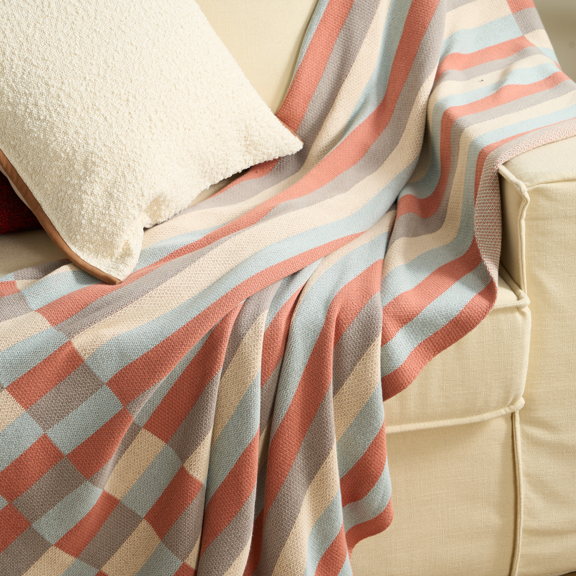 Podnieś poziom relaksu dzięki naszemu kocowi Funky Stripes! Przygotuj się na nowy poziom komfortu dzięki temu wszechstronnemu klejnotowi – nie tylko na pokaz, ale i jako idealny towarzysz przytulania podczas maratonów filmowych i leniwych niedziel. Wykonany z ultramiękkiego włókna akrylowego, otula Cię niczym obłok przytulności. A więc śmiało, odpręż się i pozwól, by dobra zabawa trwała – szczęście jest na wyciągnięcie ręki!