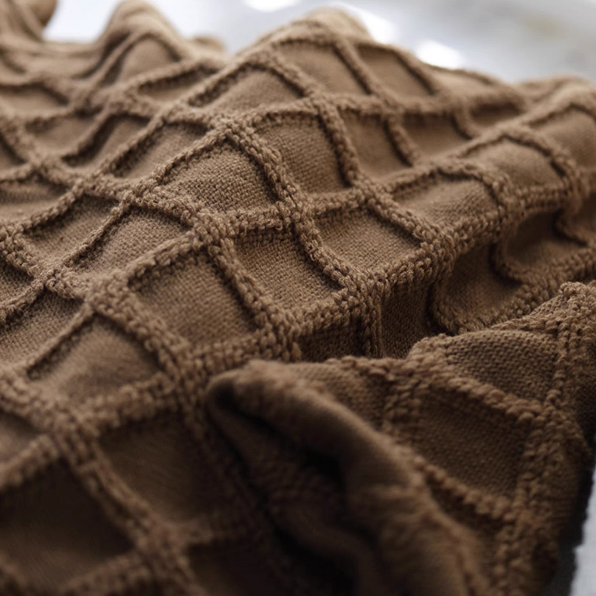 •Elegancki, dzianinowy wzór w romby dodaje faktury i stylu.