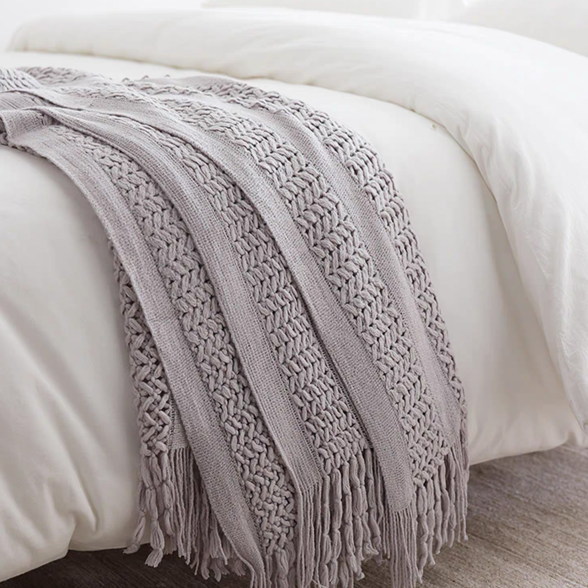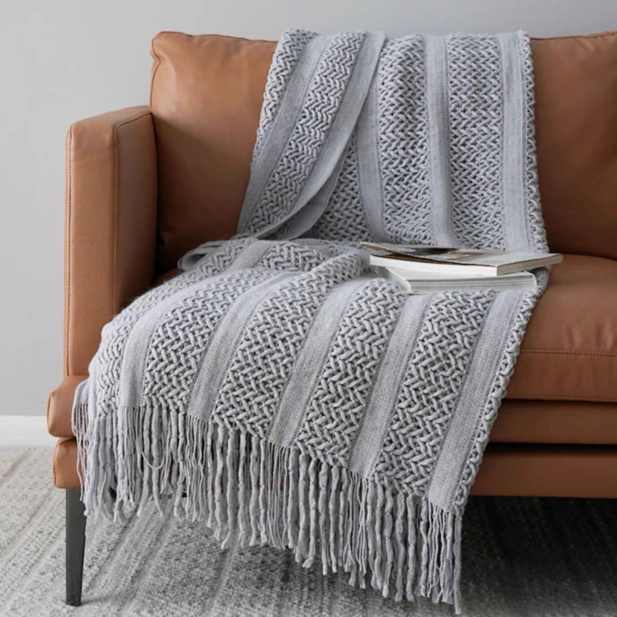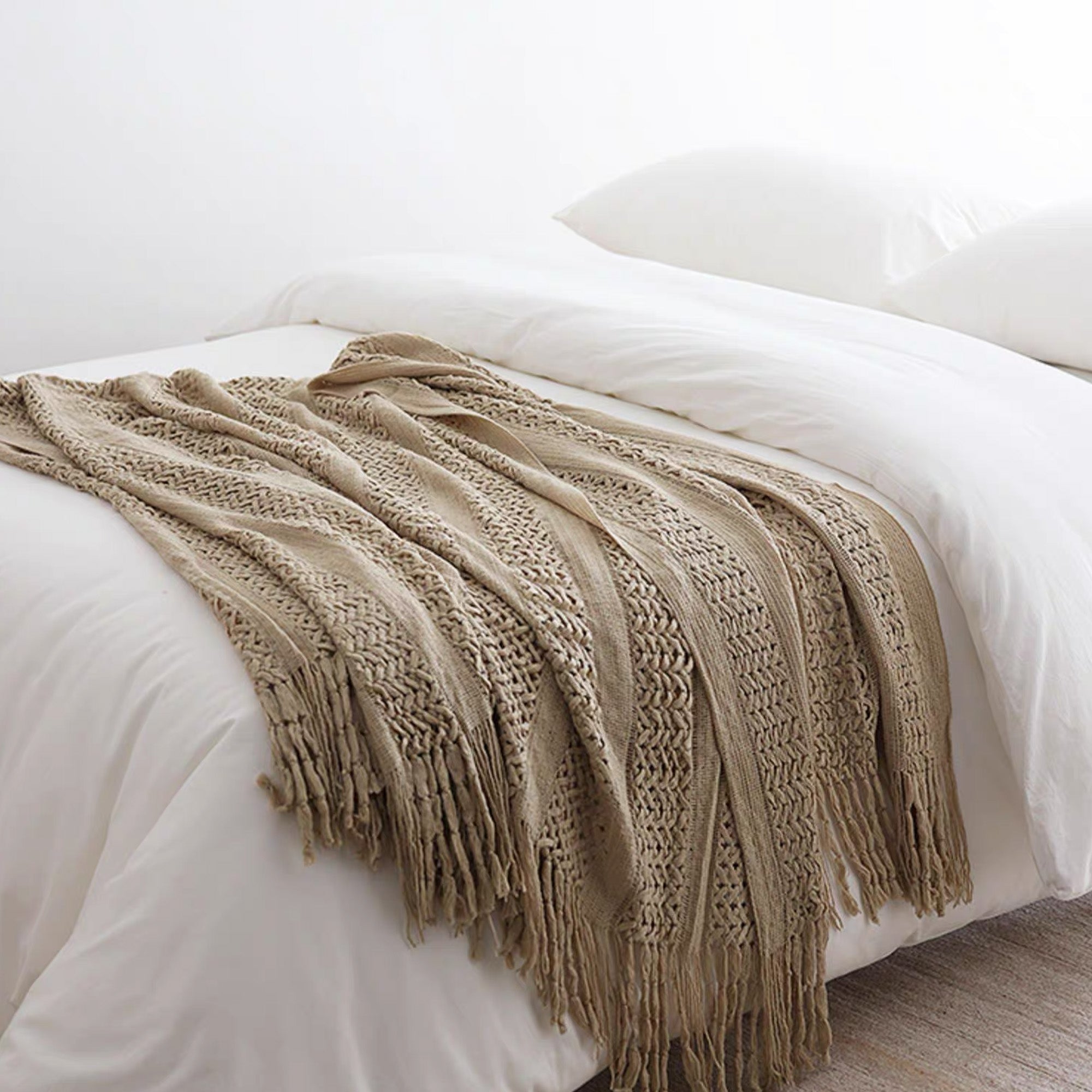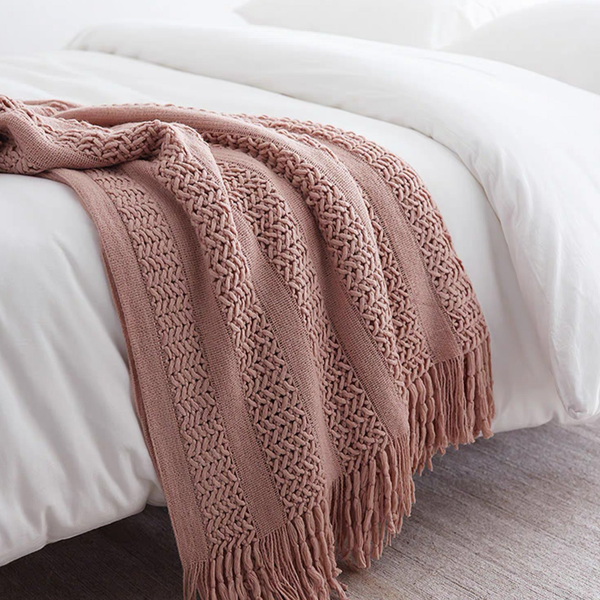 •Detale z frędzlami: Ręcznie wiązane frędzle nadają stylowy, rzemieślniczy charakter.