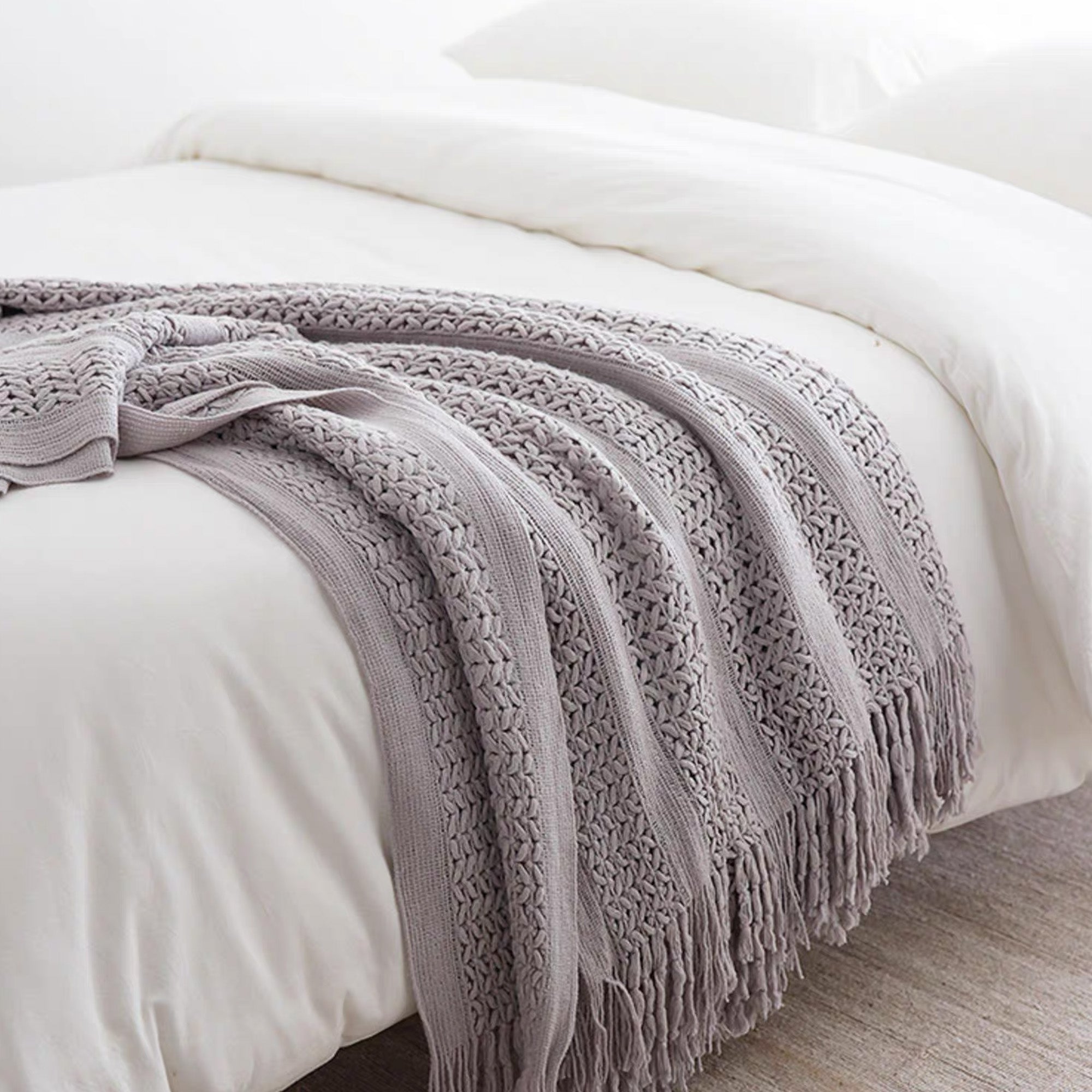 Narzuta z dzianiny o otwartym splocie