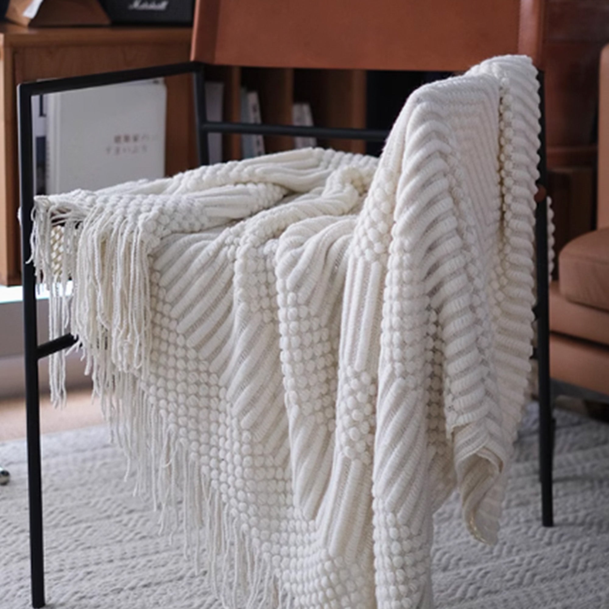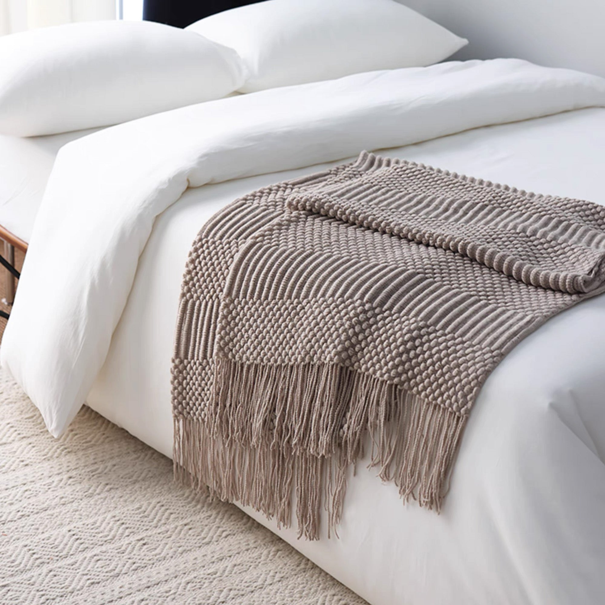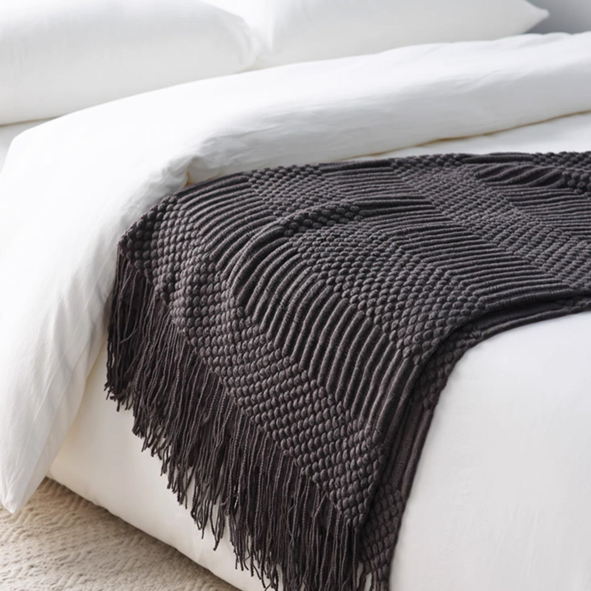•Frędzle na krawędziach nadają swobodny, inspirowany stylem boho charakter.
