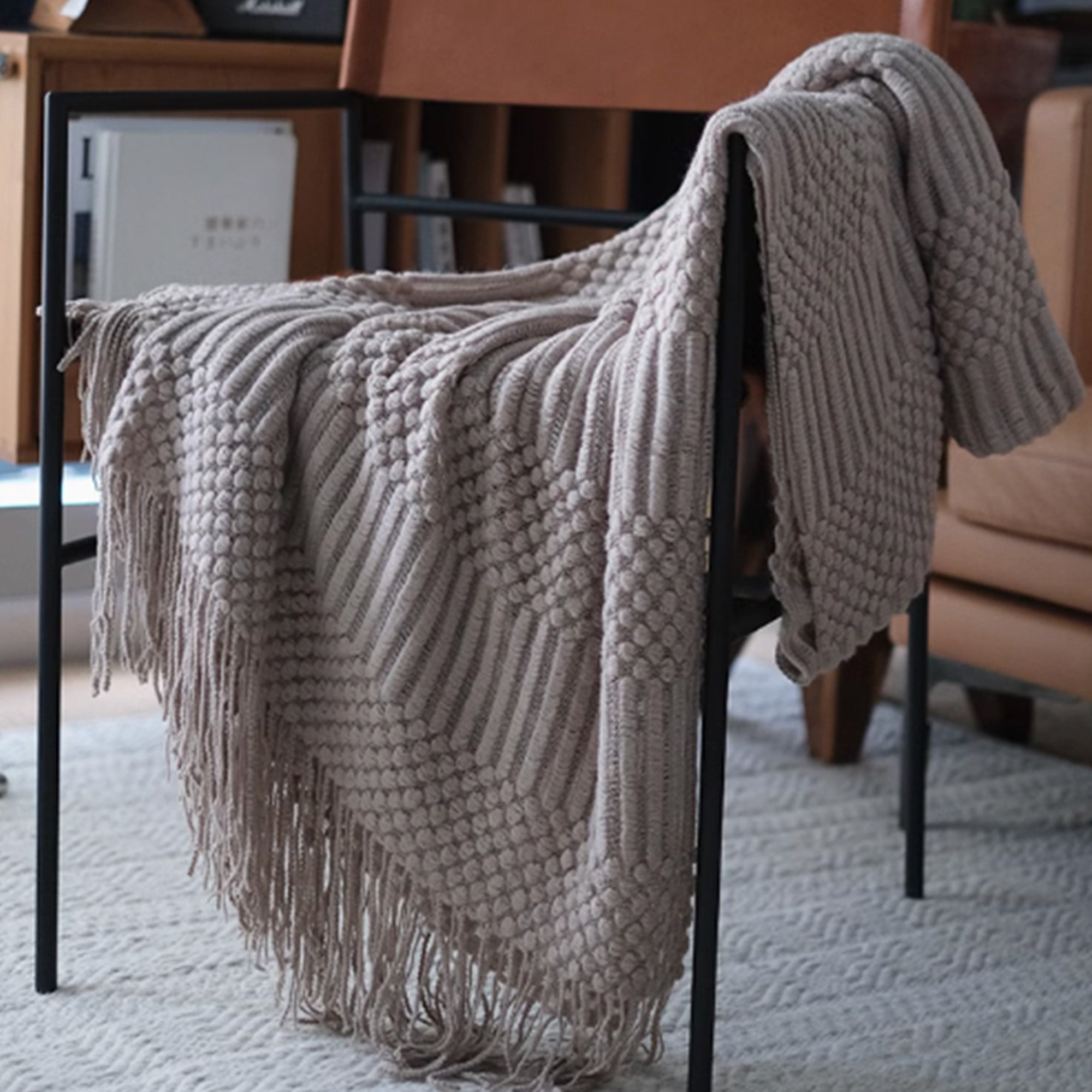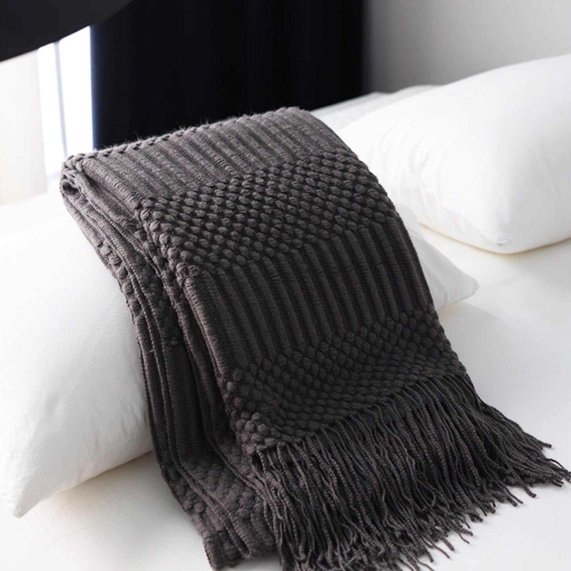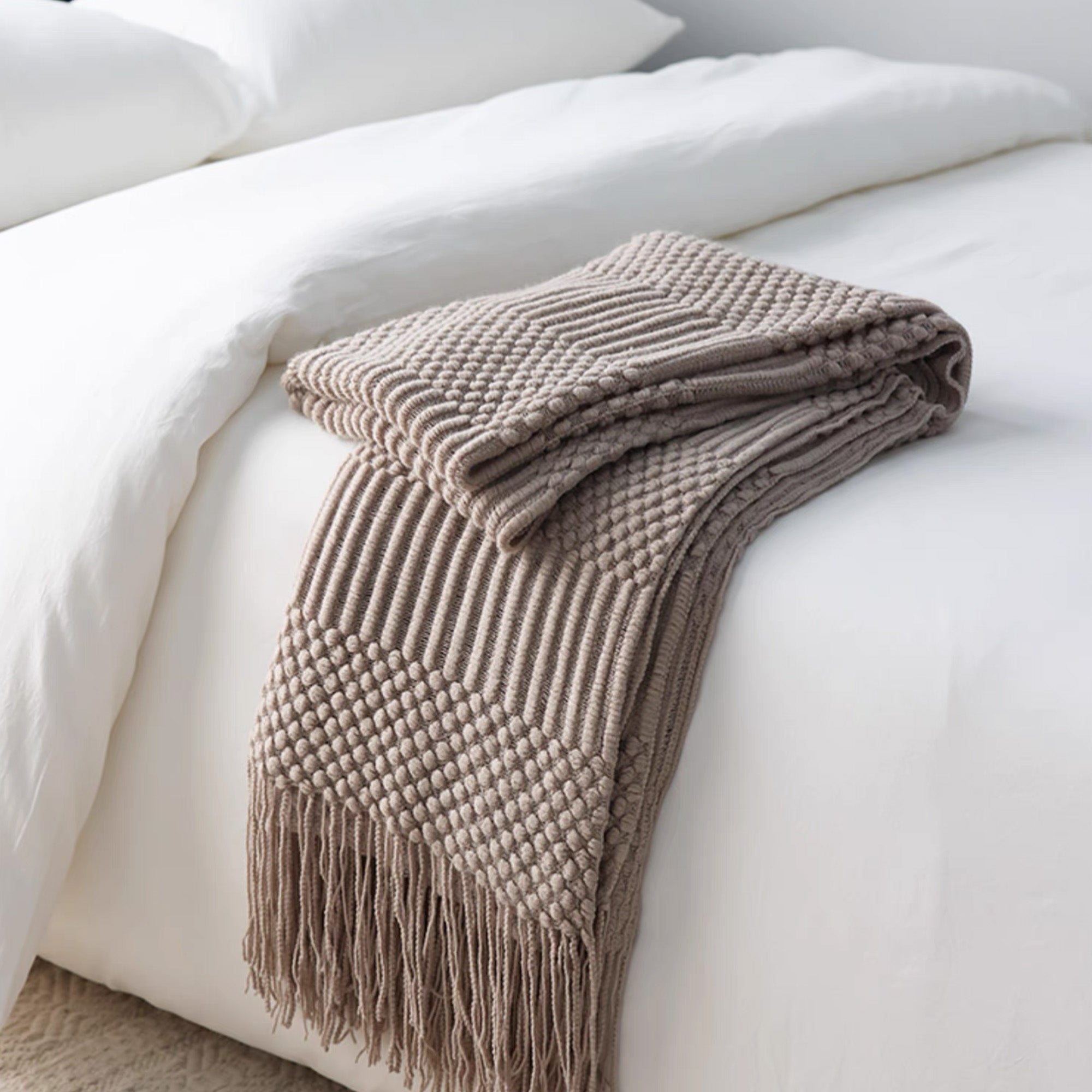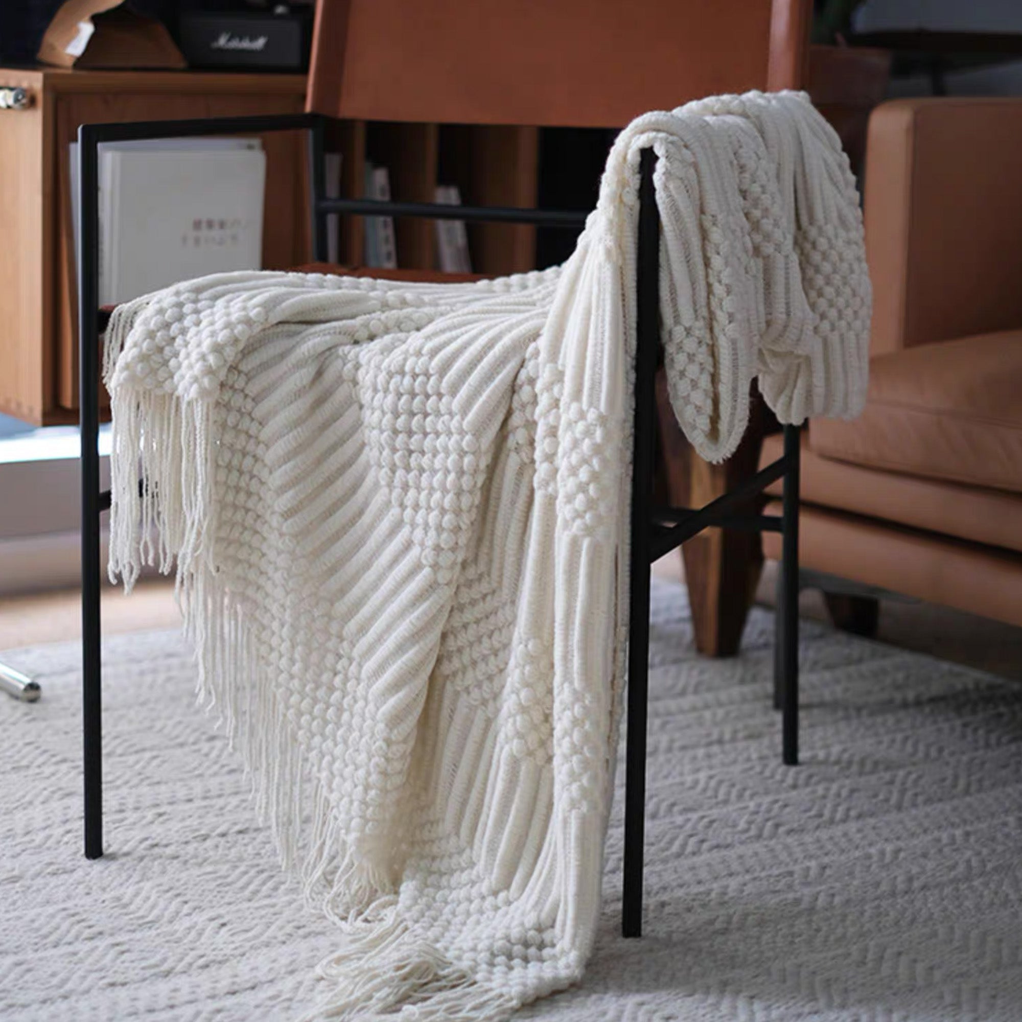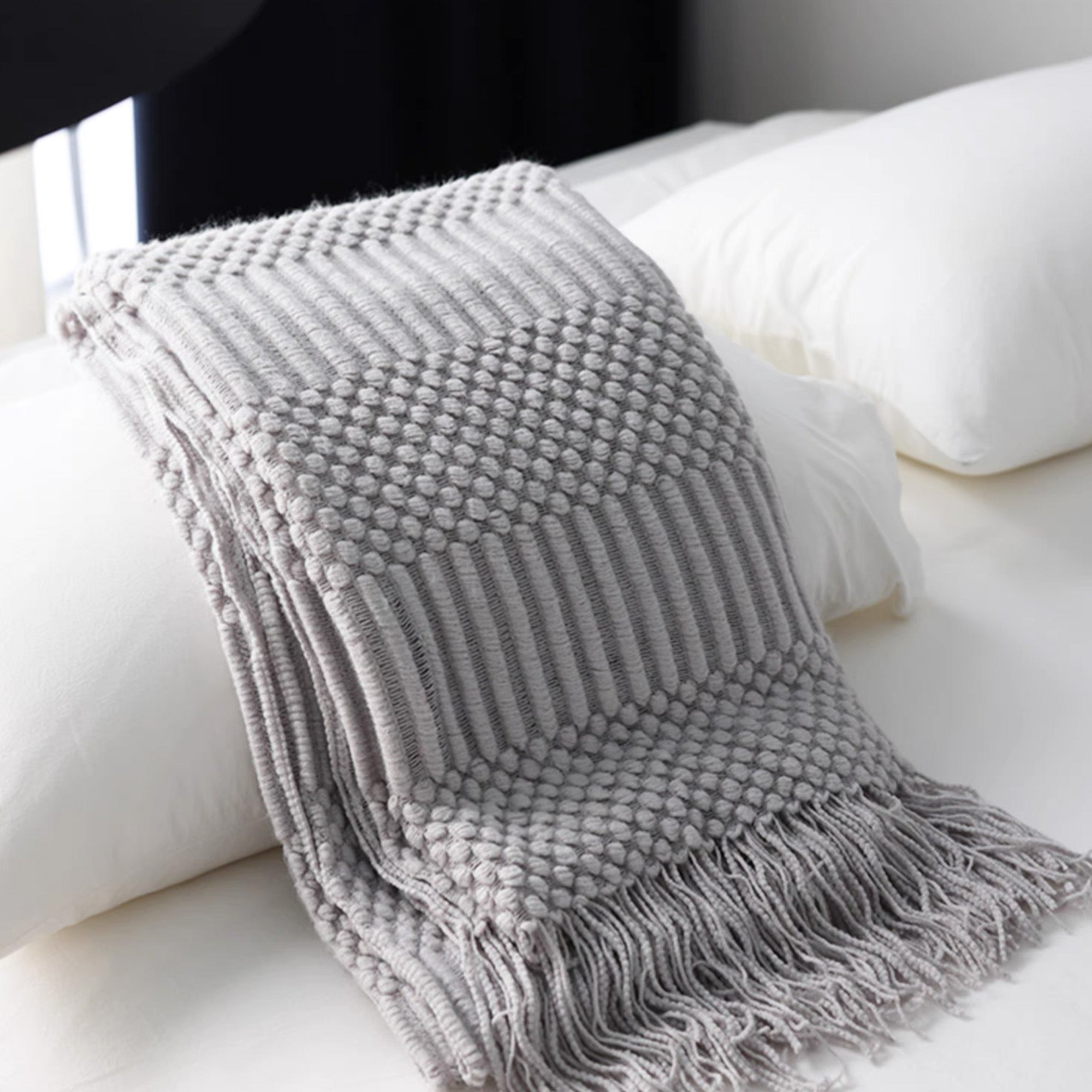 Dodaj odrobinę boho uroku do swojej przestrzeni dzięki naszemu narzutowi z frędzlami. Ten przytulny koc, wykonany z misternego, geometrycznego splotu o bogatym, teksturowanym wykończeniu, idealnie nadaje się do otulenia lub narzucenia na ulubiony fotel, tworząc stylowy akcent. Delikatne frędzle na brzegach podkreślają jego swobodną elegancję, dzięki czemu idealnie nadaje się do stworzenia ciepłej, przytulnej atmosfery w każdym pomieszczeniu.