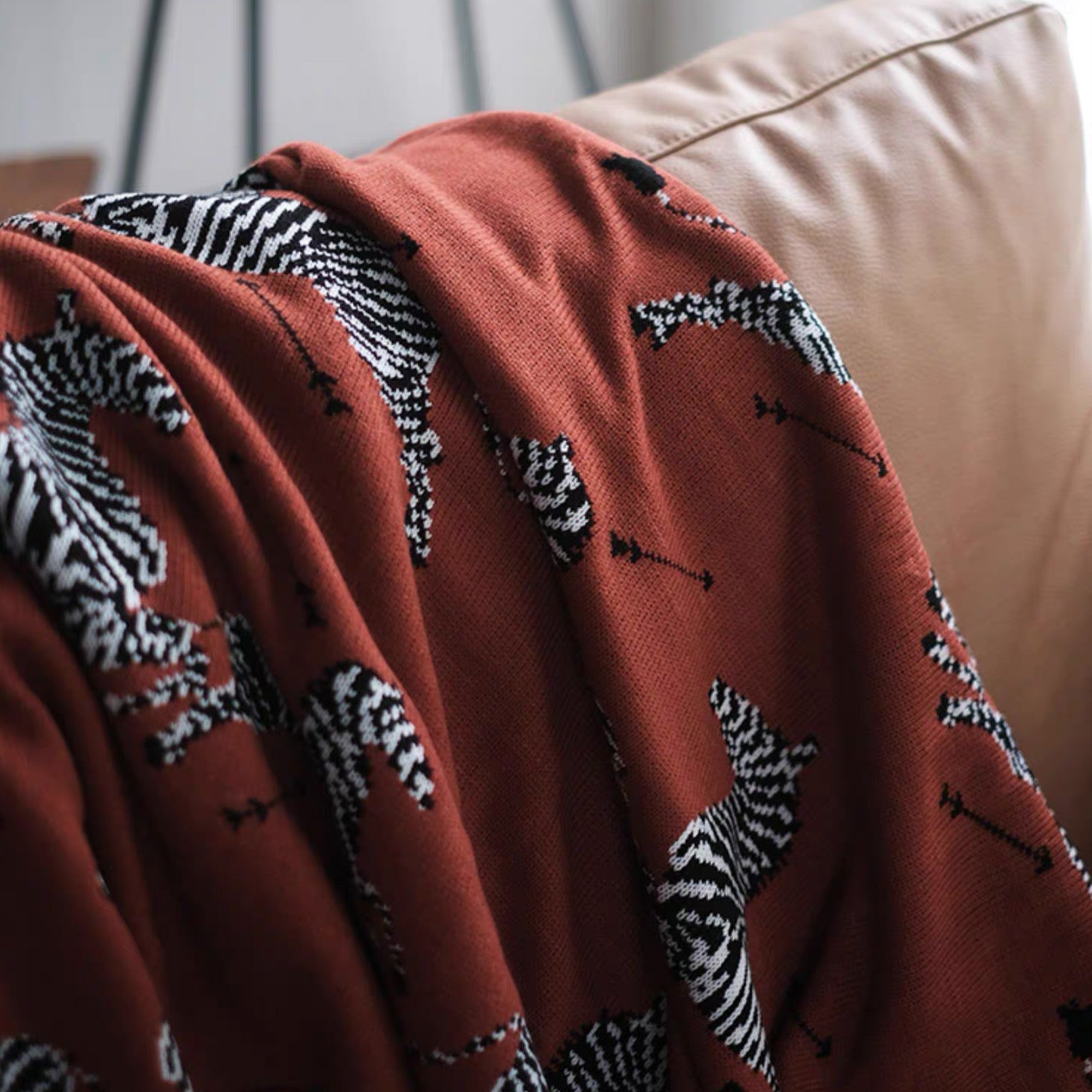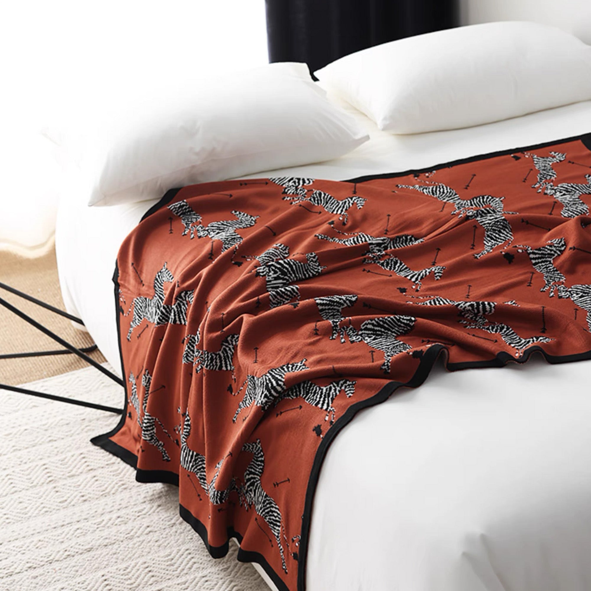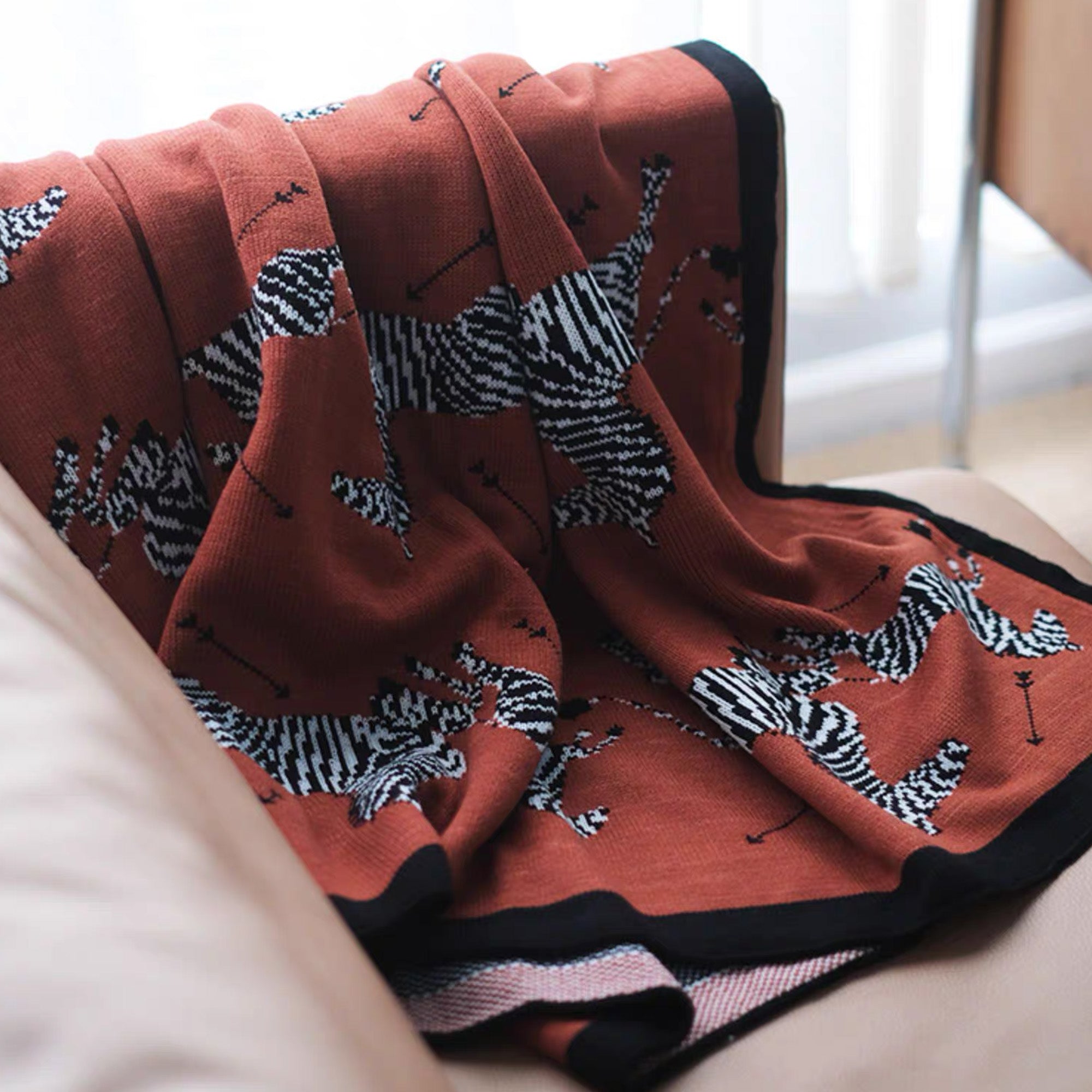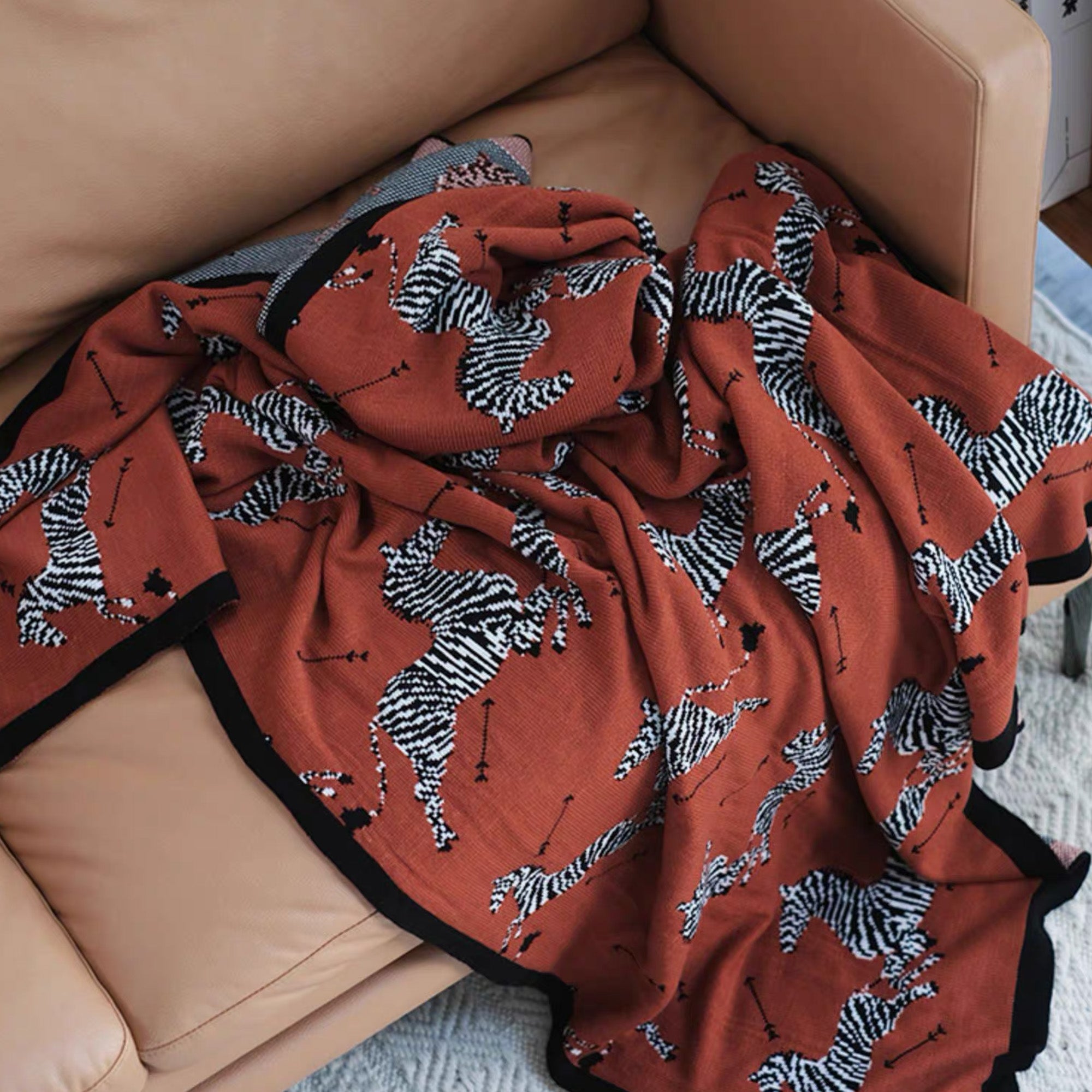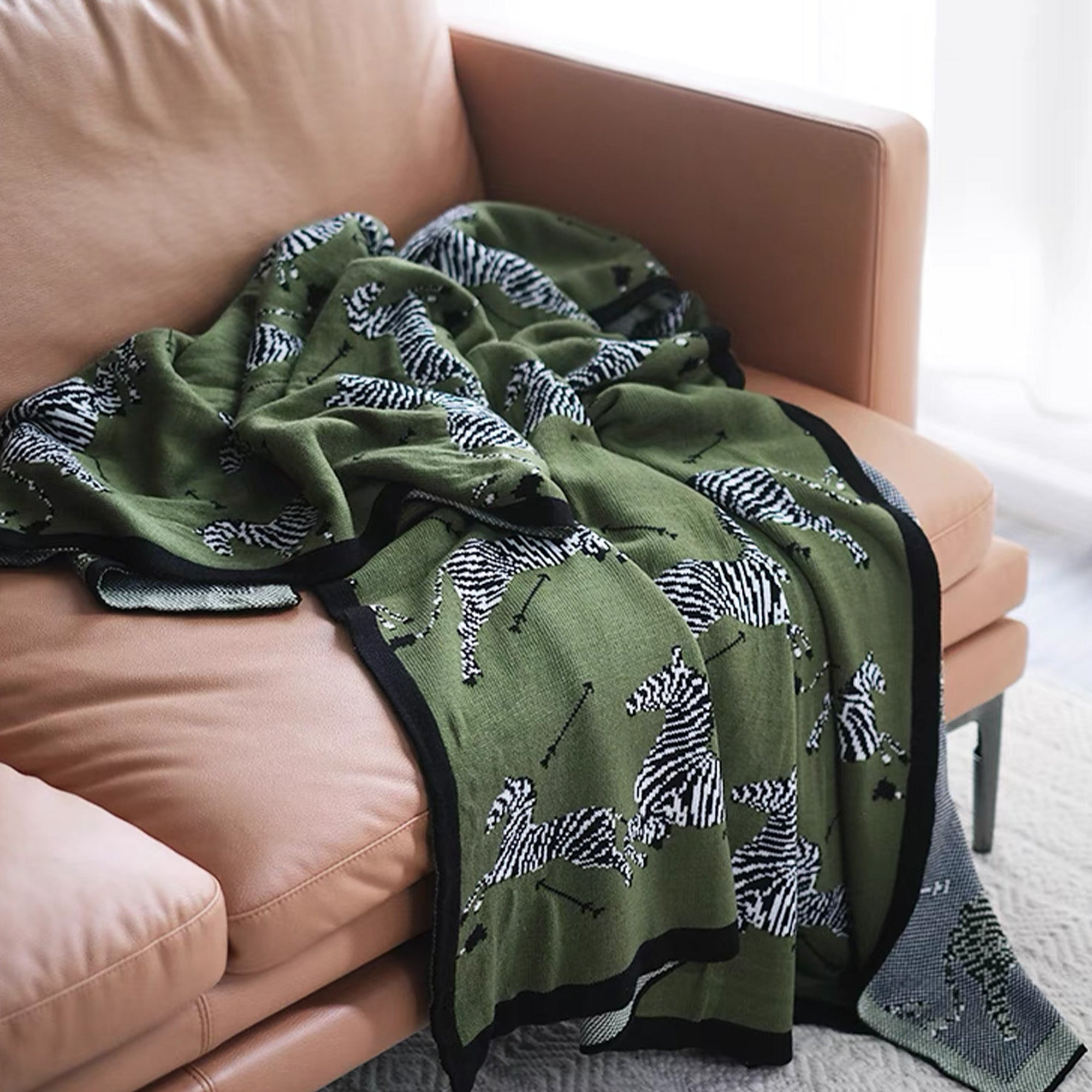 Wprowadź odrobinę dzikiej elegancji do swojego domu z naszym kocem Zebra Safari. Z zabawnym wzorem zebry na soczyście zielonym tle, ten narzut idealnie nada każdemu wnętrzu niepowtarzalny, awangardowy charakter. Miękka dzianina zapewnia ciepło i wygodę, a wyrazisty wzór sprawia, że będzie przyciągającym wzrok akcentem na kanapach, fotelach i łóżkach.