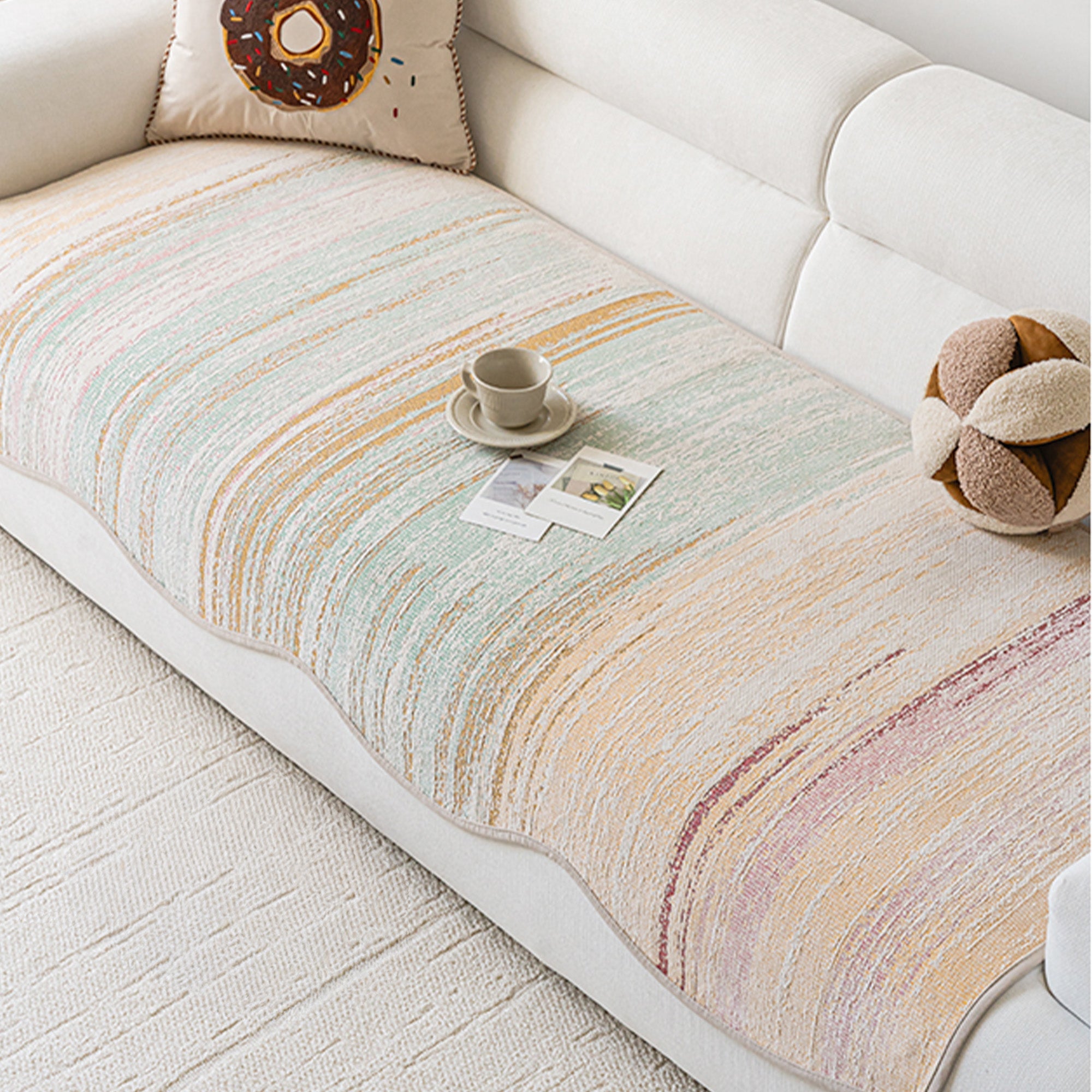 Wprowadź ponadczasowy, artystyczny akcent i przytulny komfort do swojego domu dzięki naszemu odpornemu na zarysowania pokrowcowi na sofę Abstract Breeze Chenille. Zaprojektowany z płynnym, abstrakcyjnym wzorem w delikatnych, nowoczesnych odcieniach, pokrowiec ten wnosi elegancję i kreatywność do Twojej przestrzeni życiowej. Wykonany z wytrzymałej, przyjaznej zwierzętom tkaniny szenilowej, nie tylko upiększy wystrój, ale także zapewni długotrwałą ochronę przed codziennym zużyciem, zarysowaniami i sierścią.