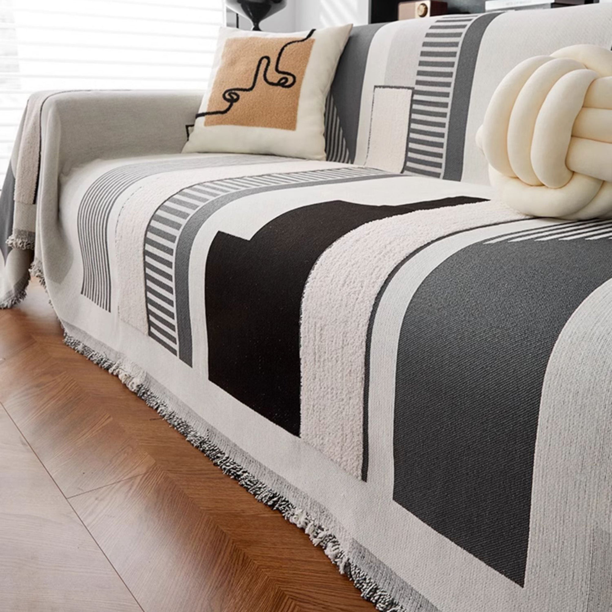 Odmień swoją przestrzeń życiową dzięki pokrowcowi na sofę Contemporary Art Deco – idealnemu połączeniu nowoczesnego stylu i funkcjonalnego designu. Wyraziste geometryczne wzory w połączeniu z ziemistymi barwami sprawiają, że pokrowiec z łatwością podkreśli piękno Twojej sofy, chroniąc ją jednocześnie przed codziennym zużyciem. Niezależnie od tego, czy relaksujesz się samotnie, czy organizujesz kameralne spotkanie, ten narzuta doda Twojemu domowi wyrazistego charakteru i komfortu.