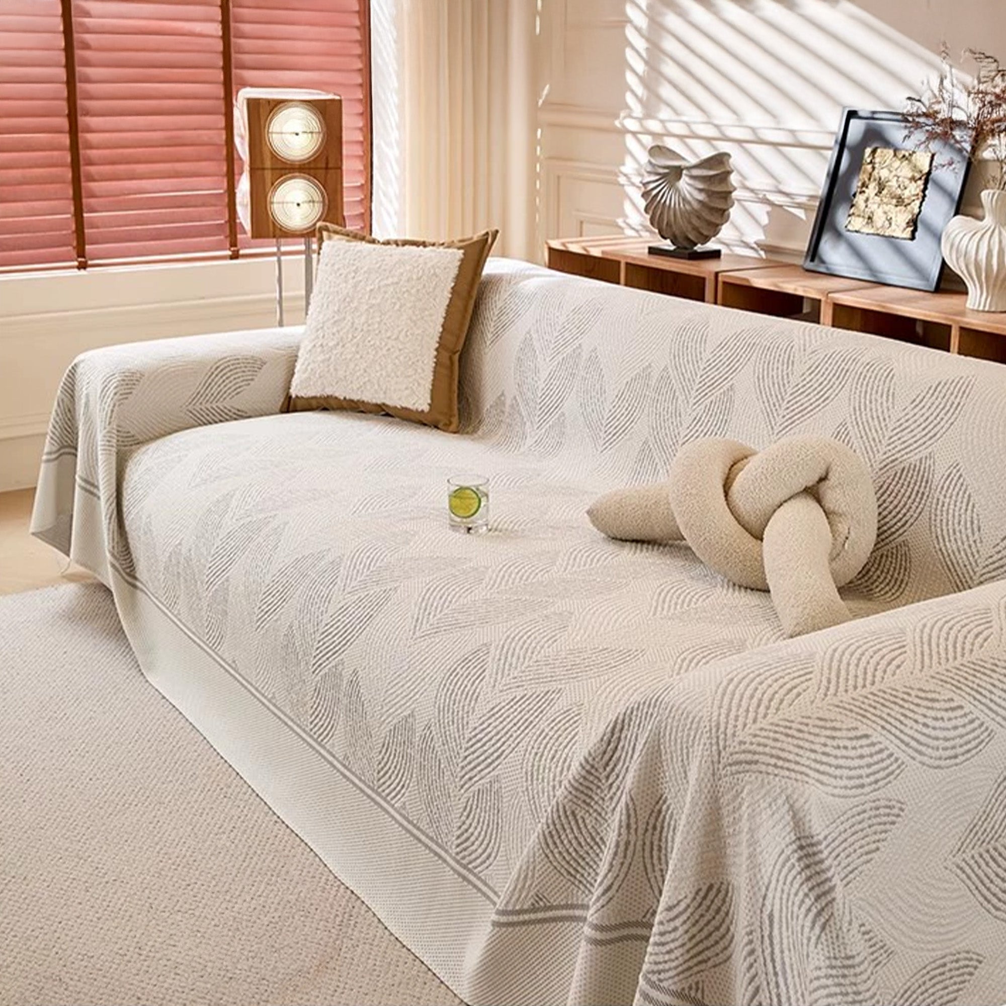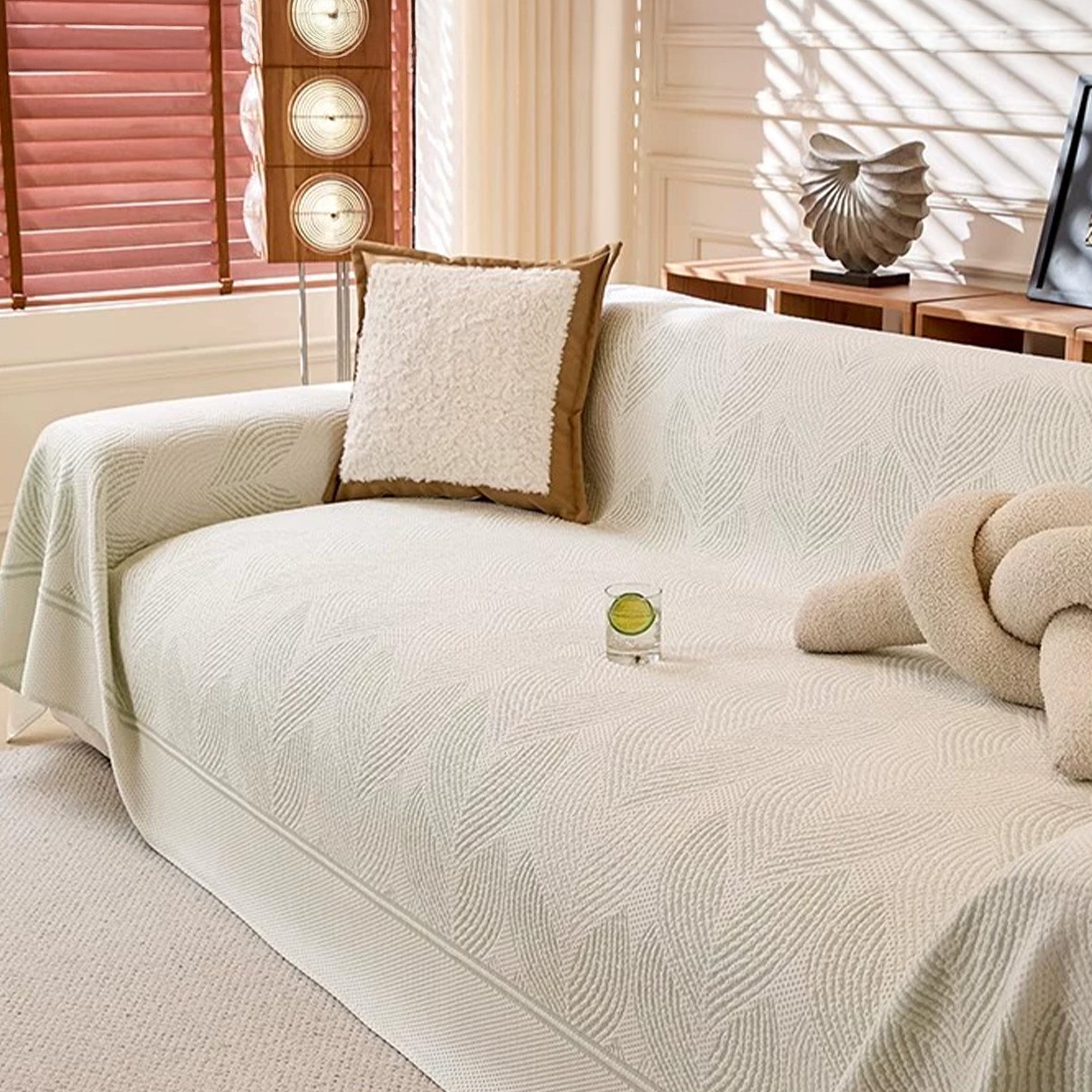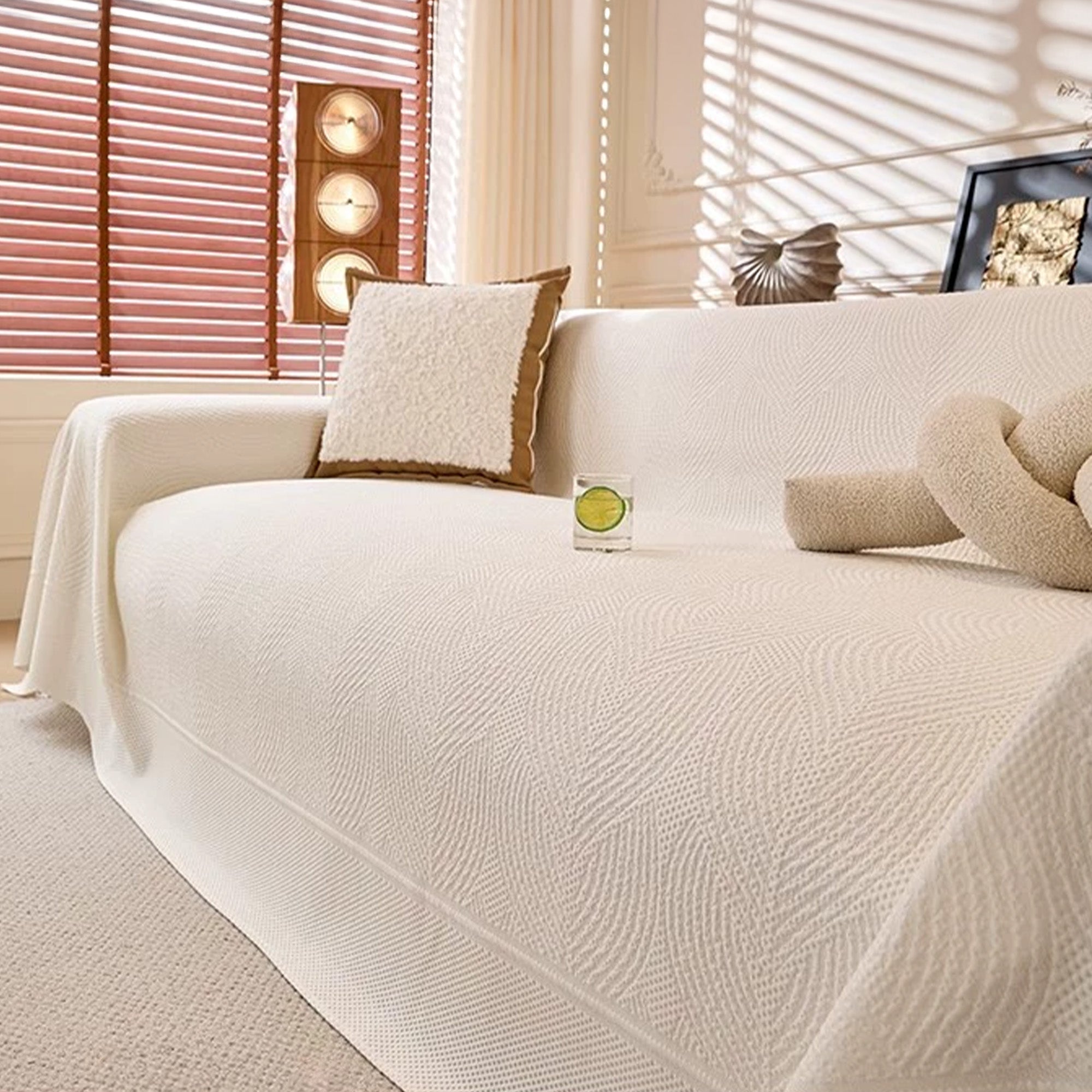 Chłodzący, spokojny, teksturowany pokrowiec na sofę