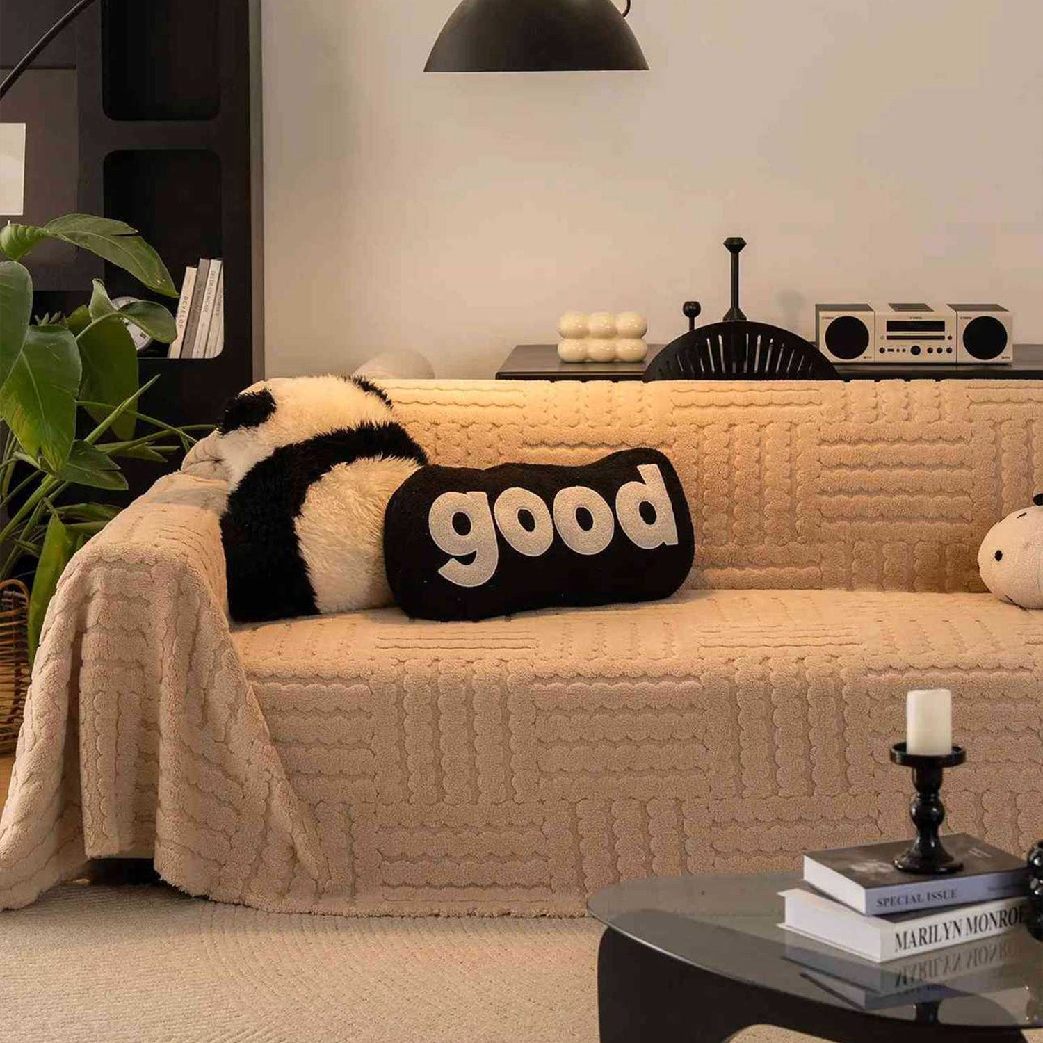 Przytulny, pluszowy pokrowiec na sofę, odporny na plamy
