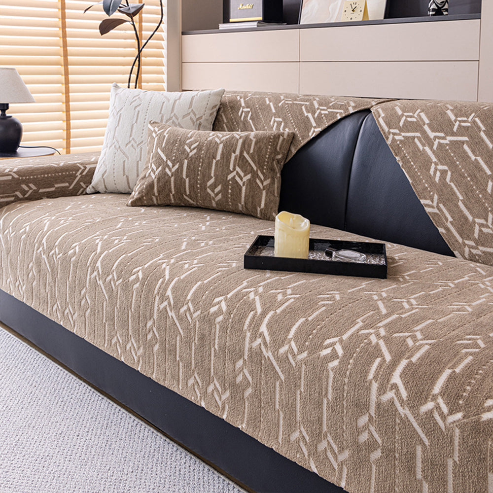 Pokrowiec na sofę z tkaniny szenilowej o splocie liniowym, antypoślizgowy
