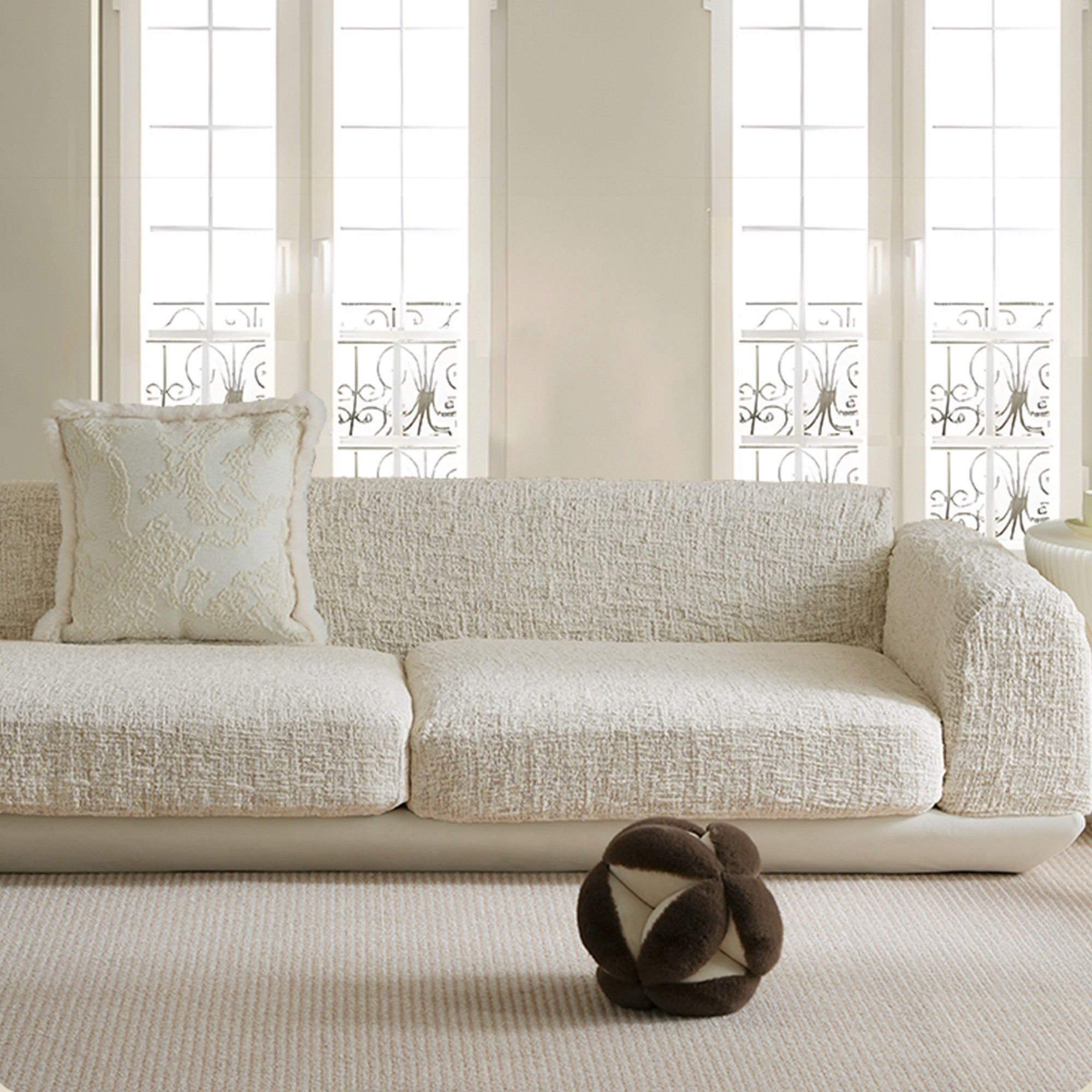 Odśwież swoją przestrzeń życiową dzięki naszemu luksusowemu, rzeźbionemu pokrowcowi na sofę Guard Stretch w kolorze kości słoniowej. Wykonany z myślą o estetyce i wytrzymałości, ten żakardowy pokrowiec o wysokiej gęstości otuli całą Twoją sofę luksusową miękkością, gęstą fakturą i niezrównaną przyczepnością. Niezależnie od tego, czy wypoczywasz, skaczesz, czy mieszkasz z energicznymi zwierzętami, ten pokrowiec pozostanie na swoim miejscu – bez ślizgania się i bezproblemowo.