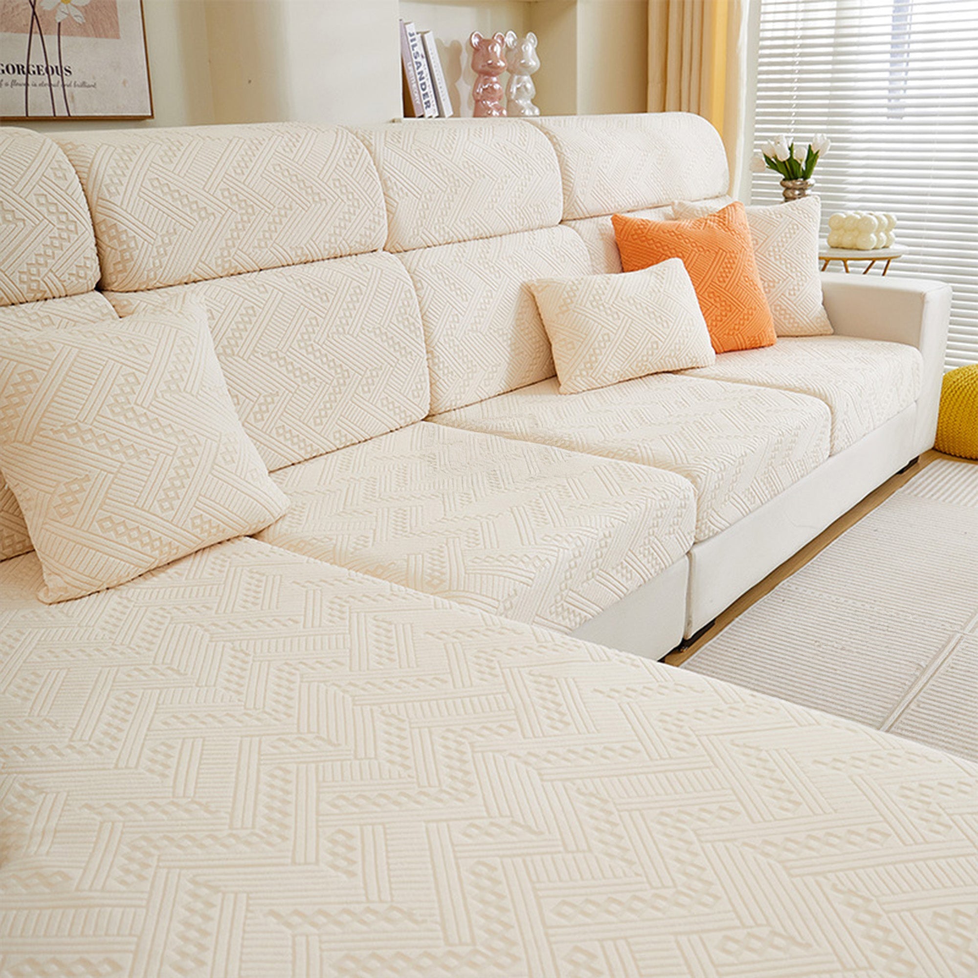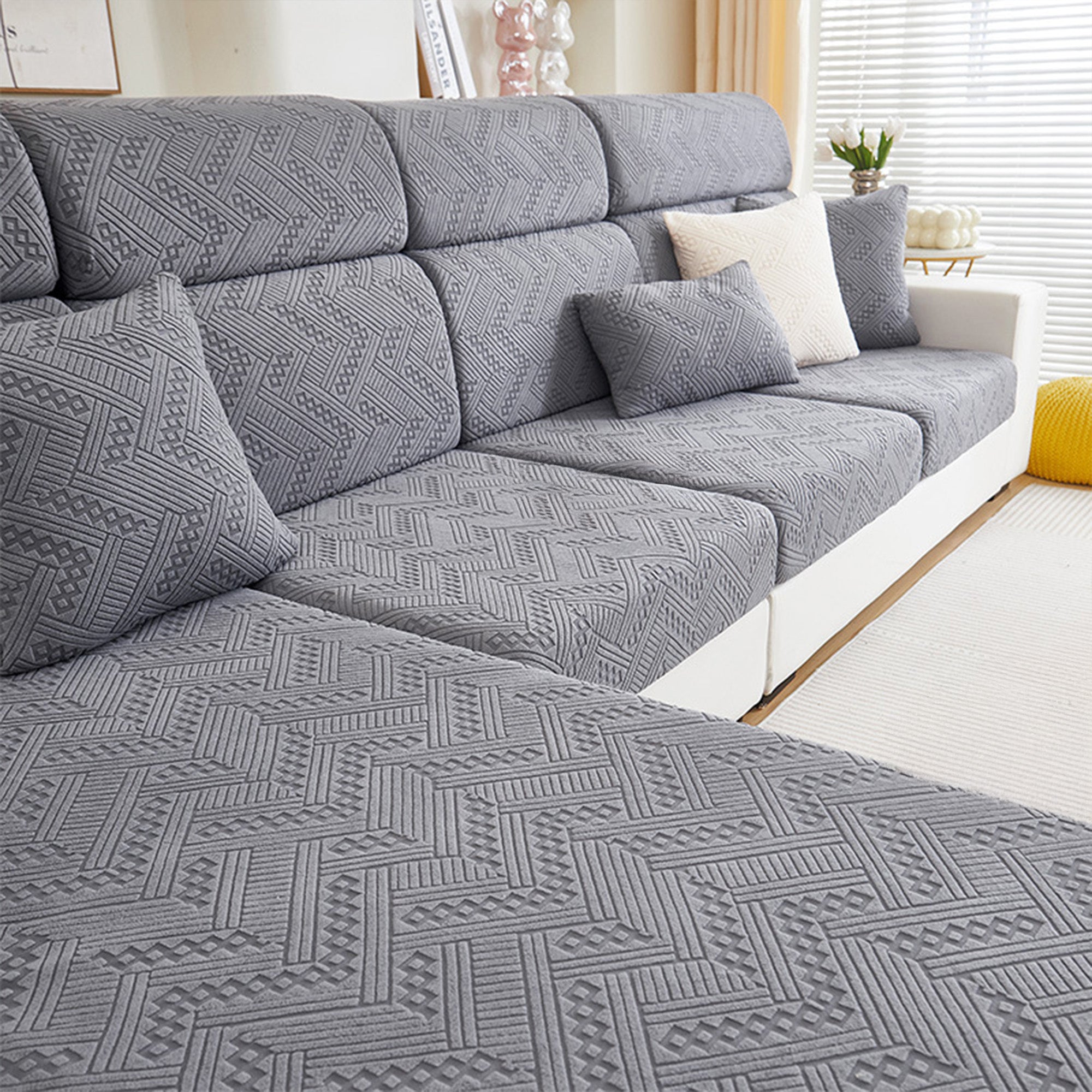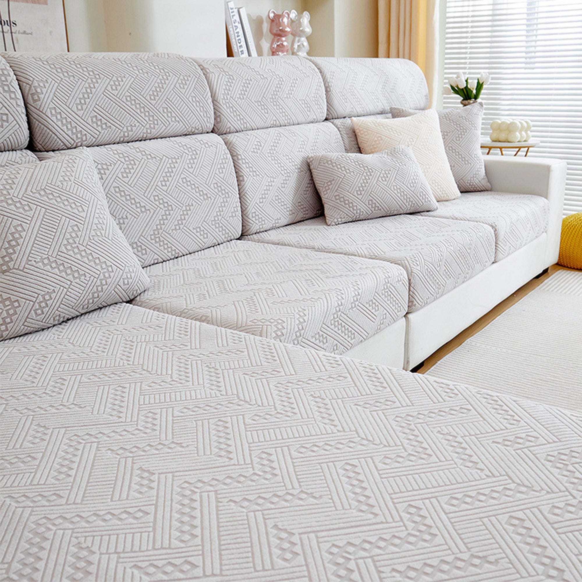 Elastyczny pokrowiec na sofę z żakardu, na cały sezon – całkowicie otulający, antypoślizgowy i odporny na zarysowania