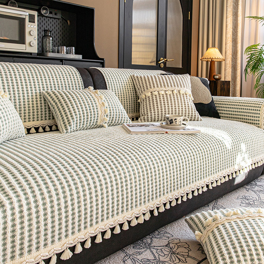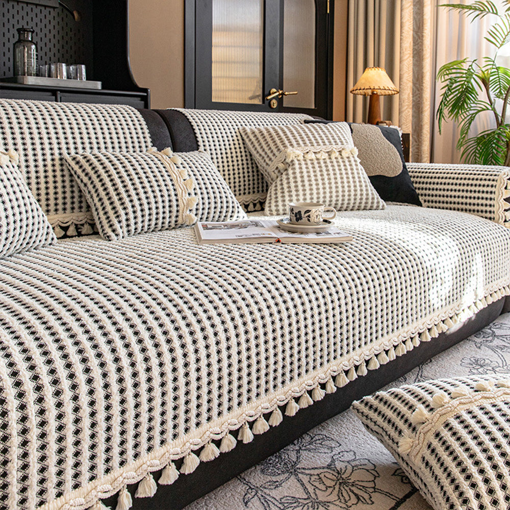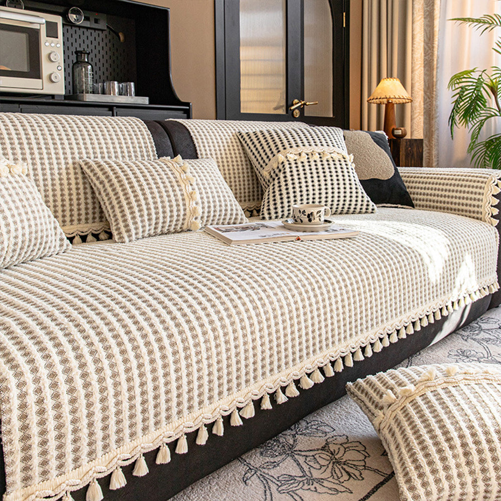 Wyrafinowany pokrowiec na sofę z frędzlami z siatki Chenille antypoślizgowy