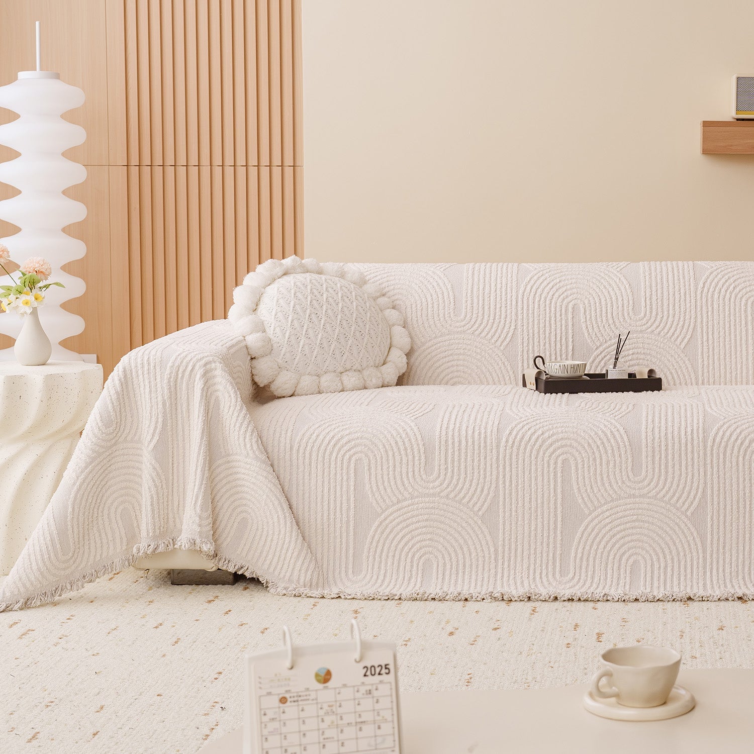 Wprowadź do swojego salonu wyrafinowaną elegancję i przytulne ciepło dzięki naszemu miękkiemu, odpornemu na zarysowania pokrowcowi na sofę Soft Arc Plush. Dzięki artystycznej, pikowanej fakturze w kształcie łuku, pokrowiec ten z łatwością wzbogaci wystrój wnętrza, dodając mu nowoczesnego, a zarazem kojącego charakteru. Zaprojektowany na jesień i zimę, oferuje idealne połączenie miękkości, trwałości i codziennej praktyczności. Wykonany z wysokiej jakości pluszowej tkaniny inspirowanej szenilą, jest niezwykle miękki w dotyku, a jednocześnie odporny na zarysowania, plamy i zużycie – idealny do domów ze zwierzętami lub dziećmi. Teksturowana powierzchnia dodaje głębi i wyrafinowania, a frędzle na krawędzi dodają mu rzemieślniczego uroku. Pokrowiec można prać w pralce, zapewniając długotrwały komfort i łatwą konserwację.