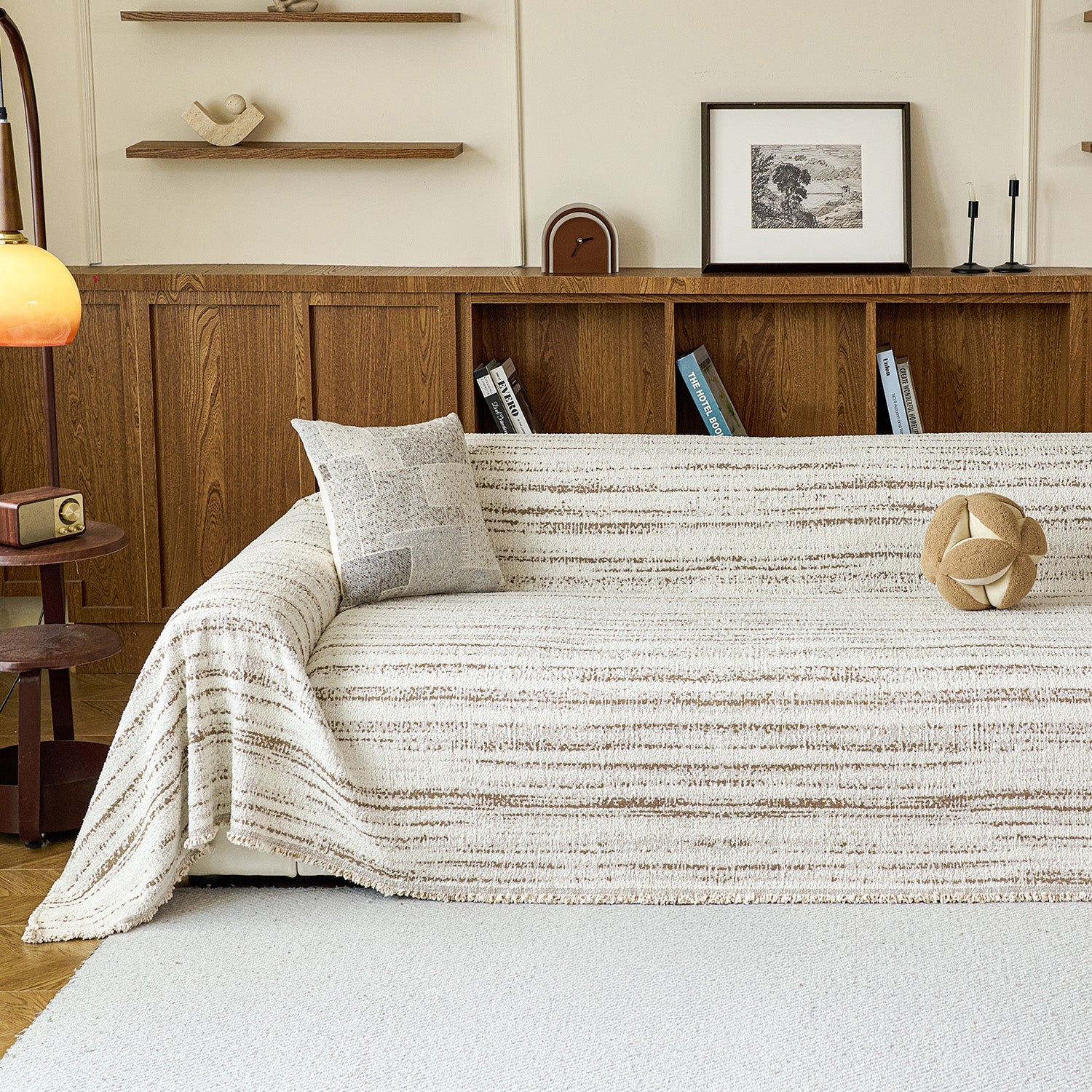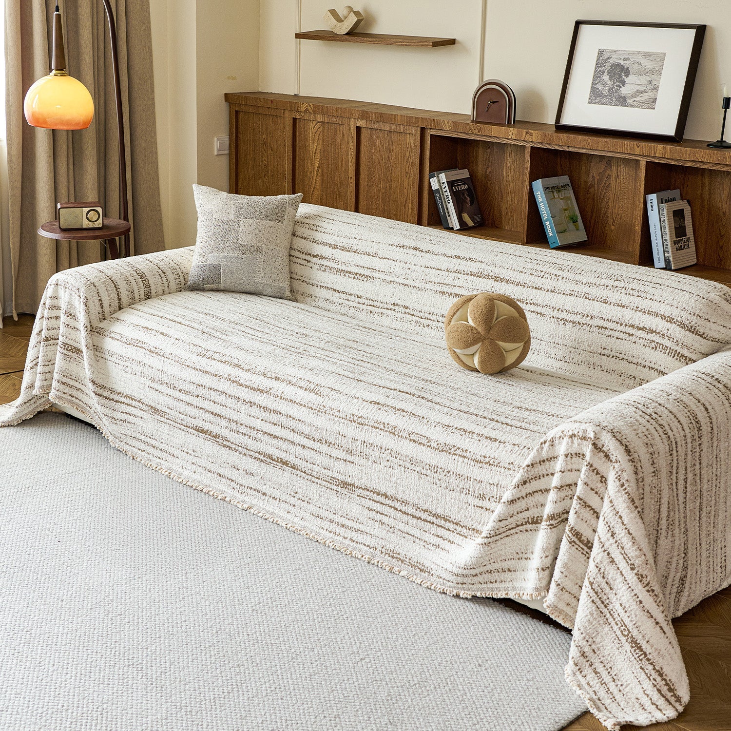 Wprowadź przytulne ciepło i subtelną elegancję do swojego salonu dzięki naszemu miękkiemu, tkanemu, odpornemu na zarysowania pokrowcowi na sofę, zaprojektowanemu specjalnie na chłodniejsze pory roku, jesienią i zimą. Miękki, puszysty, przędzowy pokrowiec z naturalnymi, prążkowanymi detalami łączy w sobie komfort i wyrafinowaną prostotę, tworząc przyjemną, domową atmosferę relaksu. Wykonany z wysokiej jakości pluszowej przędzy, jest wyjątkowo miękki w dotyku, a jednocześnie zapewnia niezawodną ochronę podczas codziennego użytkowania. Materiał jest odporny na zarysowania, przyjazny dla zwierząt domowych, plamoodporny i w pełni zmywalny, co czyni go idealnym wyborem dla rodzin z dziećmi lub zwierzętami. Jego oddychająca, a jednocześnie ciepła faktura nadaje delikatny, przytulny charakter każdemu salonowi lub strefie wypoczynkowej.