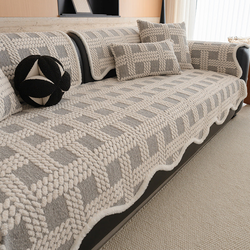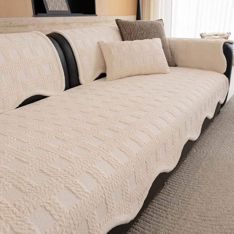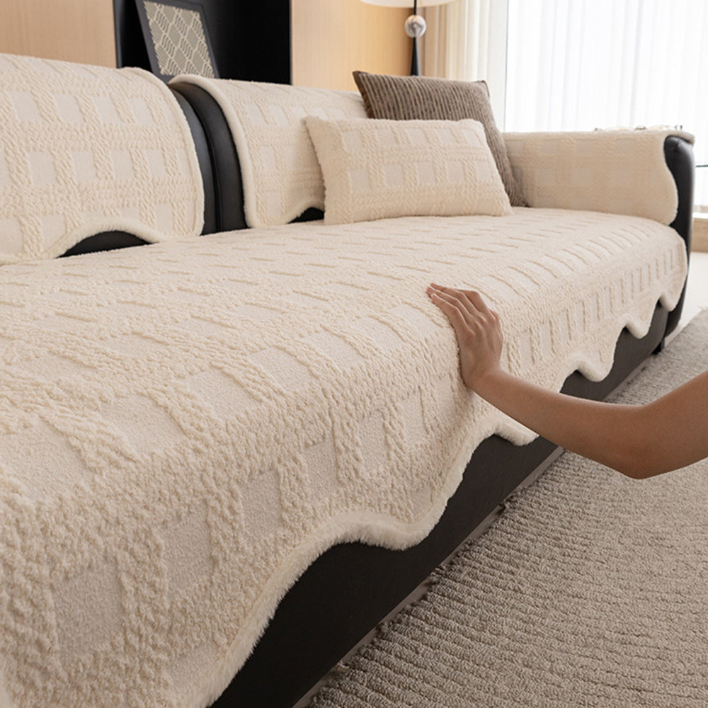 Pokrowiec na sofę z teksturowanego, pluszowego materiału antypoślizgowego