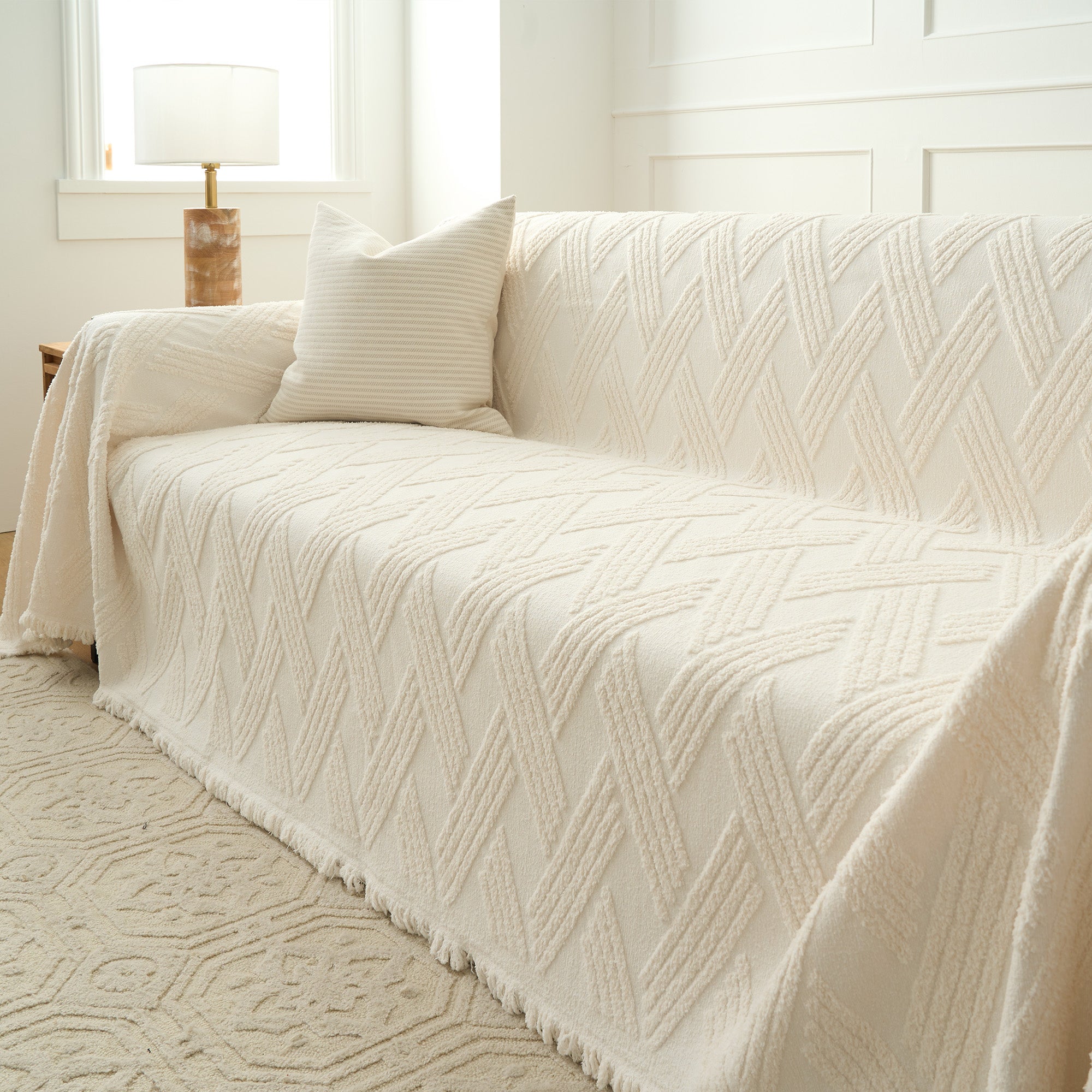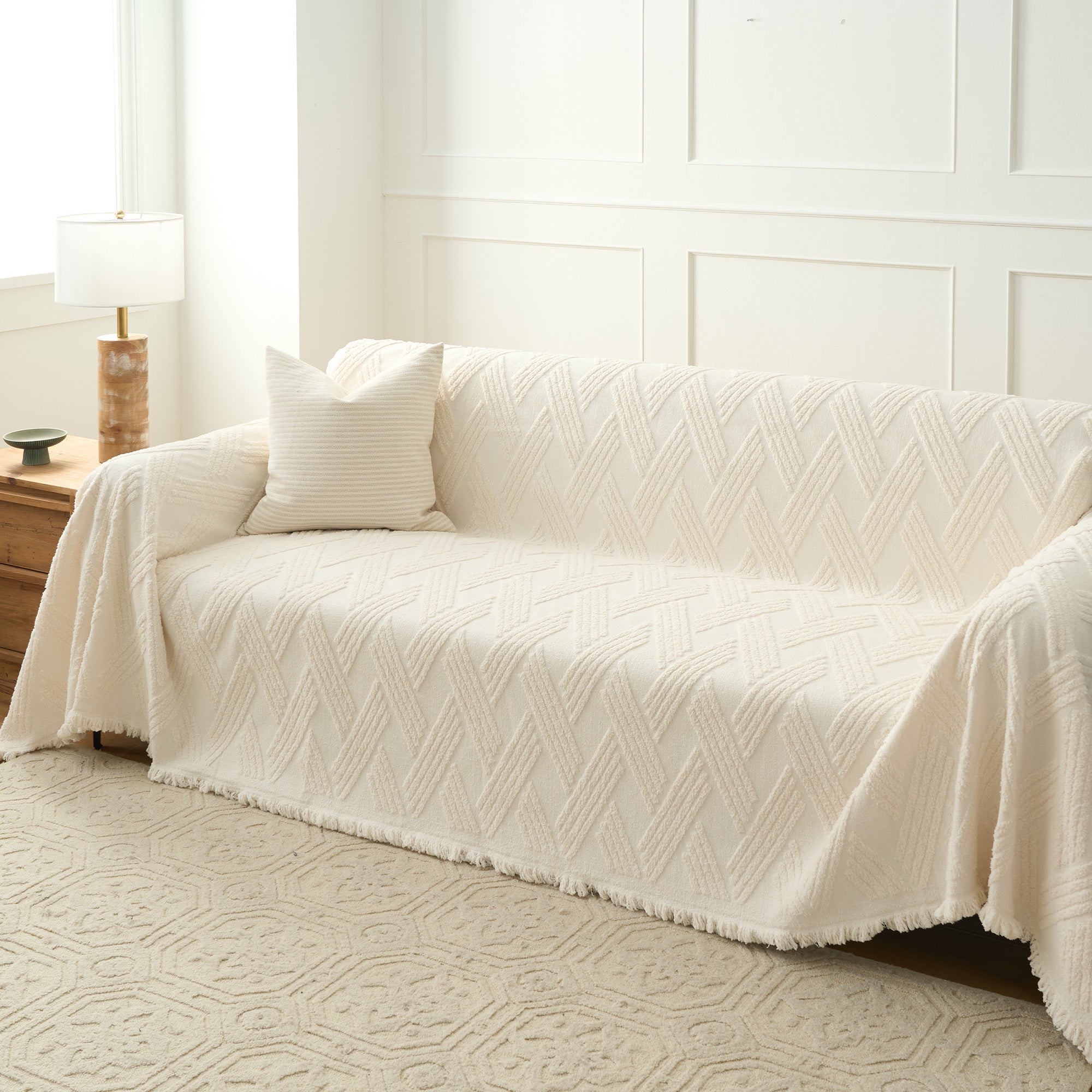 Dodaj subtelną nutę elegancji i ciepła do swojej przestrzeni dzięki pokrowcowi na sofę Textured Weave. Ten pokrowiec o wyrafinowanym, tkanym wzorze podkreśla wygląd Twojej sofy, nadając jej czysty, minimalistyczny wygląd. Jego miękka, wygodna tkanina nie tylko chroni Twoją sofę, ale także nadaje przytulnej faktury Twojemu salonowi.