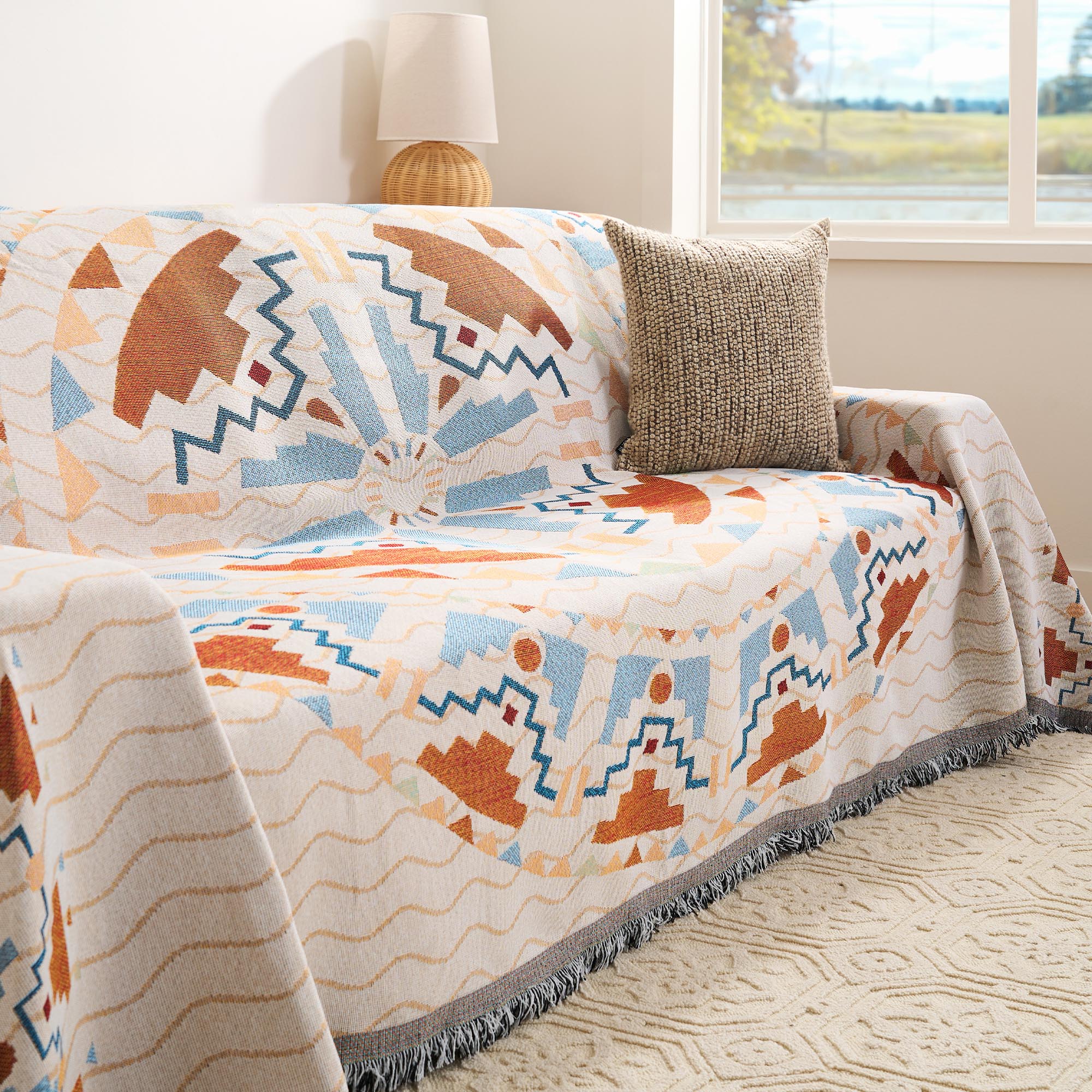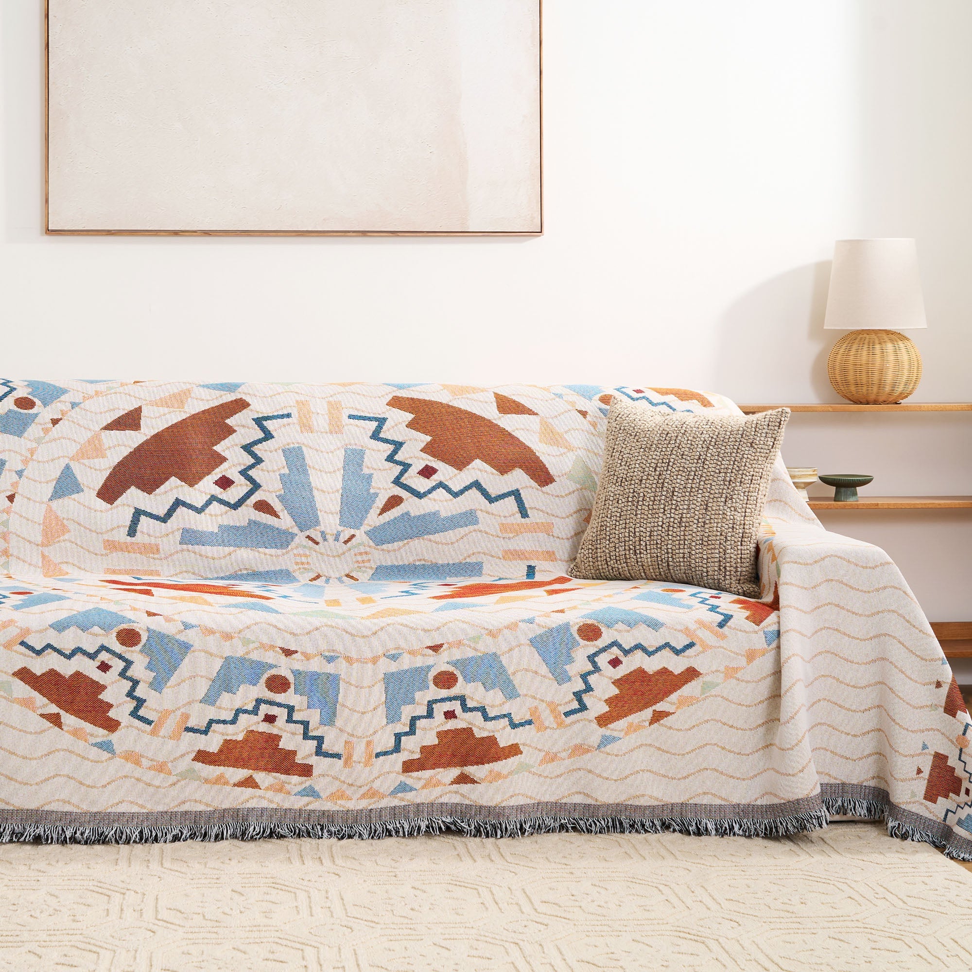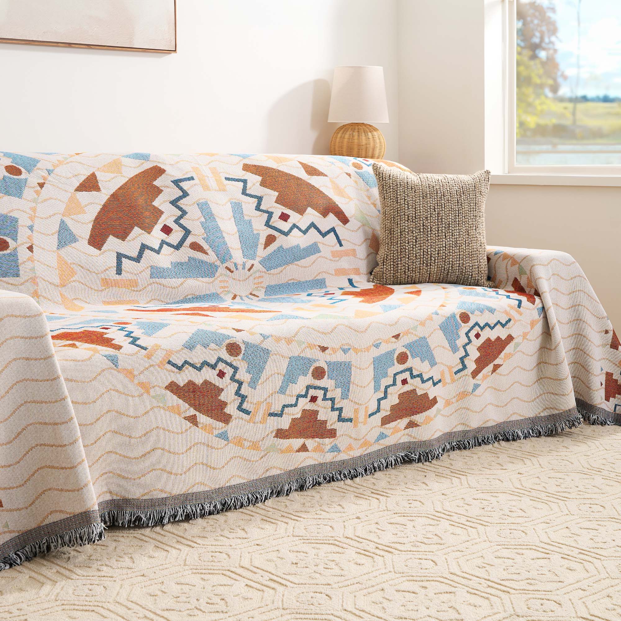 Żywy, boho pokrowiec na kanapę, odporny na zużycie, nadający się do prania w pralce, zapewniający stylowy i przytulny dom przyjazny zwierzętom