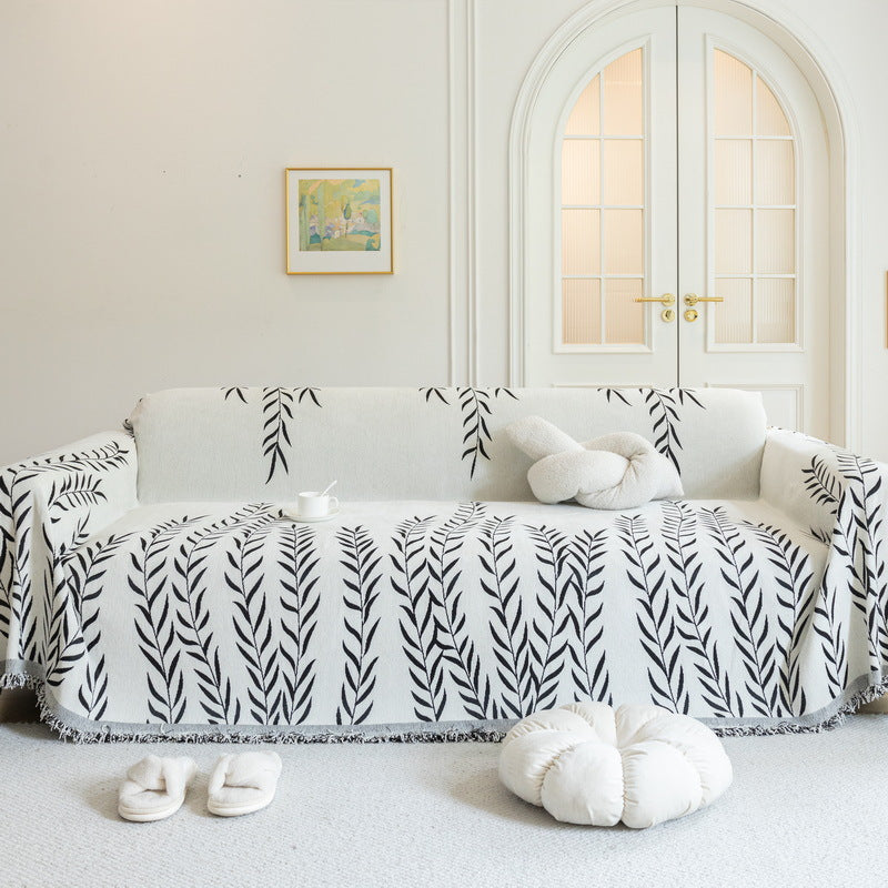 Wprowadź spokój natury do swojego wnętrza dzięki pokrowcowi na sofę Willow Leaf. Delikatny, czarny wzór liści na miękkim, białym tle tworzy spokojny i minimalistyczny klimat, idealny do przekształcenia salonu w przytulne miejsce do relaksu.