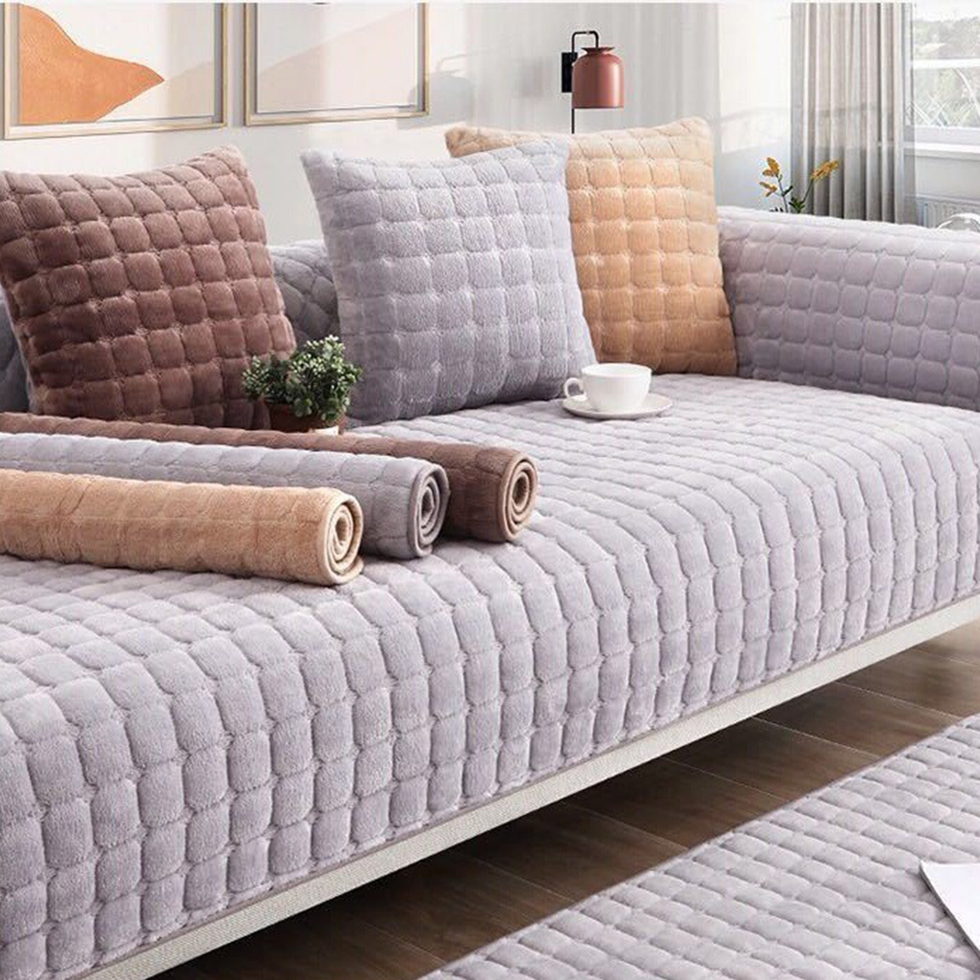 Przedstawiamy nasz pokrowiec na sofę Biscuit Bliss – idealny dodatek do Twojego salonu! Wykonany z luksusowego pluszu, oferuje niezrównaną miękkość, otulając Cię czystym komfortem i luksusem. Dzięki ciepłemu i grubemu materiałowi, poczujesz się, jakbyś otulał się ulubionym kocem przez cały dzień. Co więcej, możesz pożegnać się z problemem wypadania sierści – nasz starannie dobrany materiał zapewni Ci czystość i porządek w pomieszczeniu.