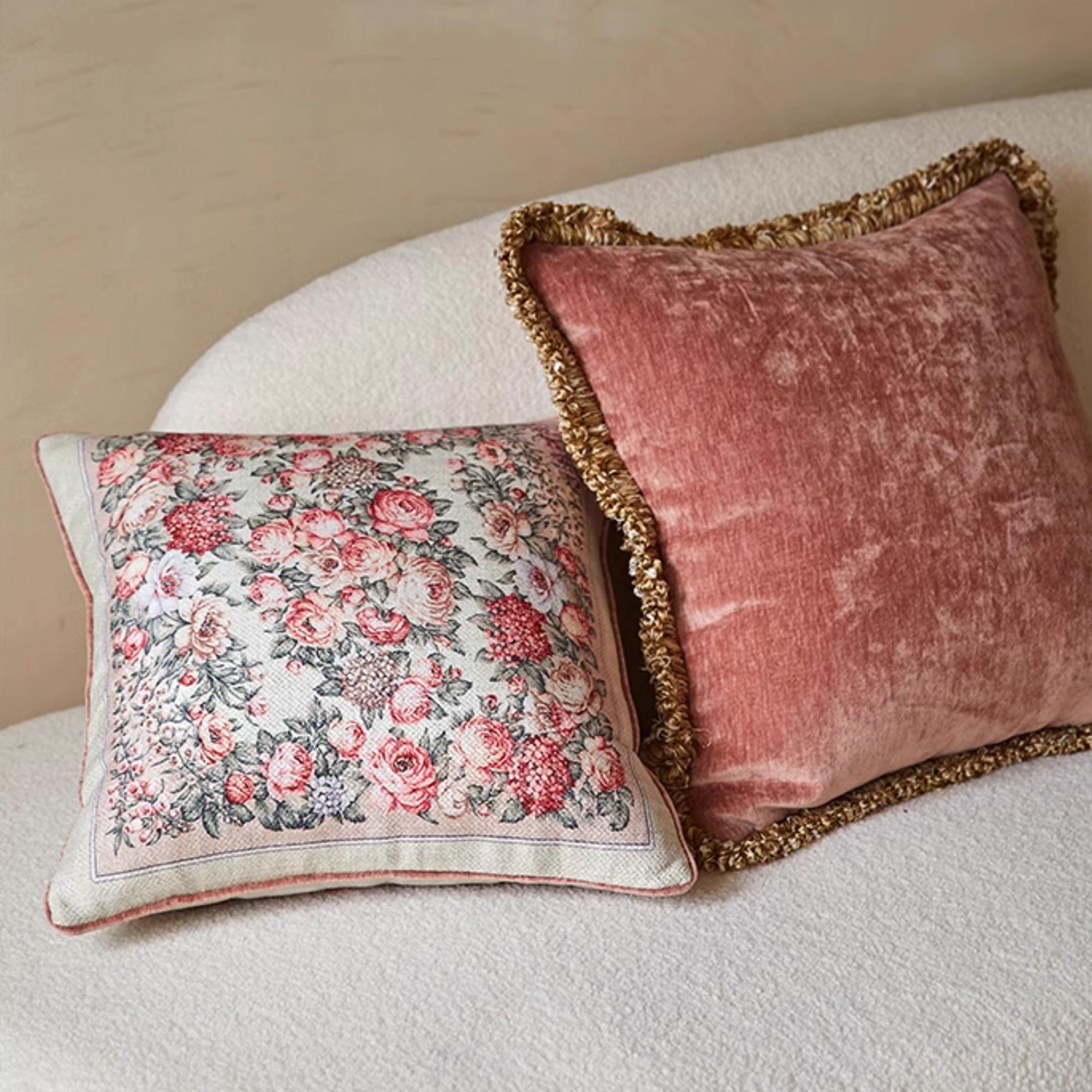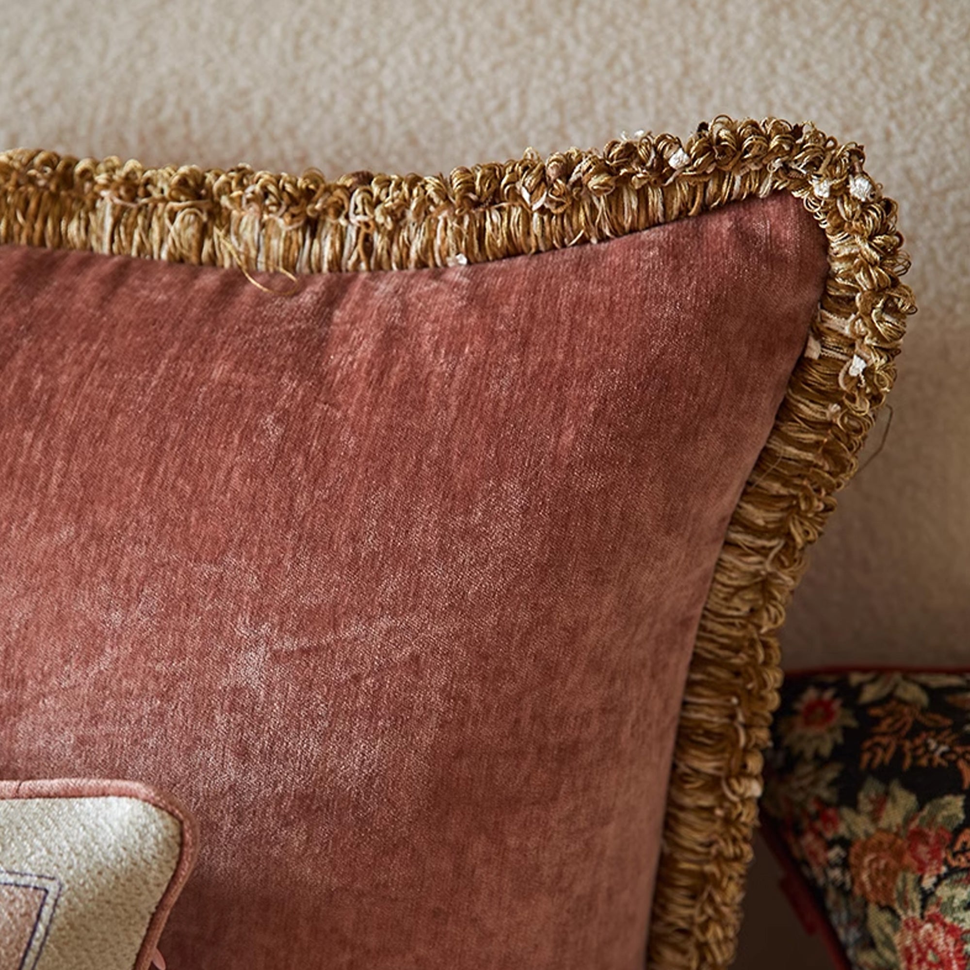 Poszewka na poduszkę z frędzlami w kolorze różowego aksamitu