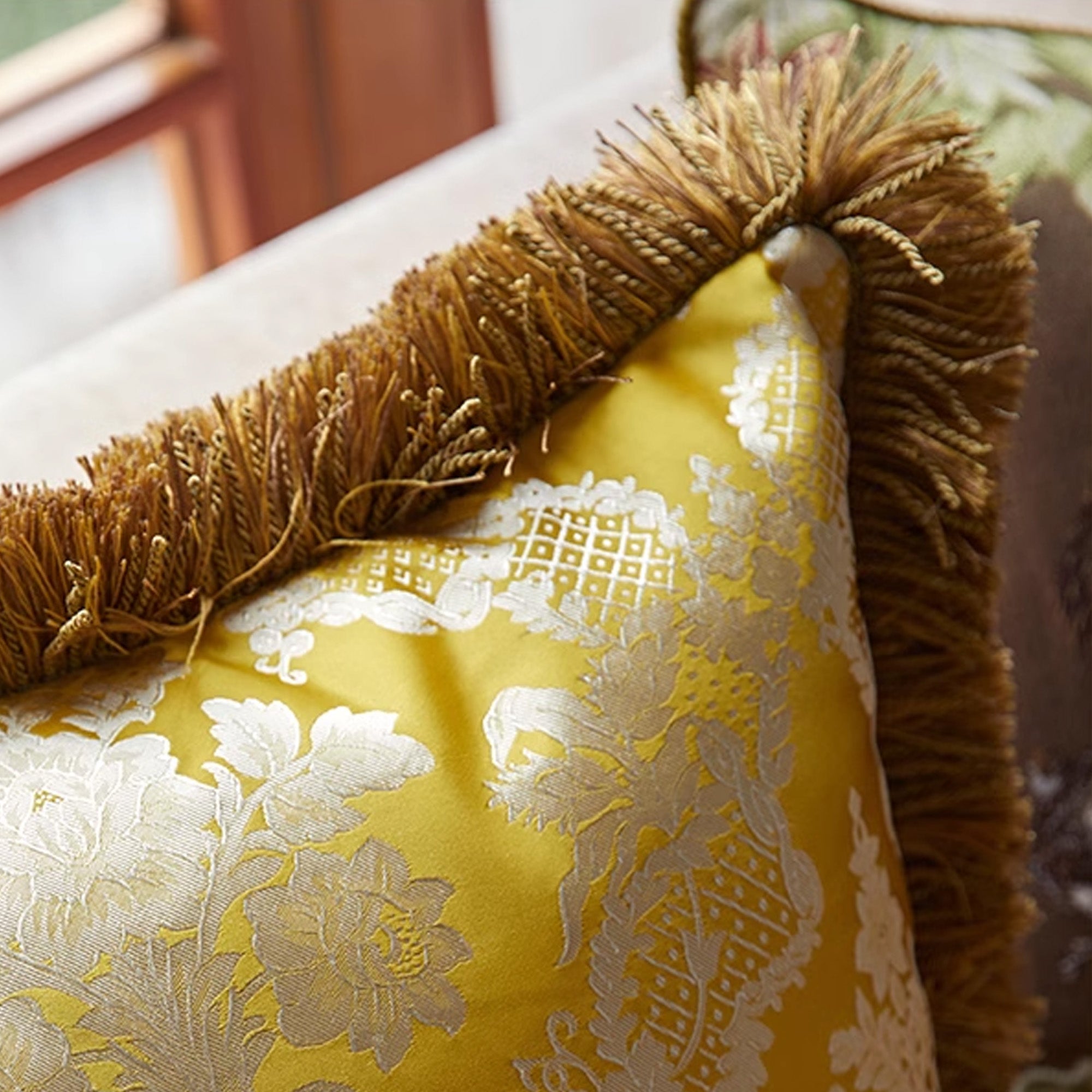 Postaw na luksus z poduszką dekoracyjną z frędzlami w kolorze złotego baroku!