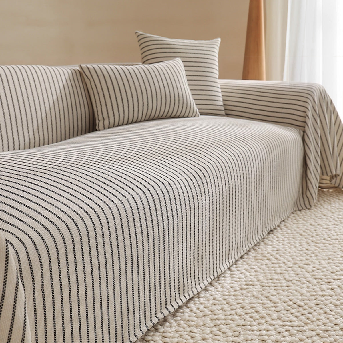 Klasyczna, odporna na zarysowania pokrowiec na sofę w paski