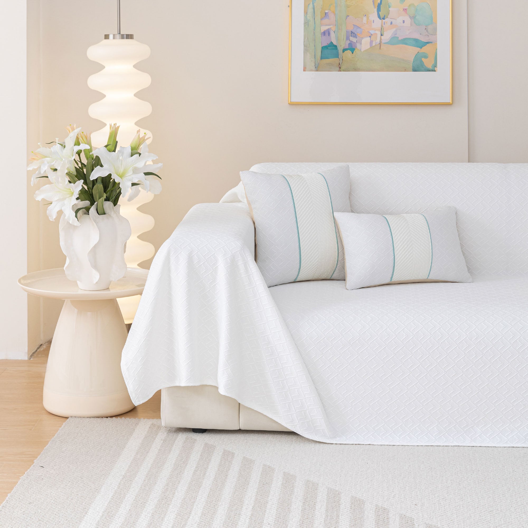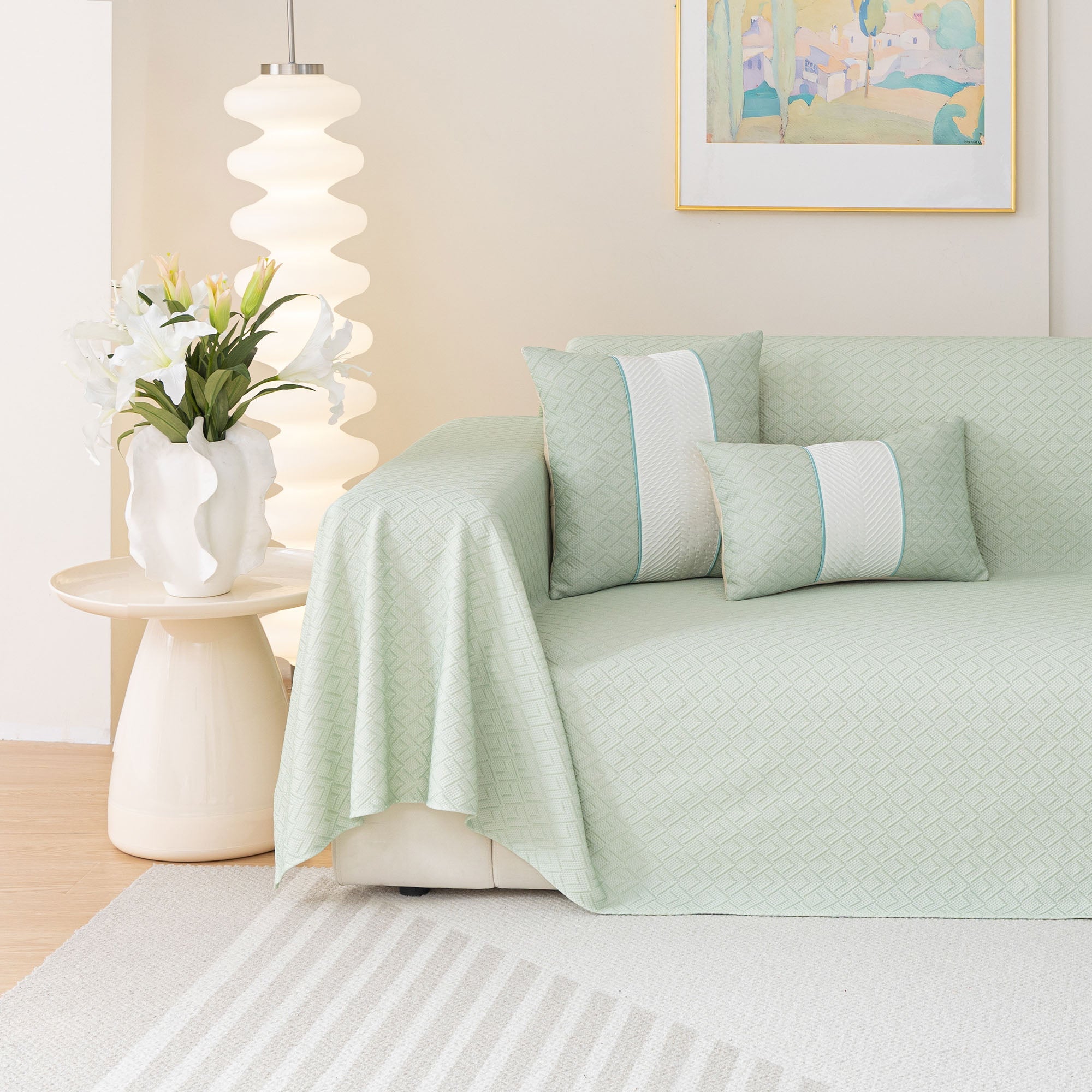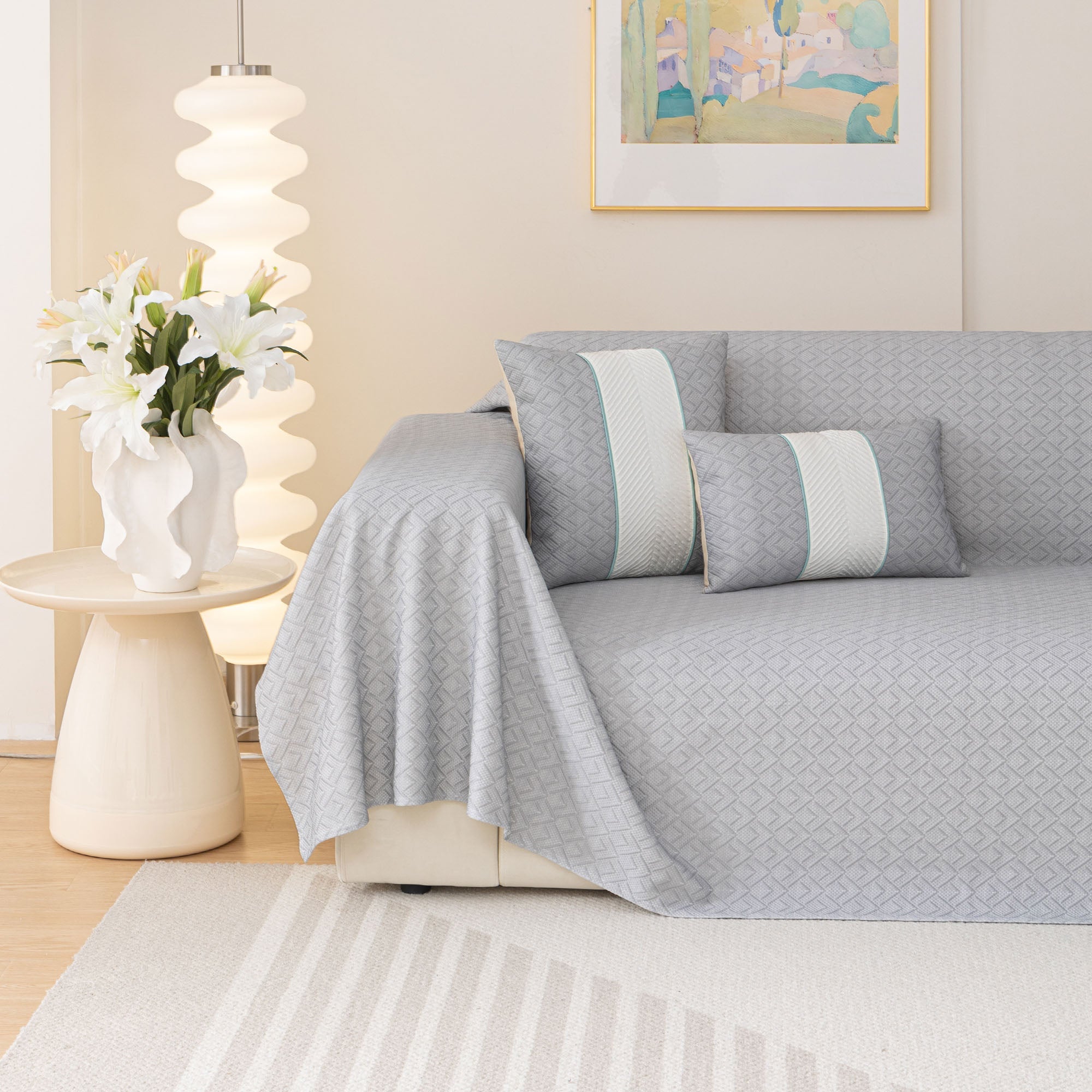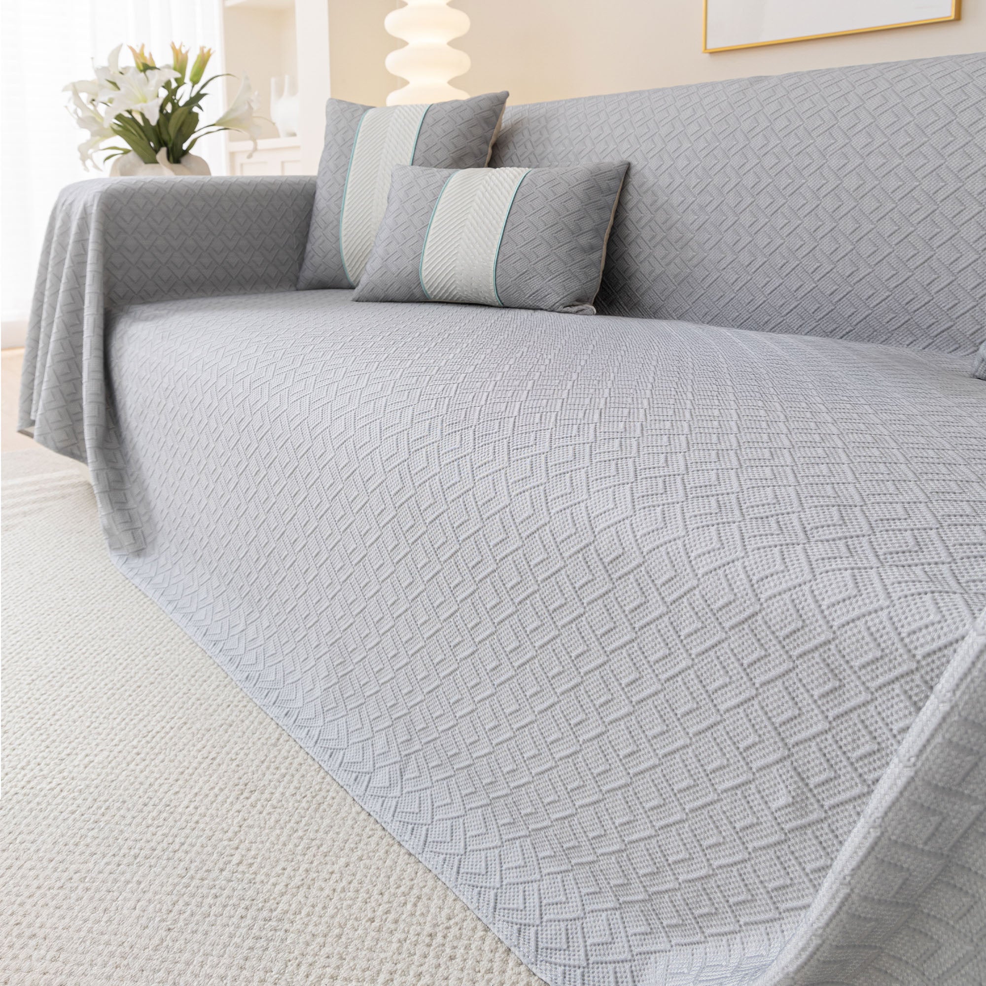 Chłodzący, geometryczny, pikowany, nowoczesny, wielokolorowy wzór, miękki, przyjazny dla zwierząt, trwały pokrowiec na sofę – minimalistyczny, teksturowany, bezproblemowy ochraniacz na kanapę