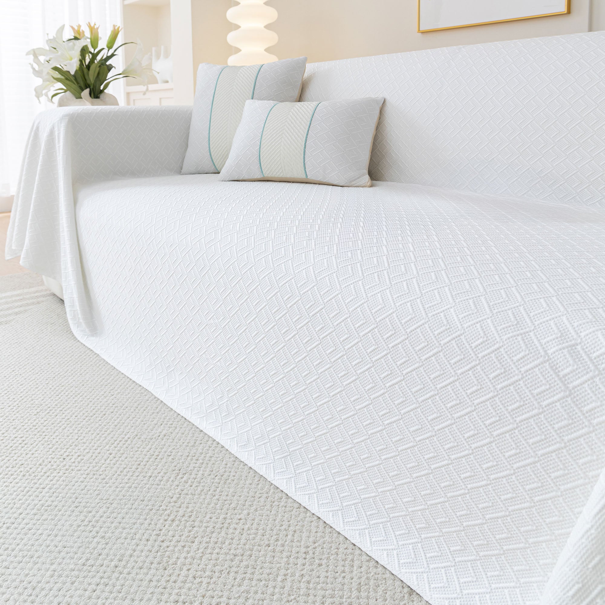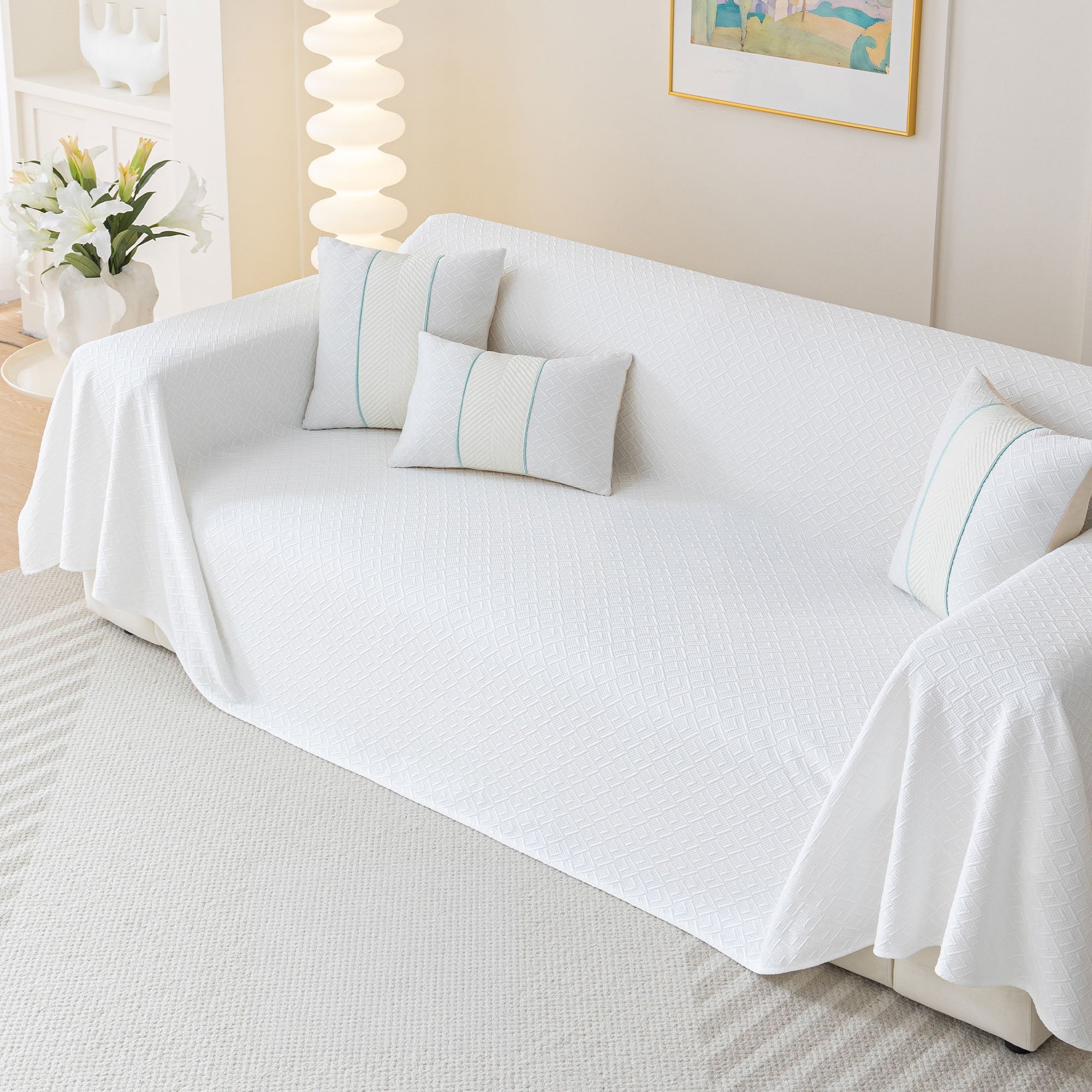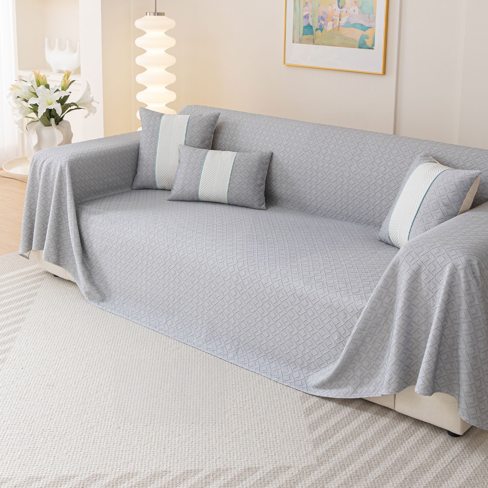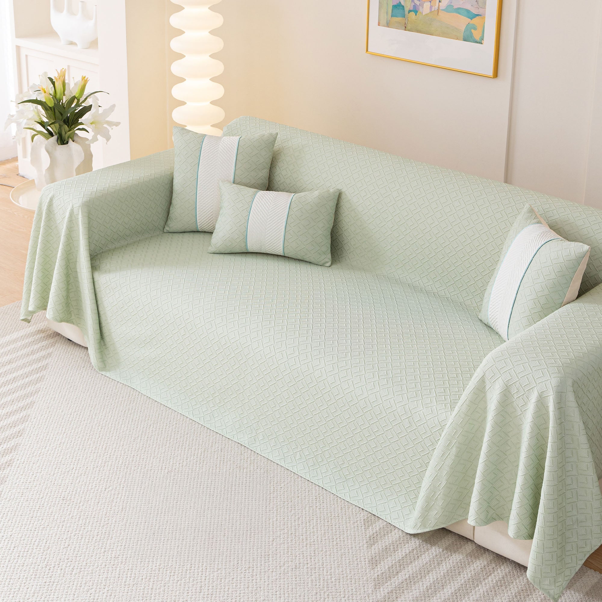 Chłodzący, geometryczny, pikowany, nowoczesny, wielokolorowy wzór, miękki, przyjazny dla zwierząt, trwały pokrowiec na sofę – minimalistyczny, teksturowany, bezproblemowy ochraniacz na kanapę